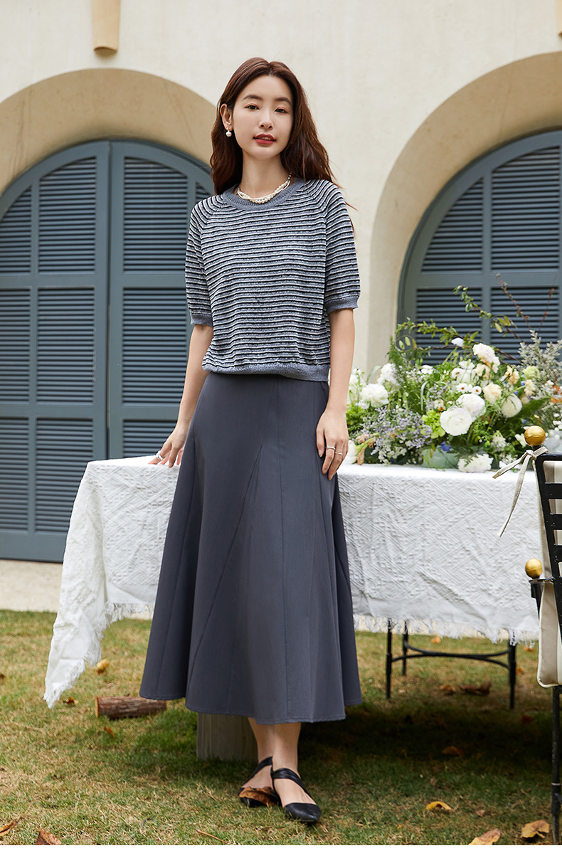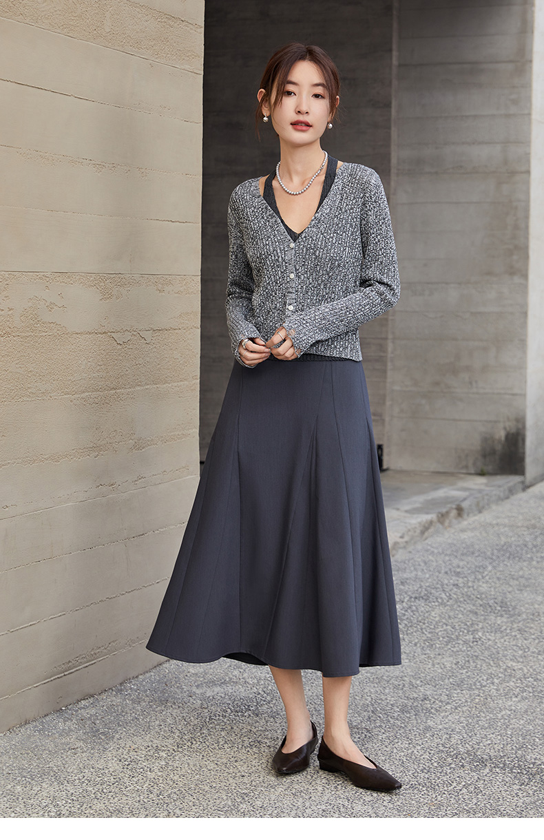 简约大气高腰深灰色半身裙 显瘦中长款伞裙