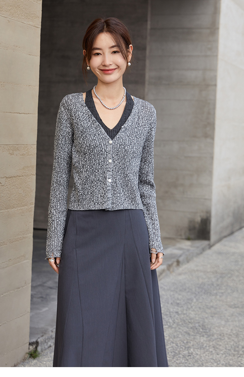 浅灰色 V 领针织吊带背心女 2026 春夏新款修身坑条内搭 显瘦无袖打底上衣