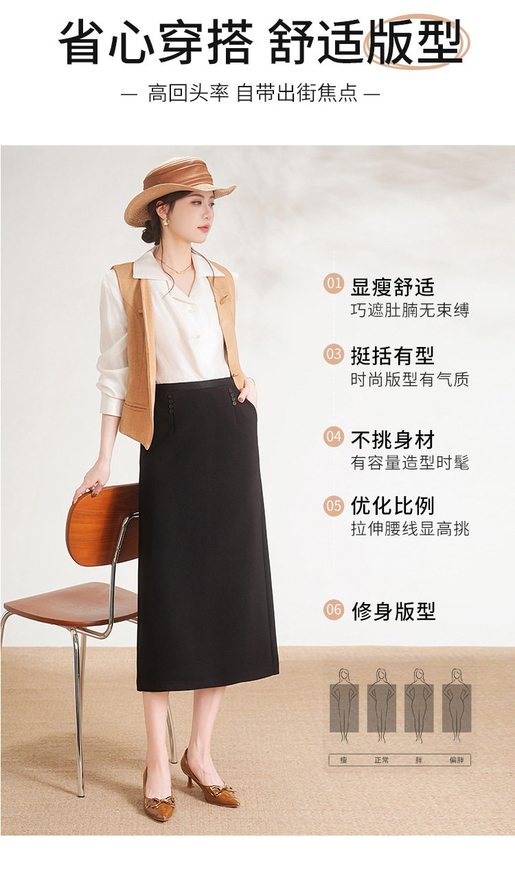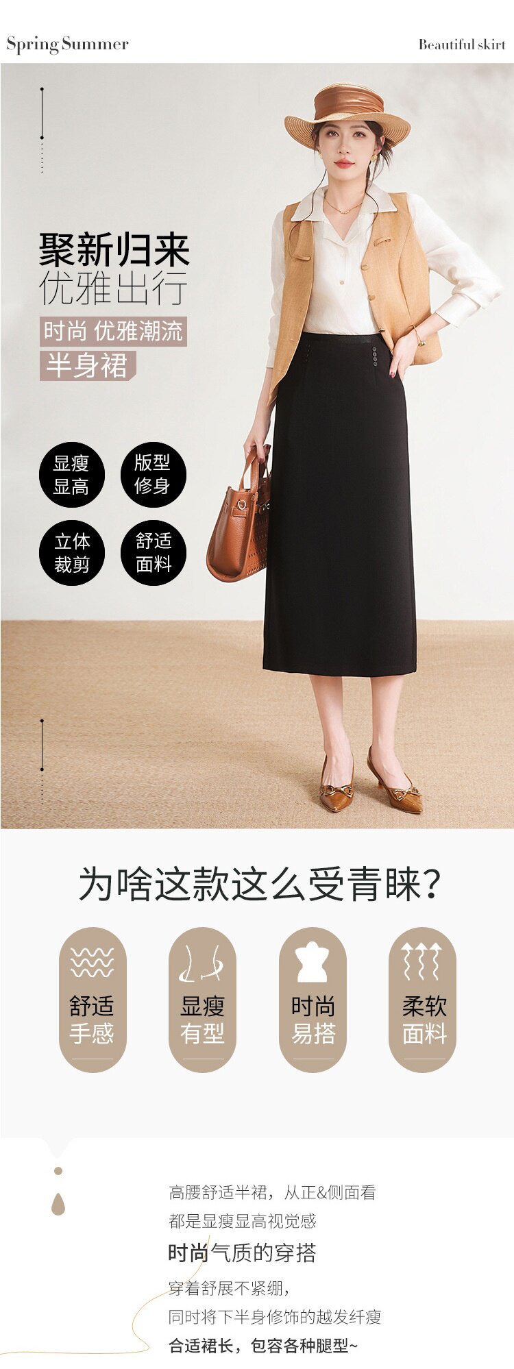 「自」全新升级【铂金会员128/天猫169/差价41】(95410)洛诗琳气质时尚包臀半身裙女2026春季中长款通勤直筒西装