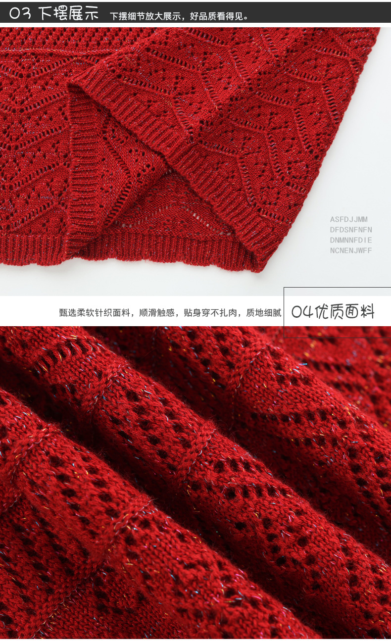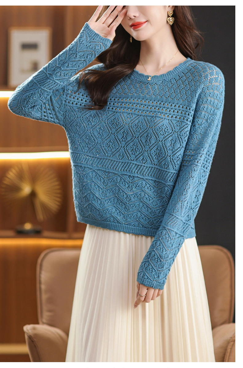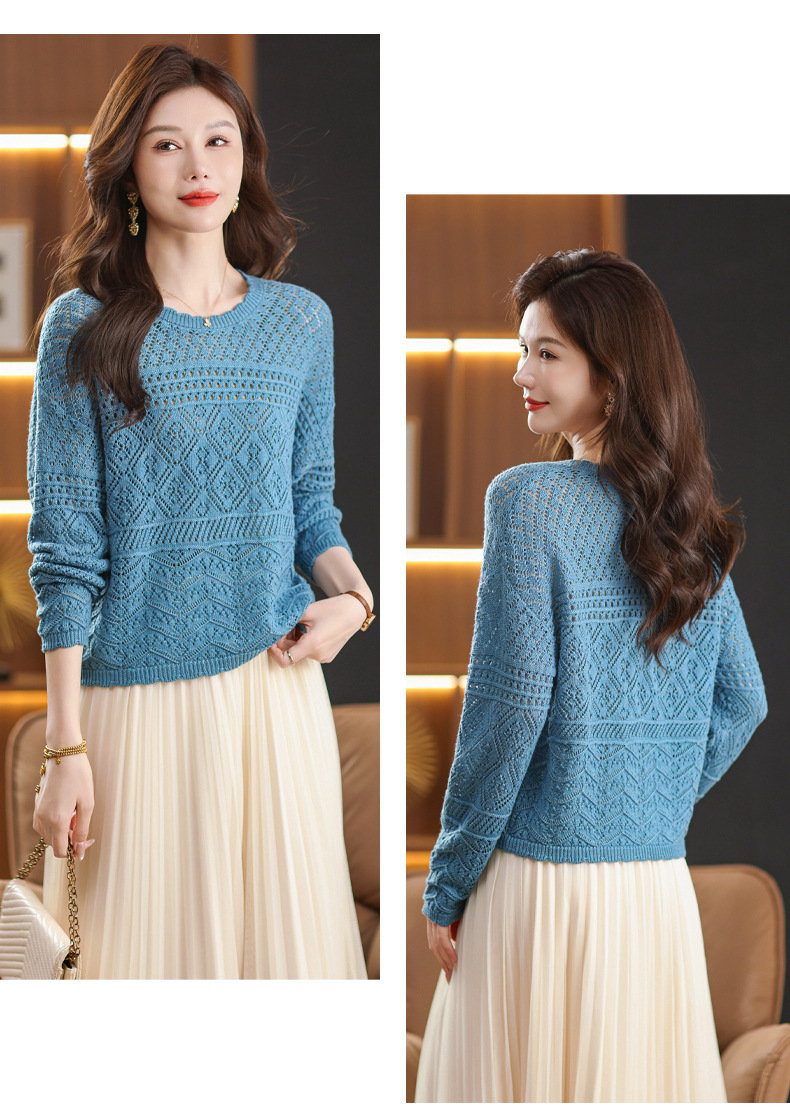 CC春秋季长袖t恤女士2025新款羊毛圆领洋气镂空针织打底衫宽松上衣