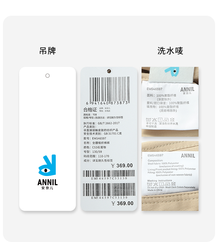 男女童全腰梭织棉裤冬季新款安奈儿童装EM546597