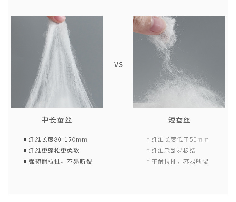 蚕丝的长度与蚕丝被的蓬松度有着直接的关系