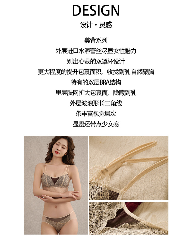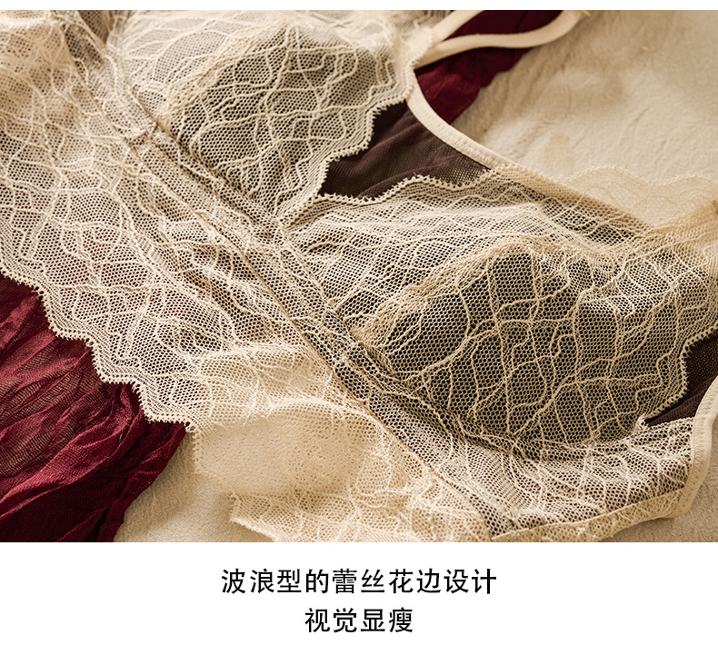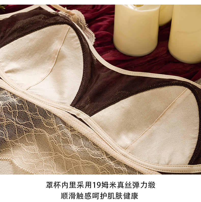 丁摩真丝撞色蕾丝文胸美背 桑蚕丝防走光双罩杯性感蕾丝内衣AL02S250