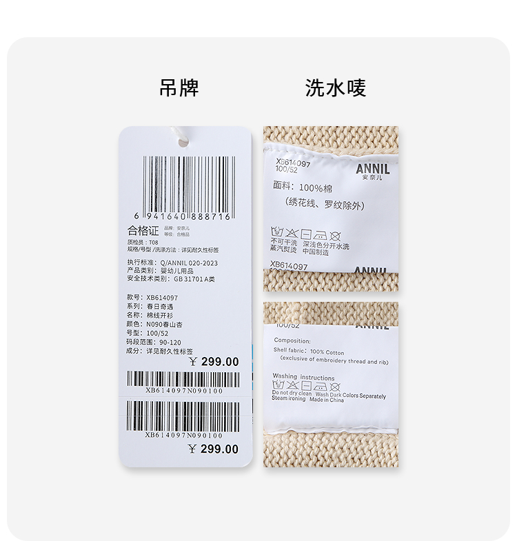 【实体店同款】男童棉线开衫春季新款安奈儿童装XB614097