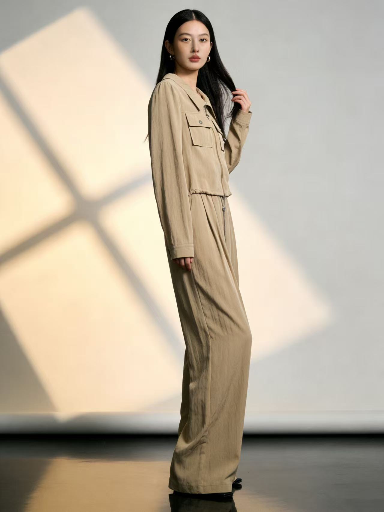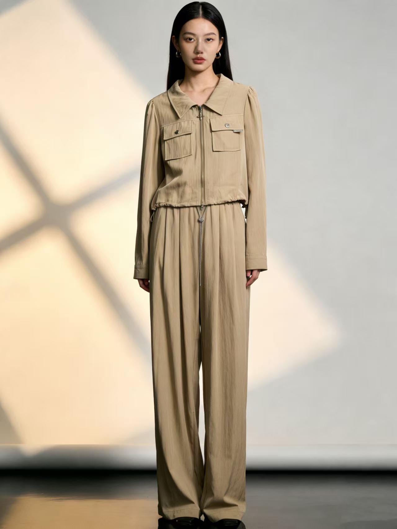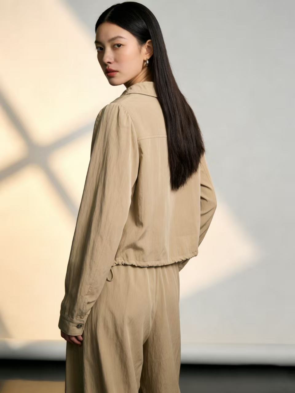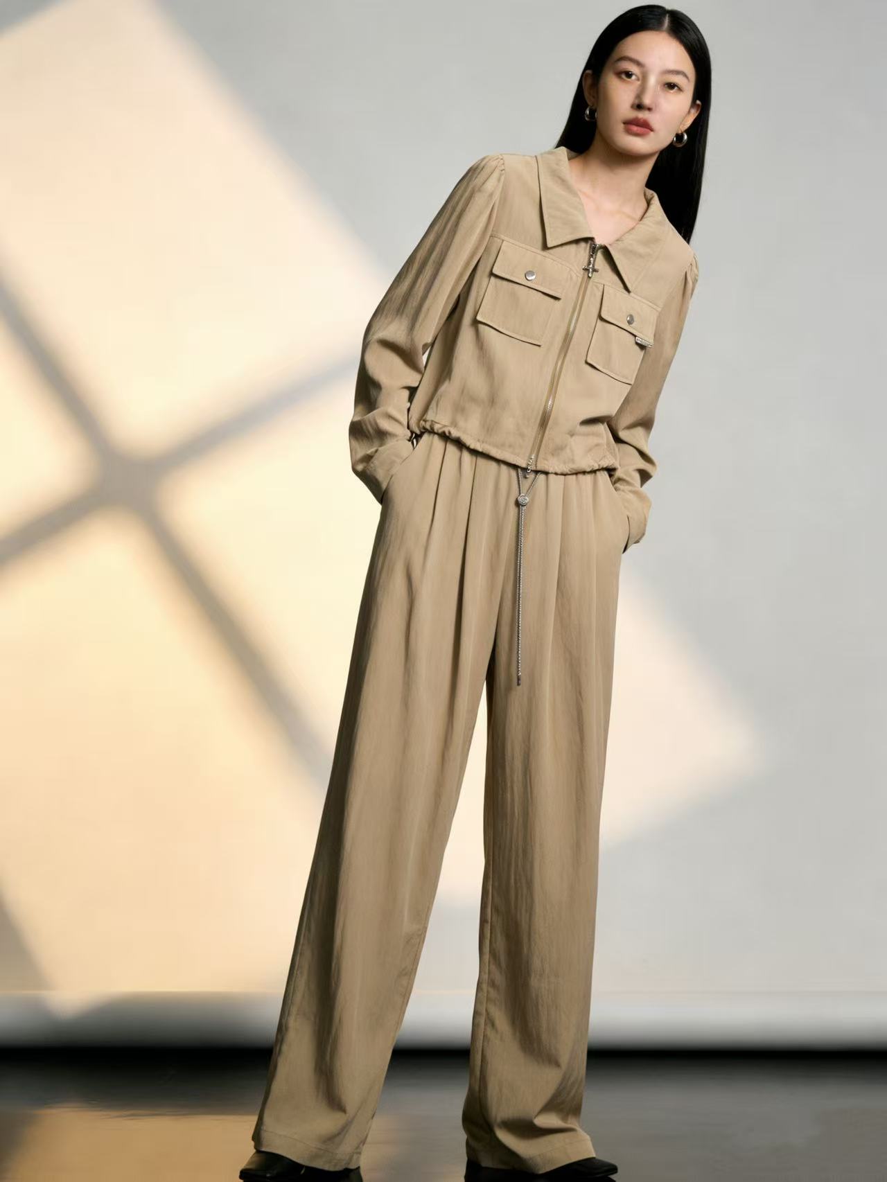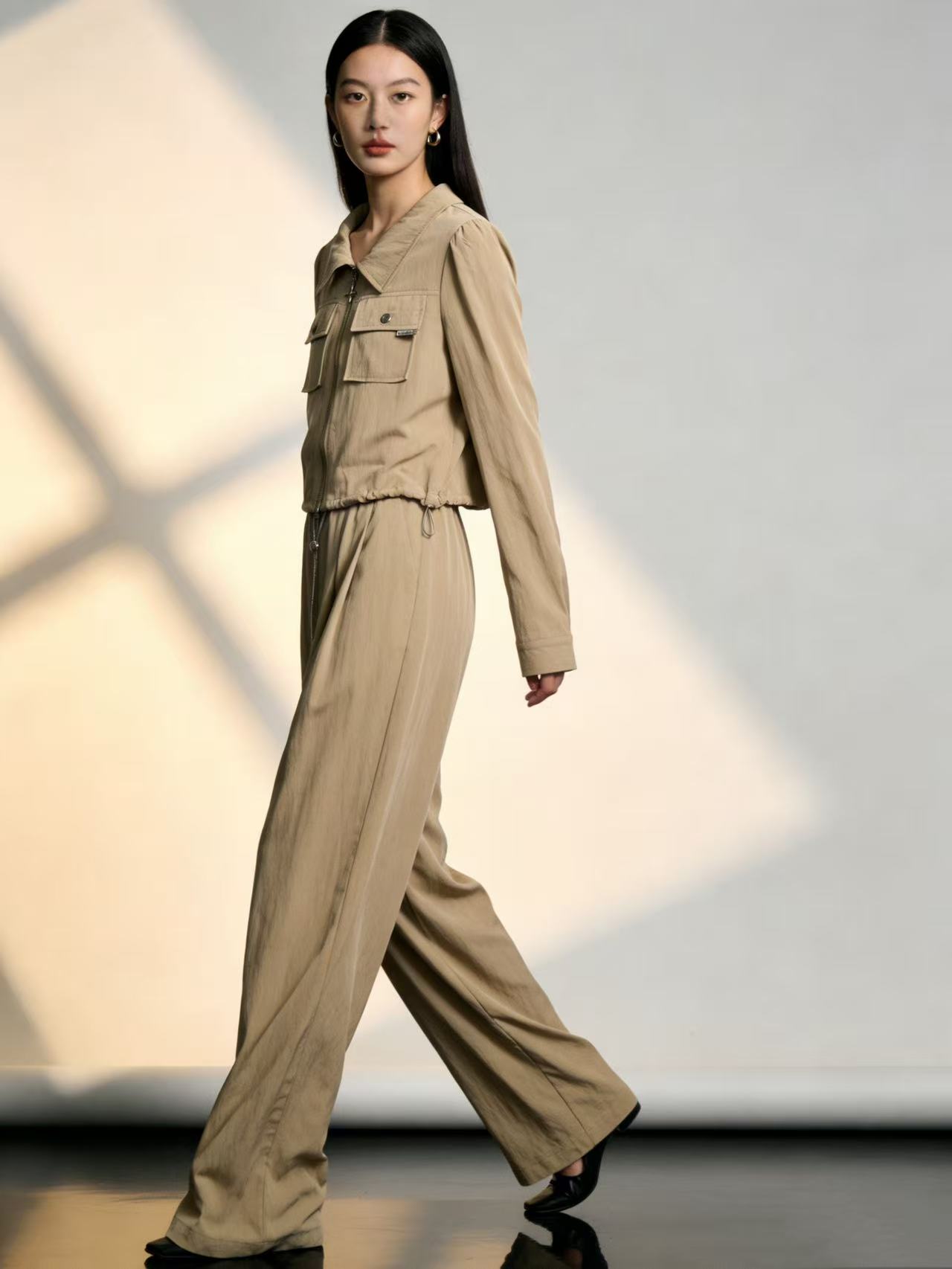 418良粉节|2026 活动爆款【自营】衣周期~(二件套)Q06短款翻领上衣➕休闲直筒裤套装-喜出