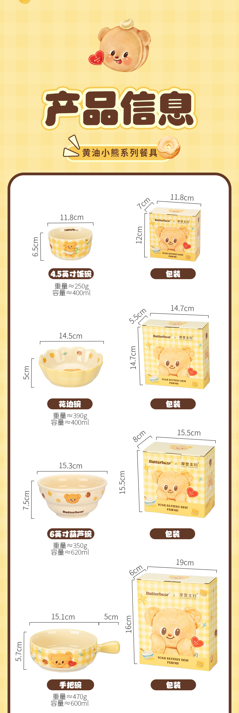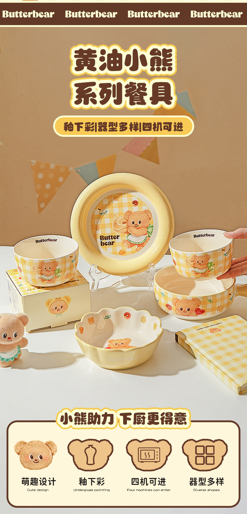 摩登主妇&黄油小熊 釉下彩餐具饭碗家用盘子碗具泡面碗酸奶碗