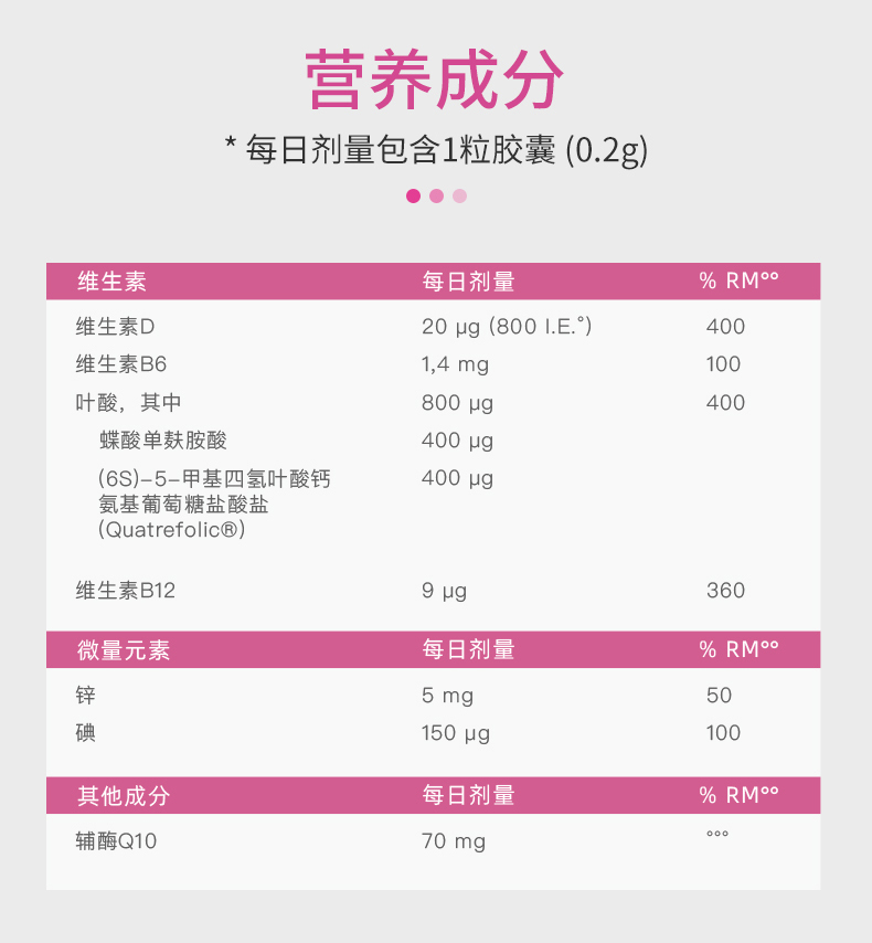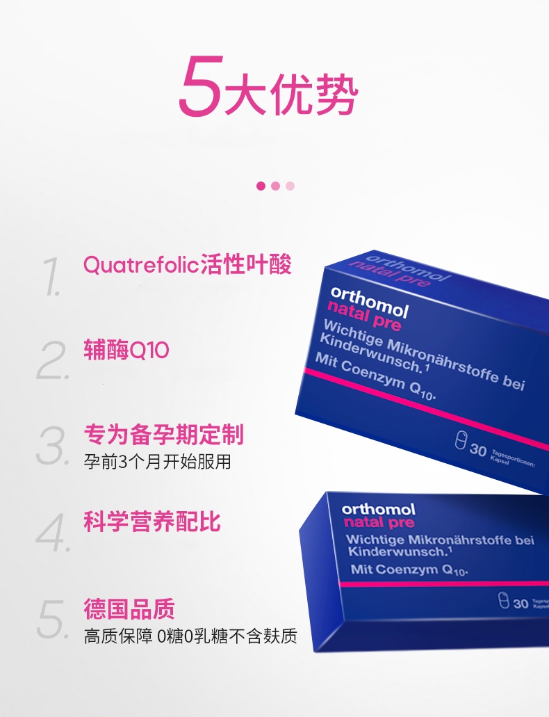 【跨境】德国orthomol奥适宝 叶酸维生素 30粒/盒 备孕孕妇辅酶Q10