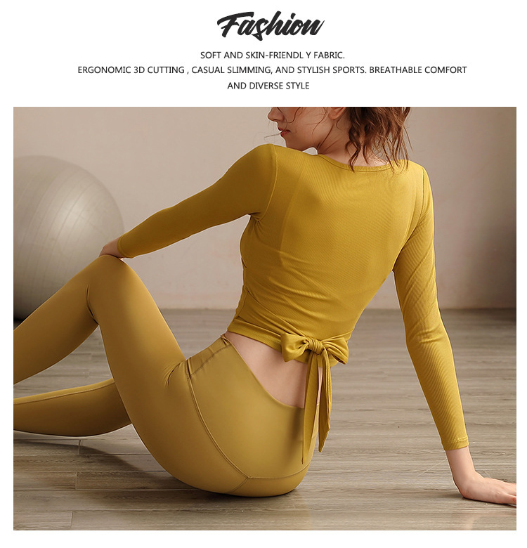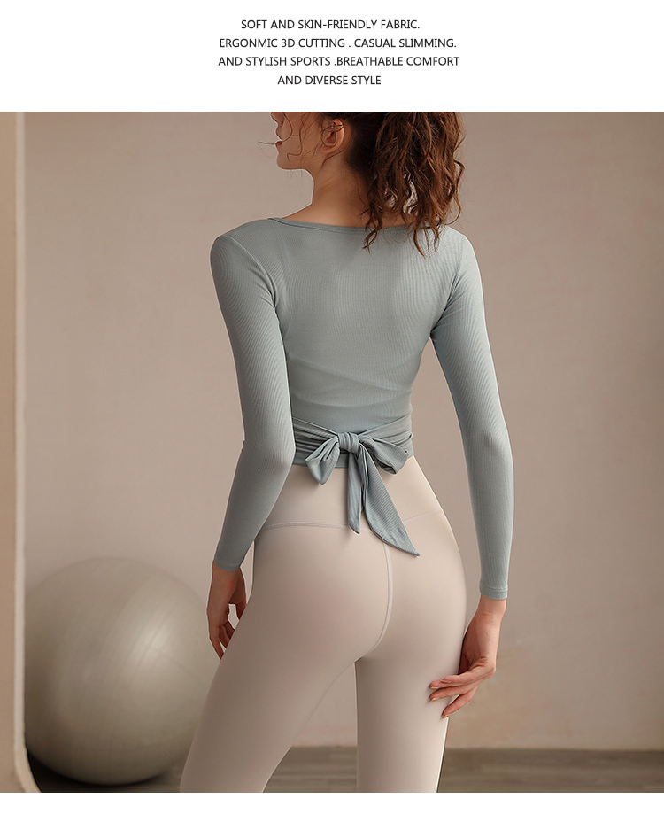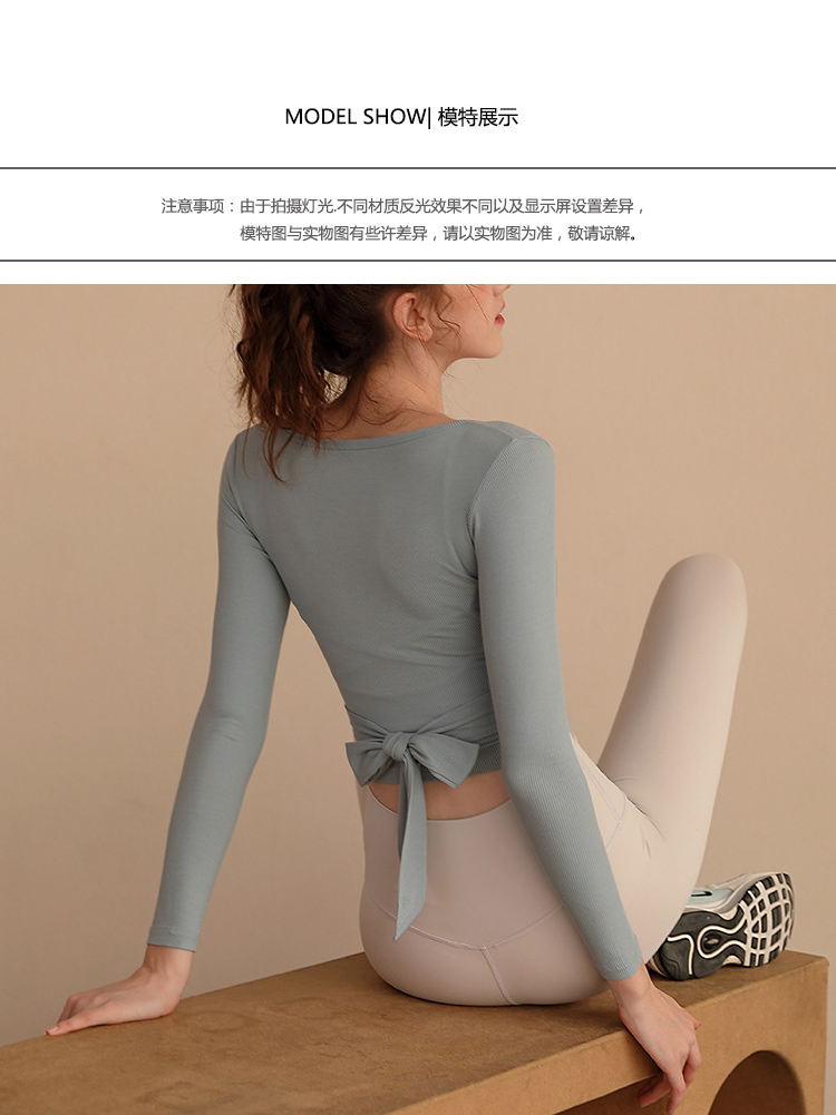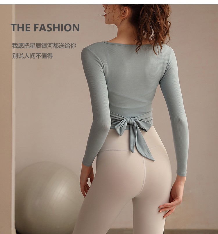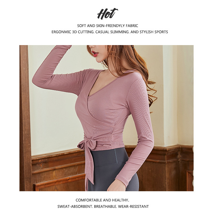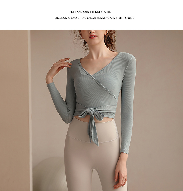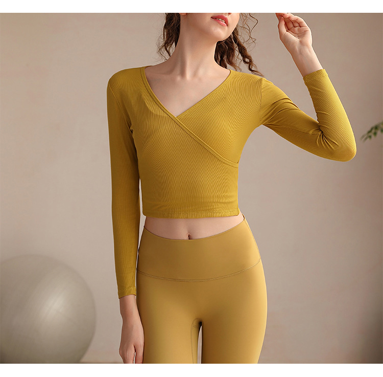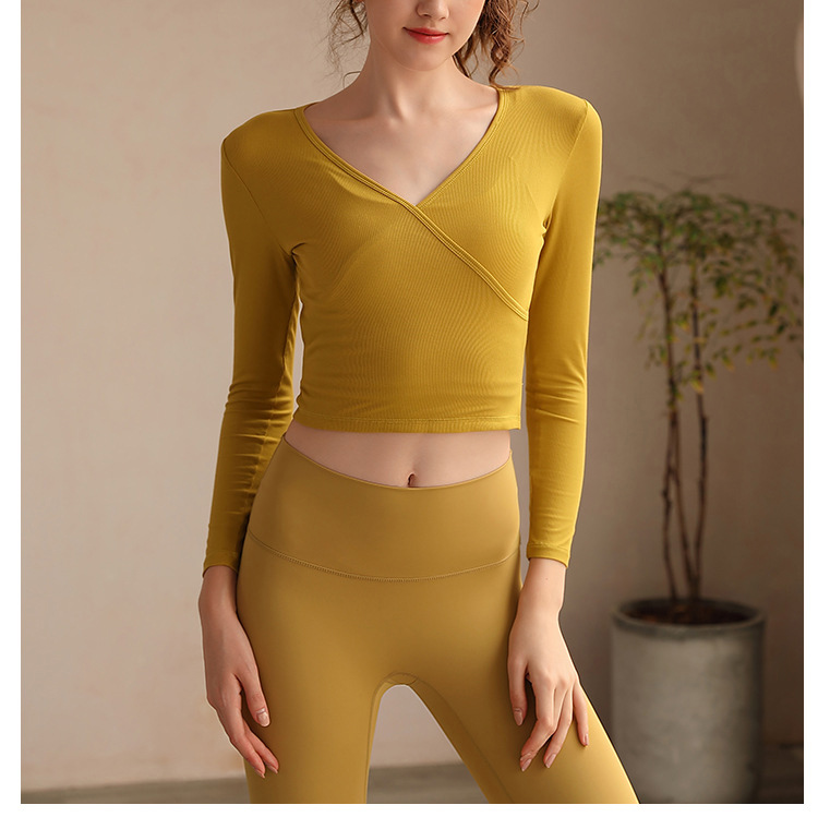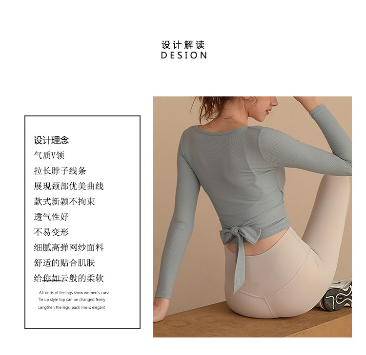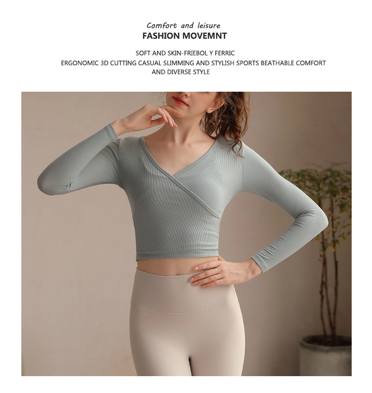 跃牌【洛水之神系列】瑜伽服女长袖性感跑步健身房运动上衣纯欲v领交叉153