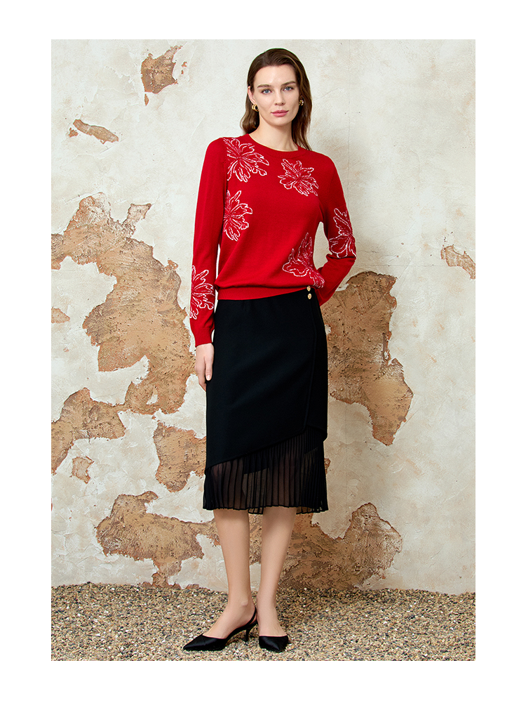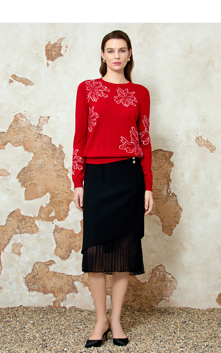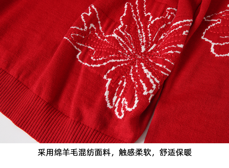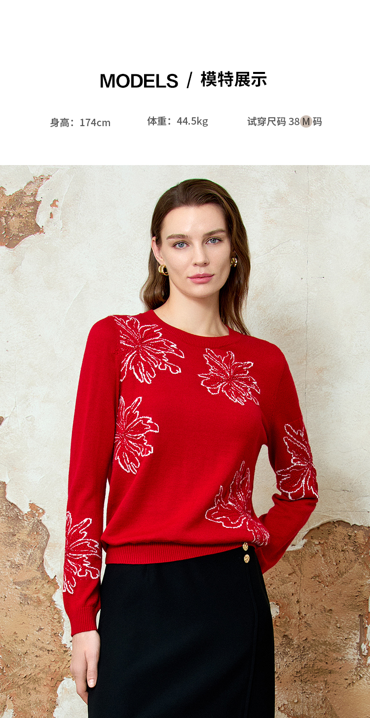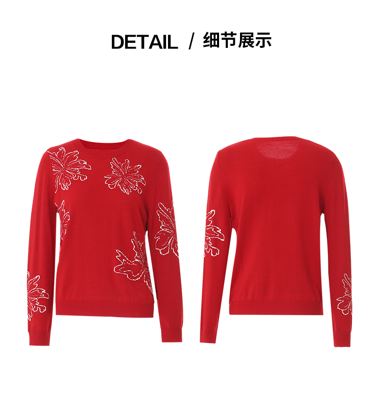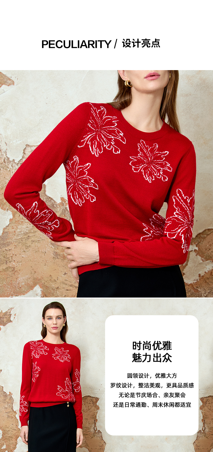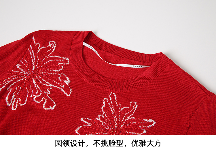 EITIE爱特爱2025春季新款时尚休闲宽松印花圆领舒适显瘦针织衫毛衣8101801