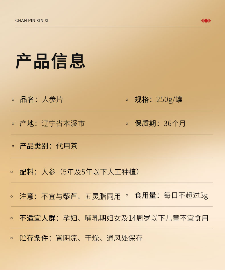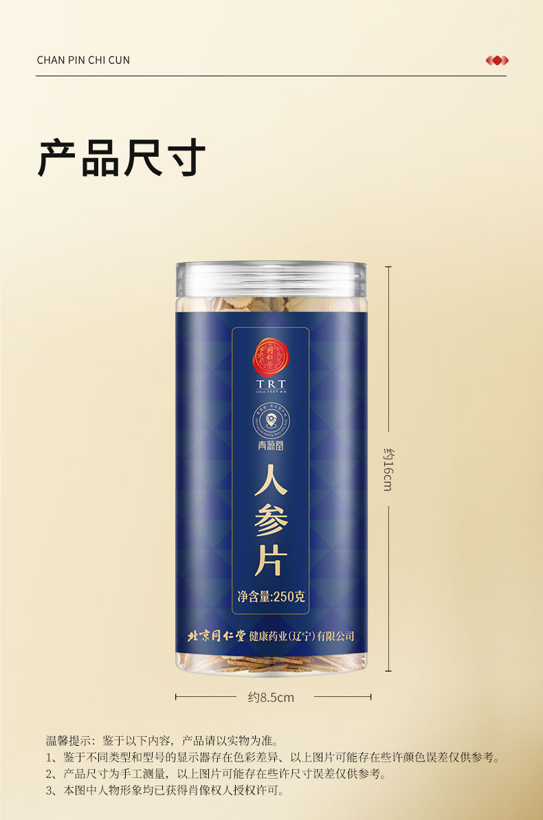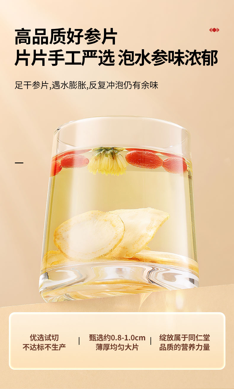 【正宗同仁堂品牌】北京同仁堂 造养青年 人参片250克 约0.8-1.0cm精选辽宁 主根参段 参味浓郁SY
