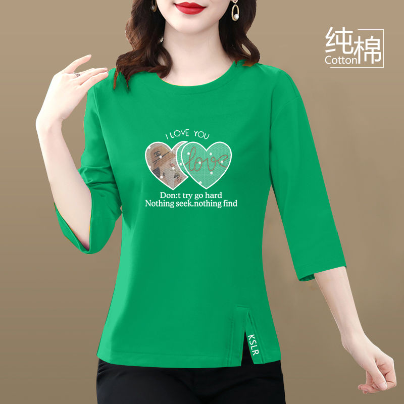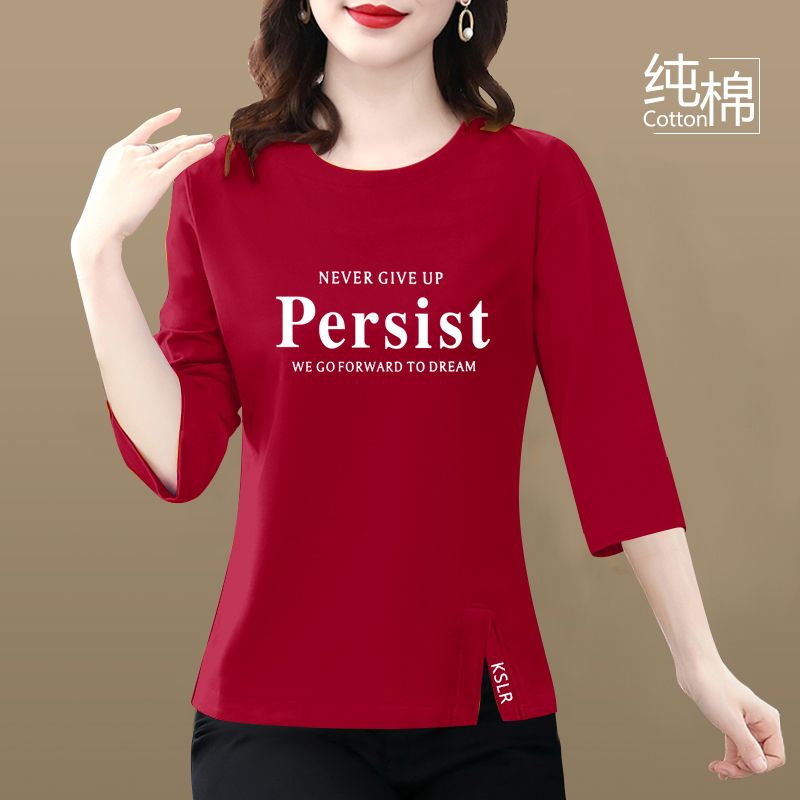 AA YZMH新款T恤半袖洋气七分袖上衣妈妈装体恤衫