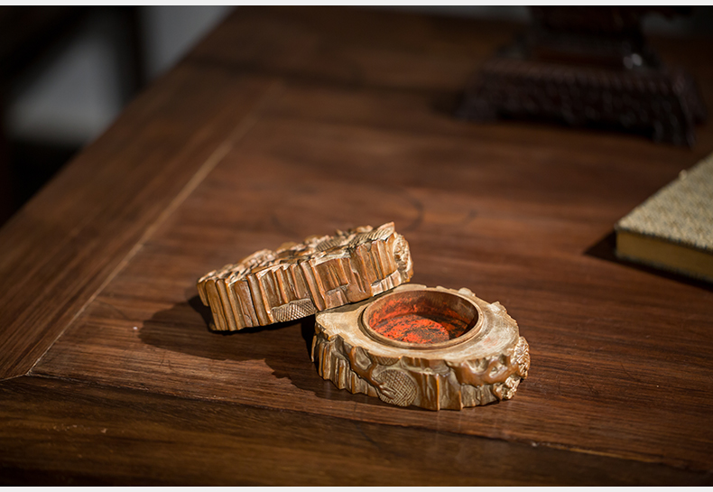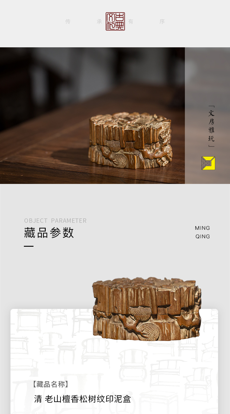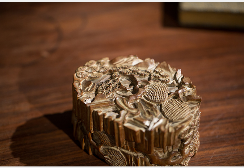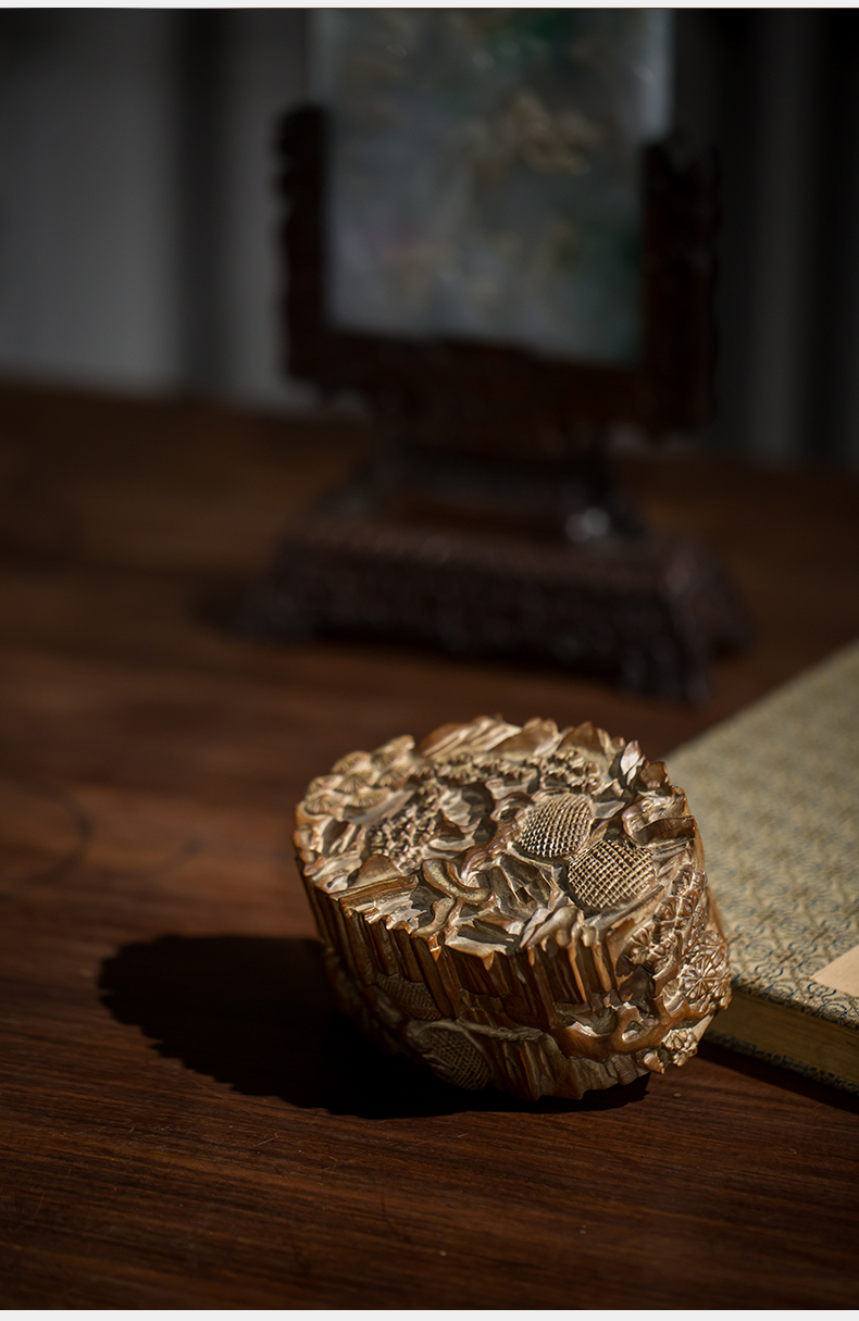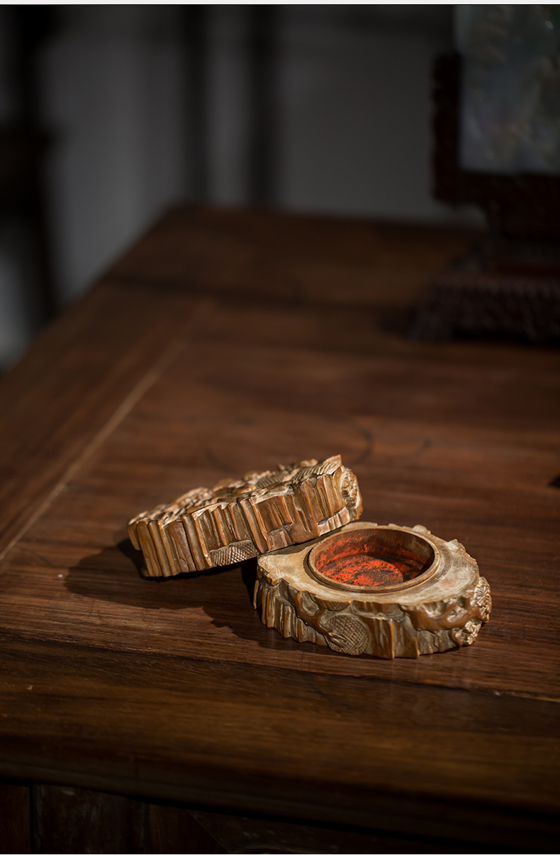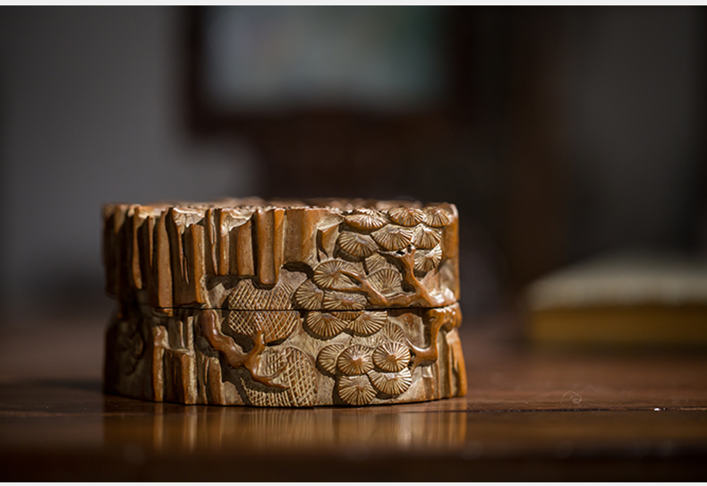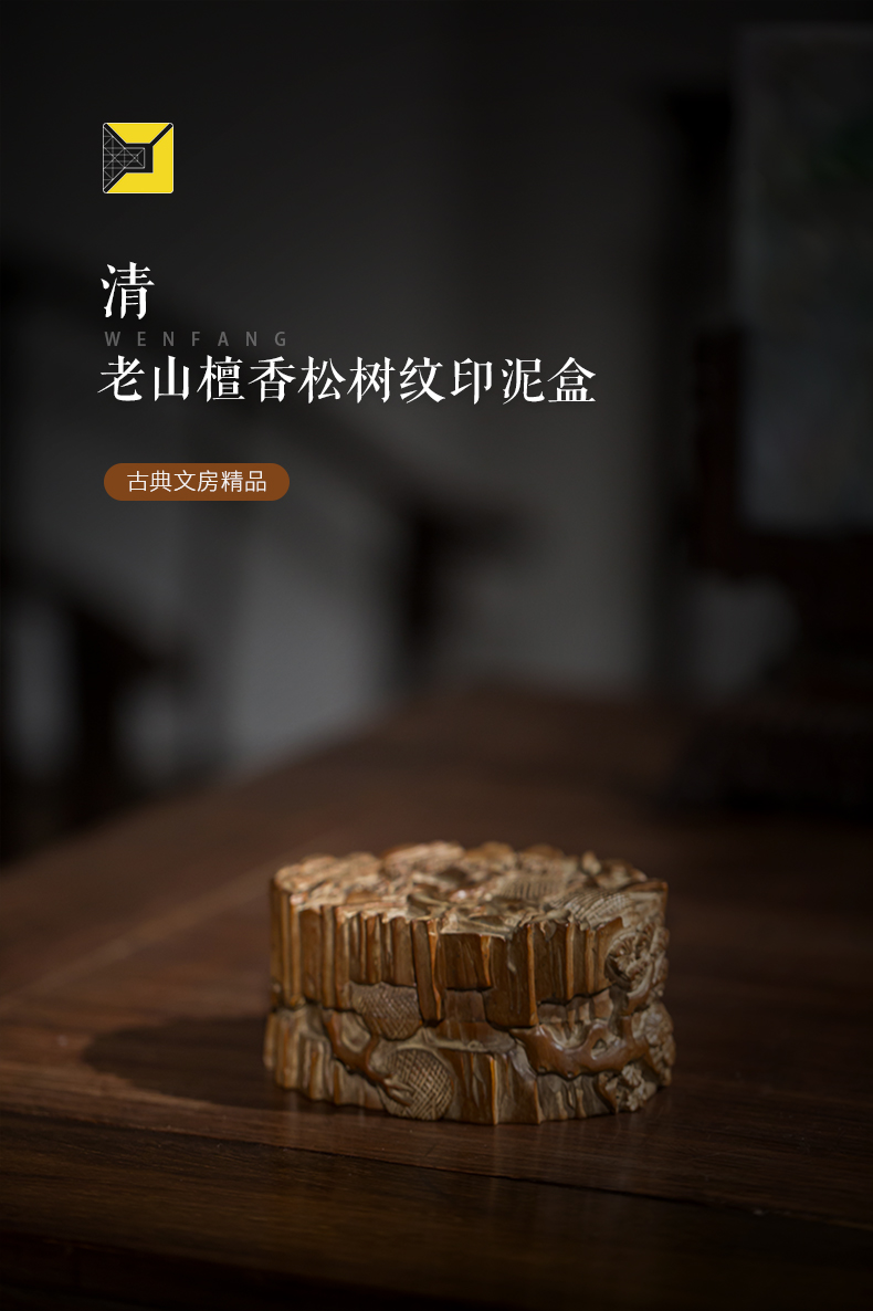 清代 老山檀香松树纹印泥盒