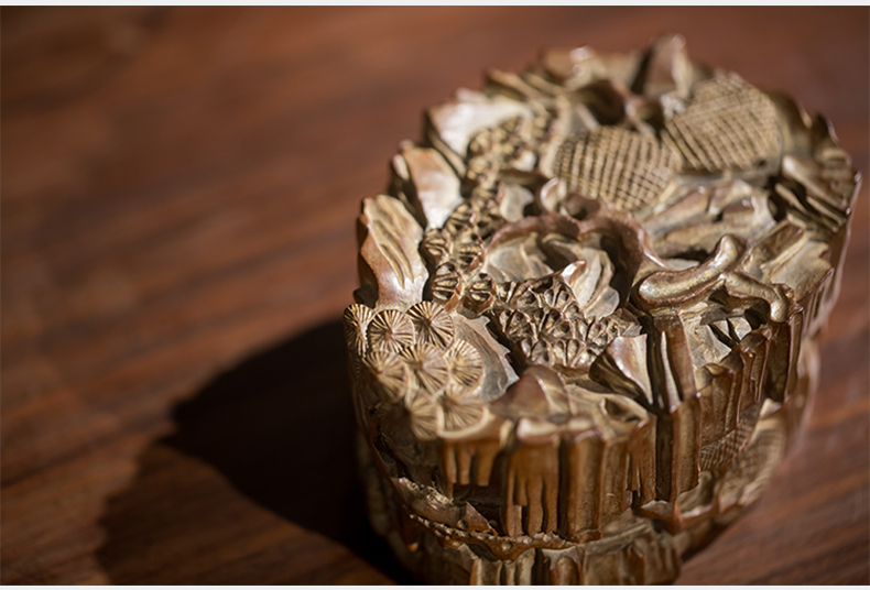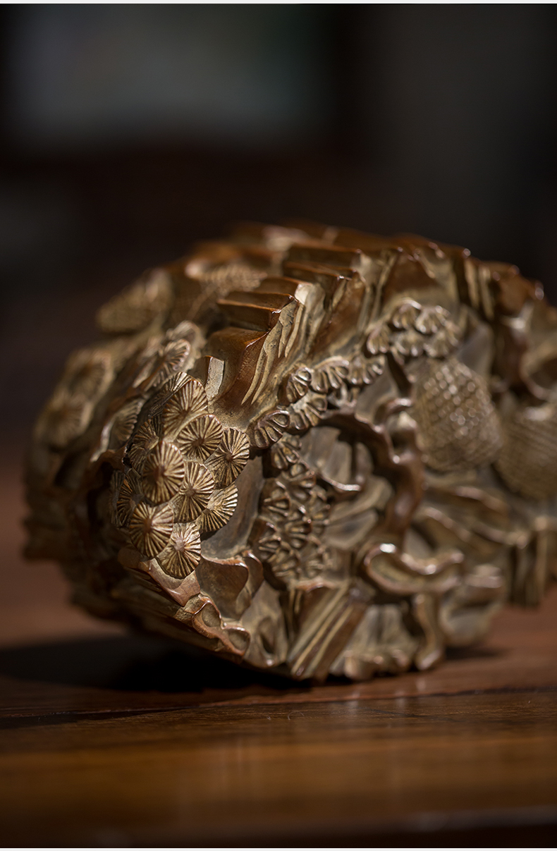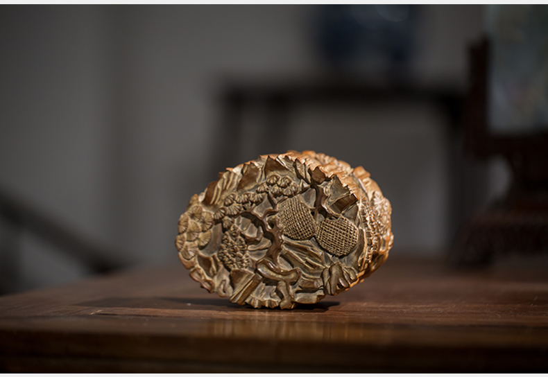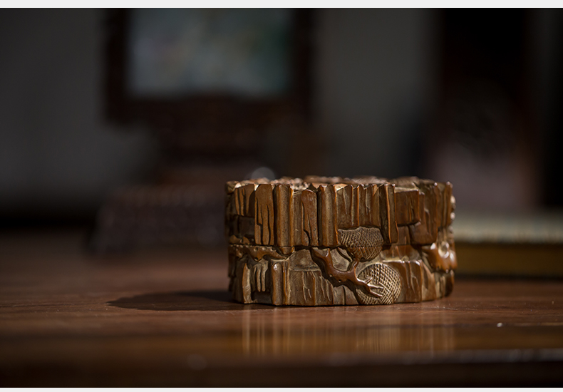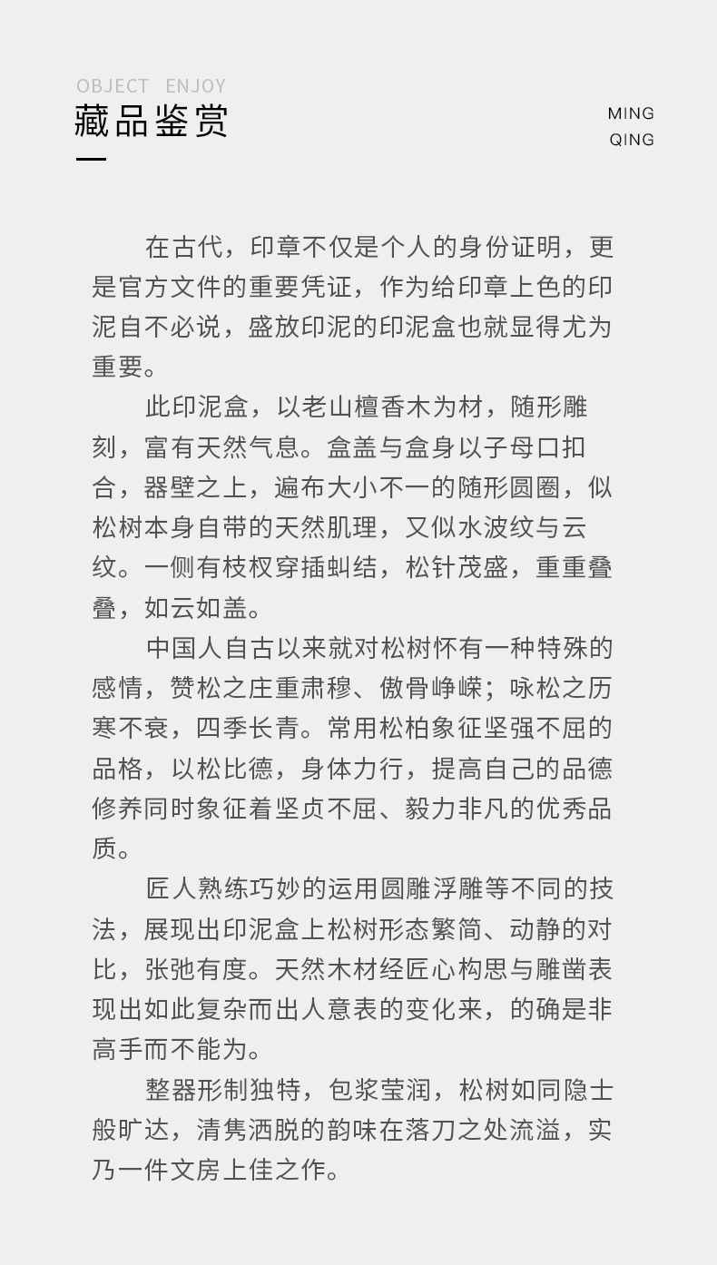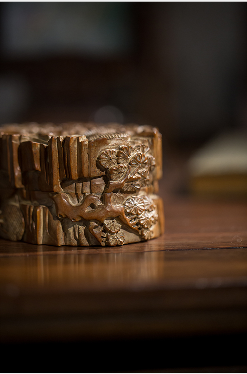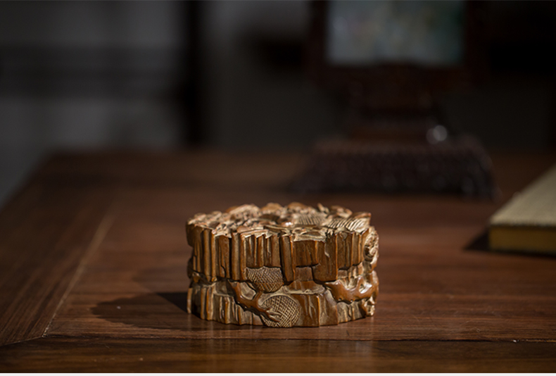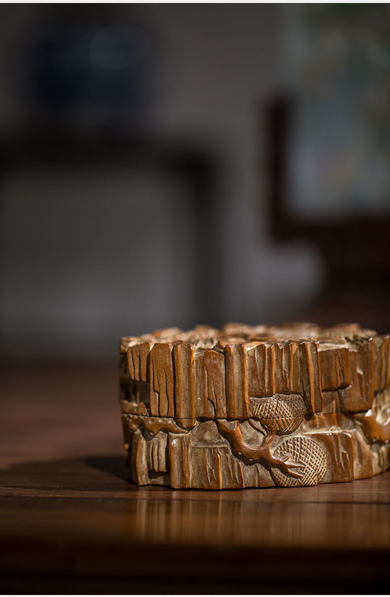 清代 老山檀香松树纹印泥盒