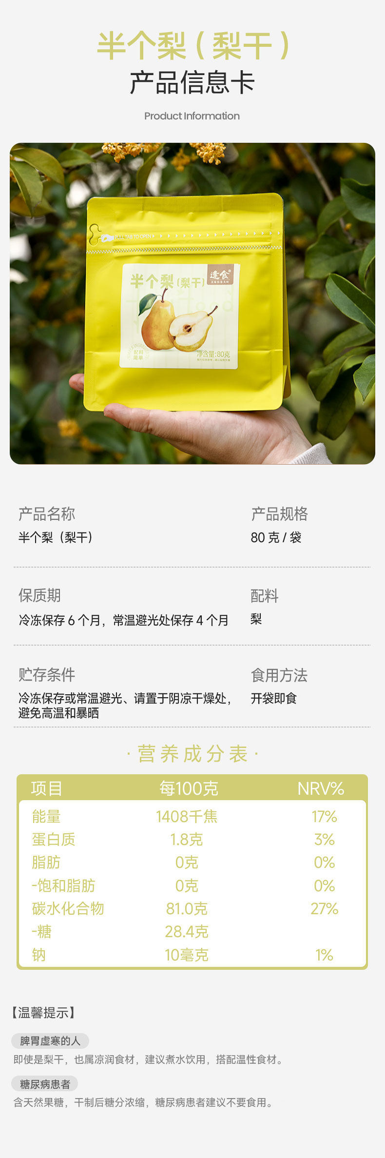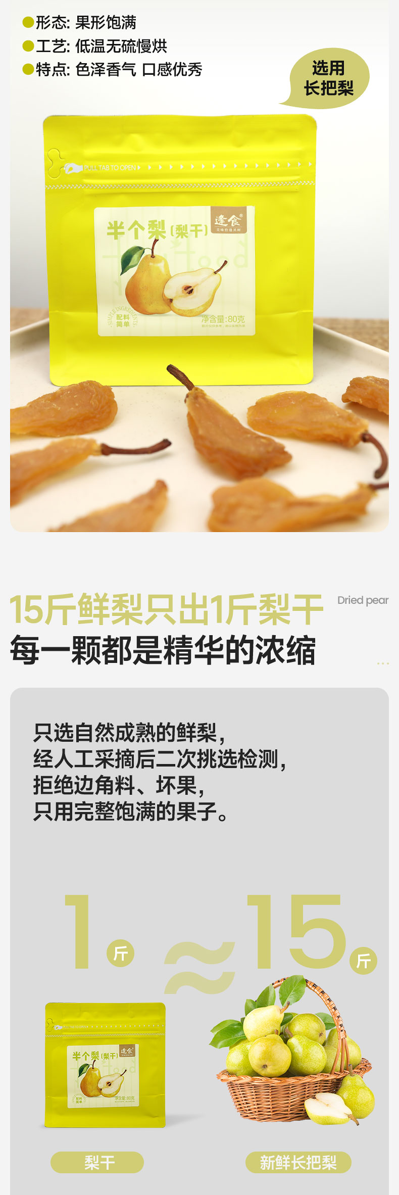 半个梨(梨干)| 80g/袋 龙口长把梨 鲜果烘制 果香浓郁 润而不寒 零食果脯 逢食