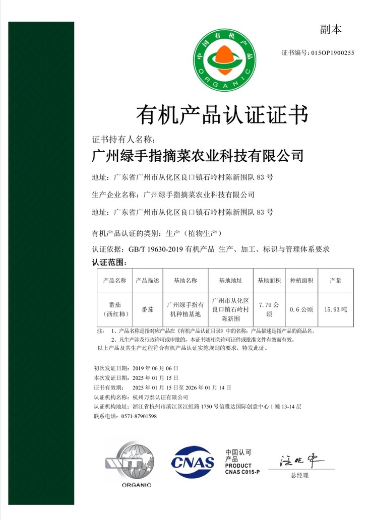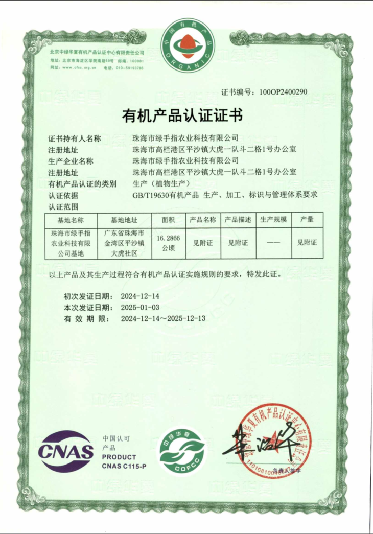 中国有机认证要做单品检测,费用高,我们部分选择了水果、瓜果、根茎、叶菜若干品种作为代表进行认证。