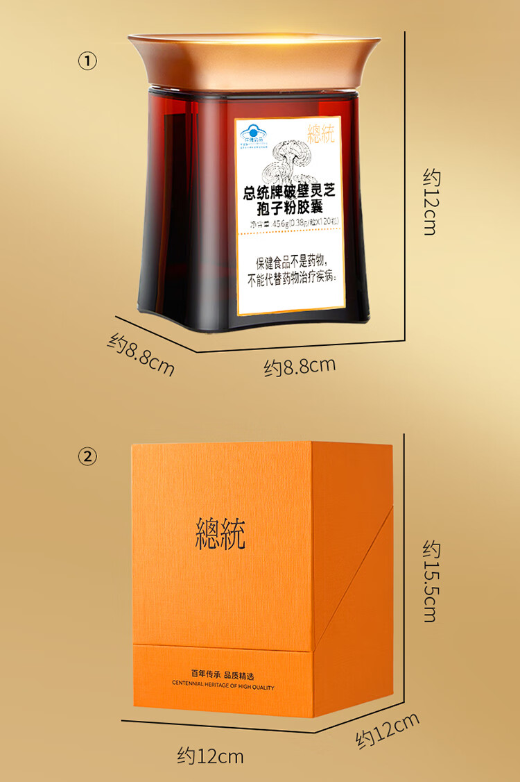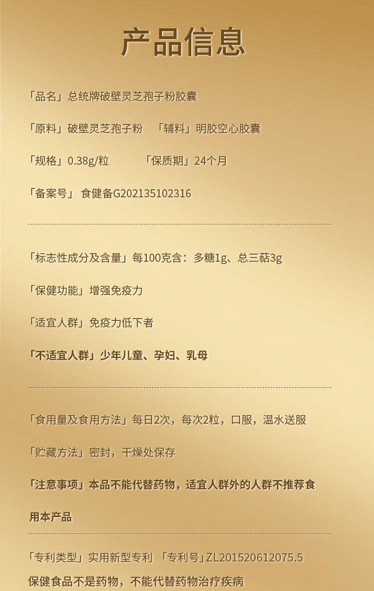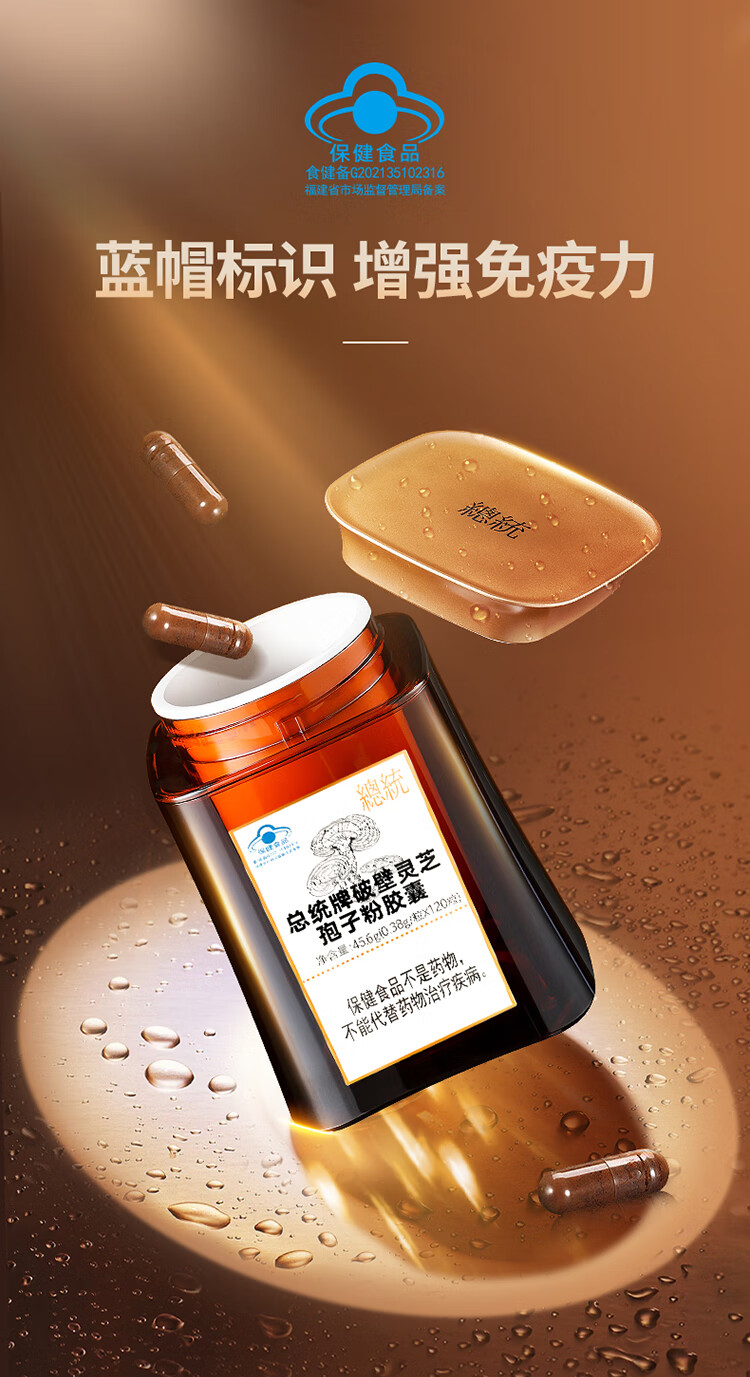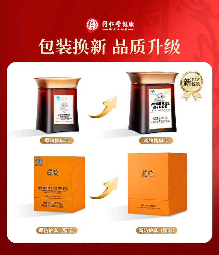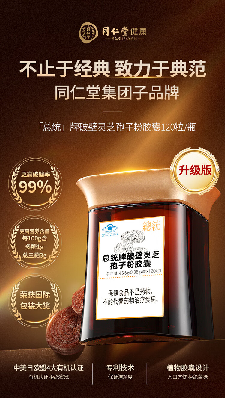 【正宗同仁堂品牌】北京同仁堂 总统牌破壁灵芝孢子粉胶囊升级版-0.38g/粒×120粒 增强免疫力 总三萜3g/100克SY