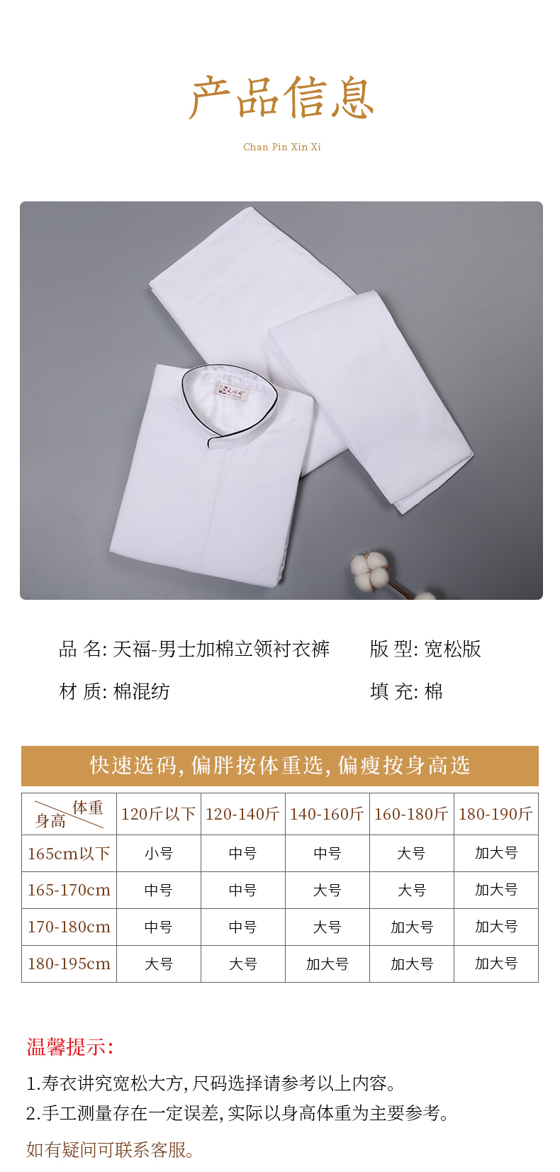 天福-加棉立领衬衣衬裤 男款