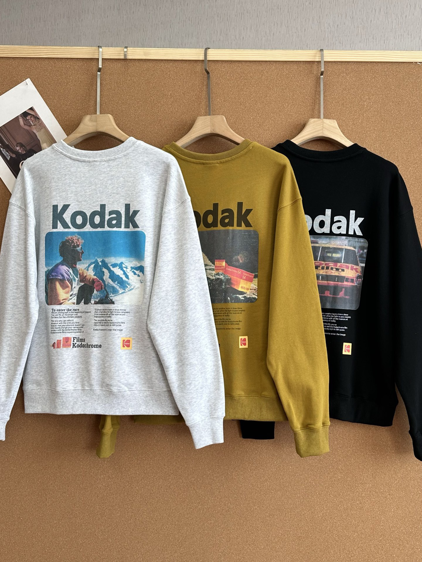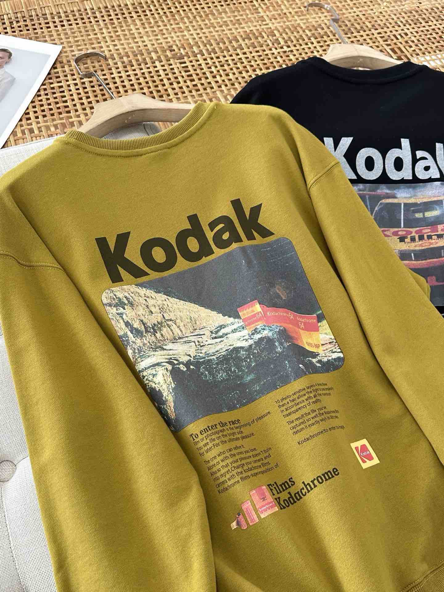 🔺纯原单❗️不去韩国也能买到韩国潮牌啦(柯达转战服饰届,最近风很大!正面左胸处有柯达经典黄红配色小标,背面则印有大幅复古胶片广告图案,搭配“Kodak”品牌字样与“Films Kodachrome”等经典标语,整体风格复古又潮流,男女同款,宽松版型百搭不挑人。