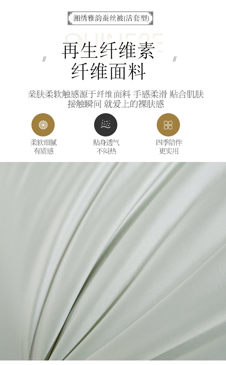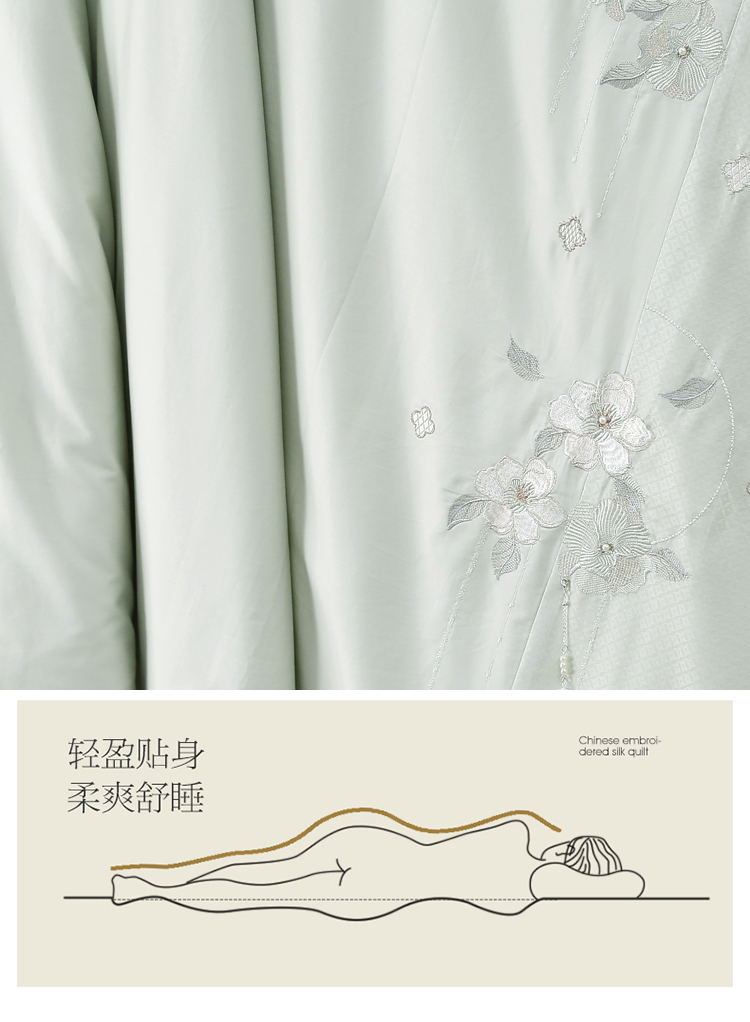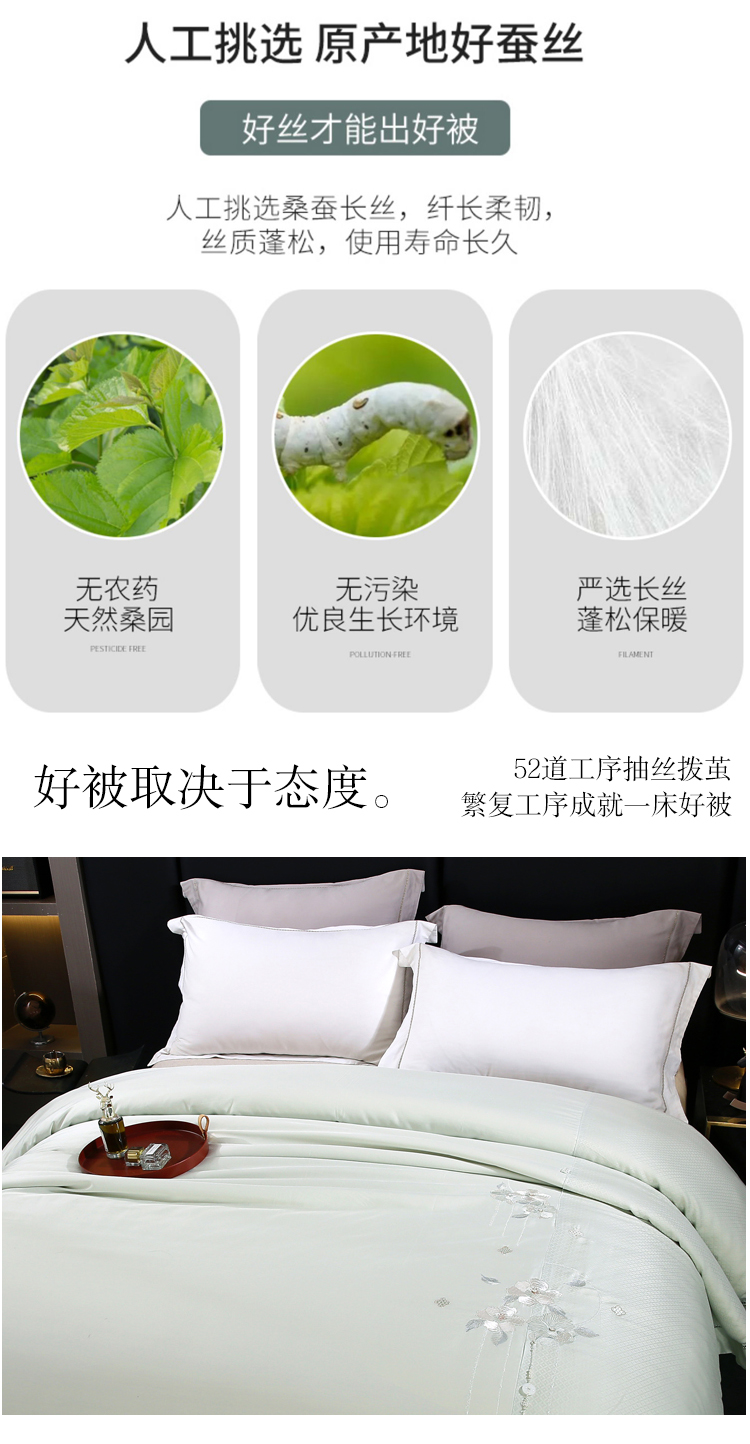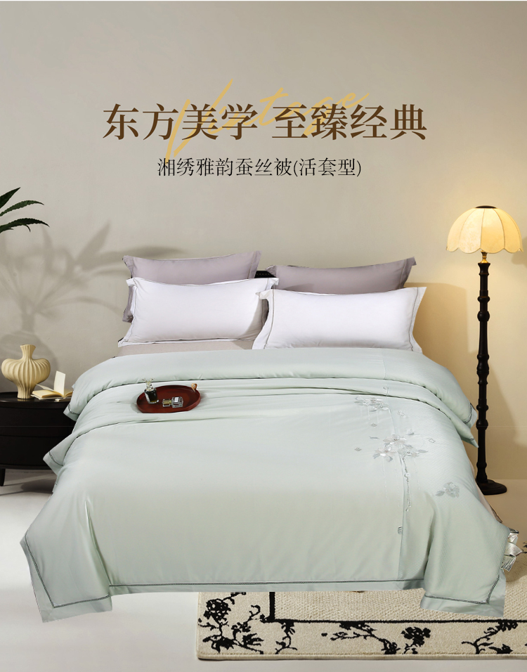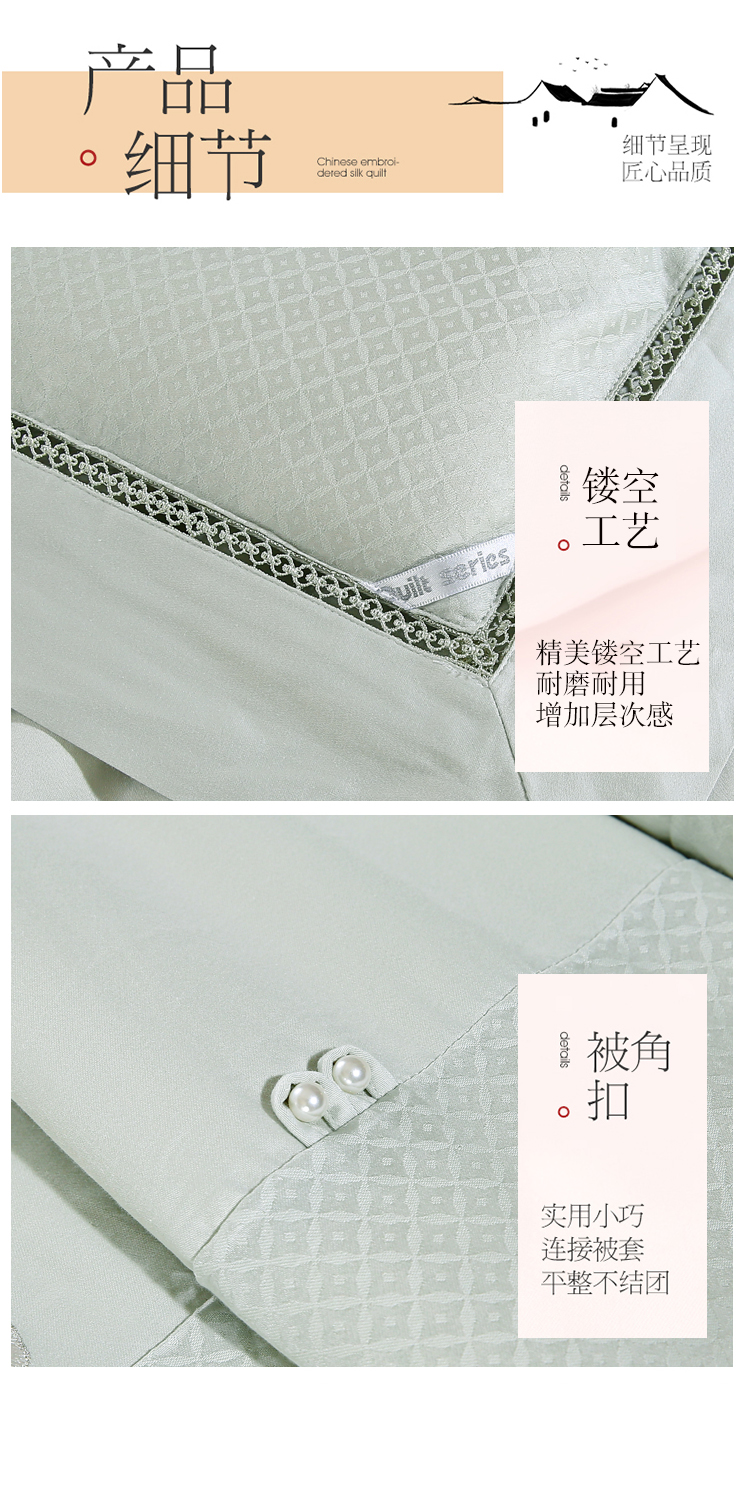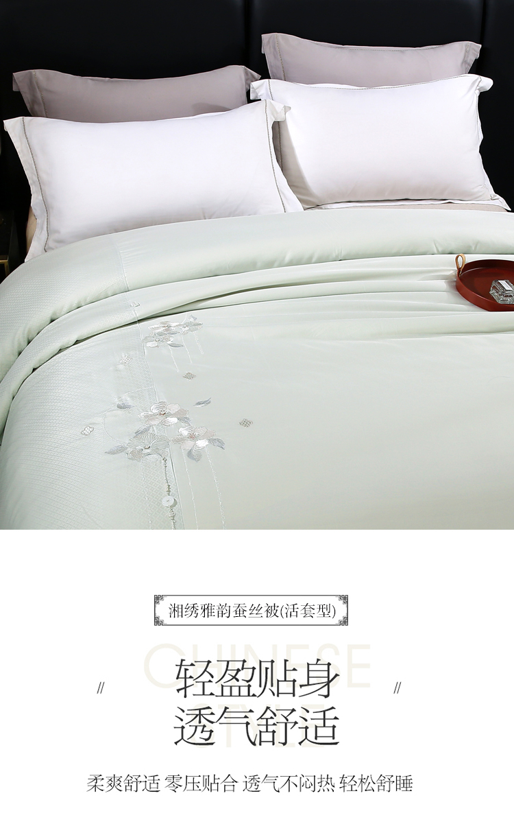 湘绣雅韵蚕丝被(活套型)【悠梦嘉居湘绣雅韵蚕丝被,活套型设计100%蚕丝填充,再生纤维素纤维面料,柔软舒适常规码200*230,绿水长汀】
