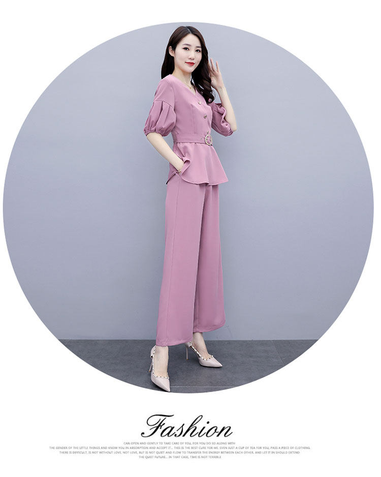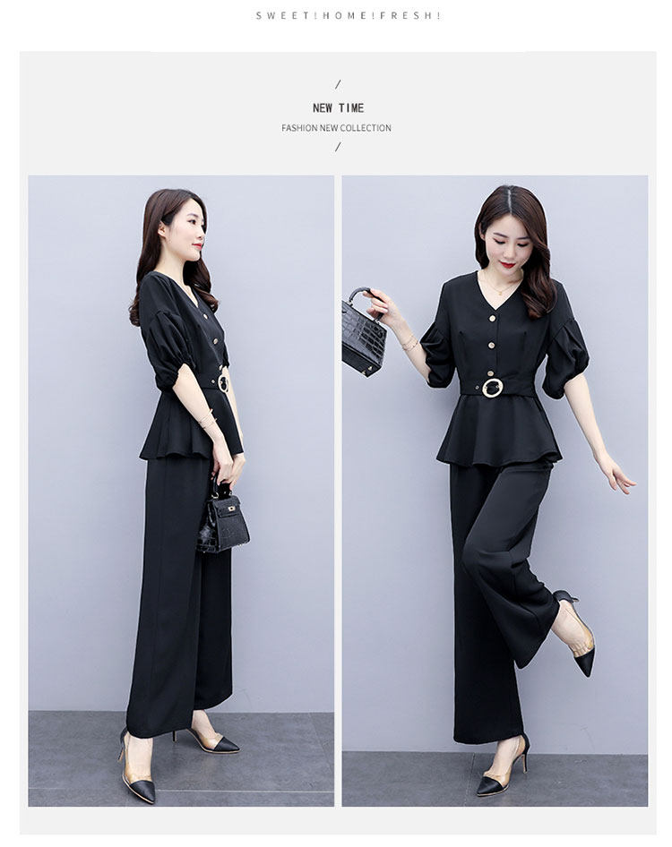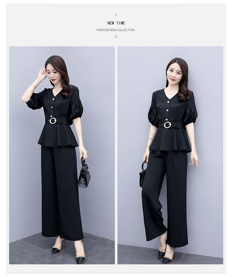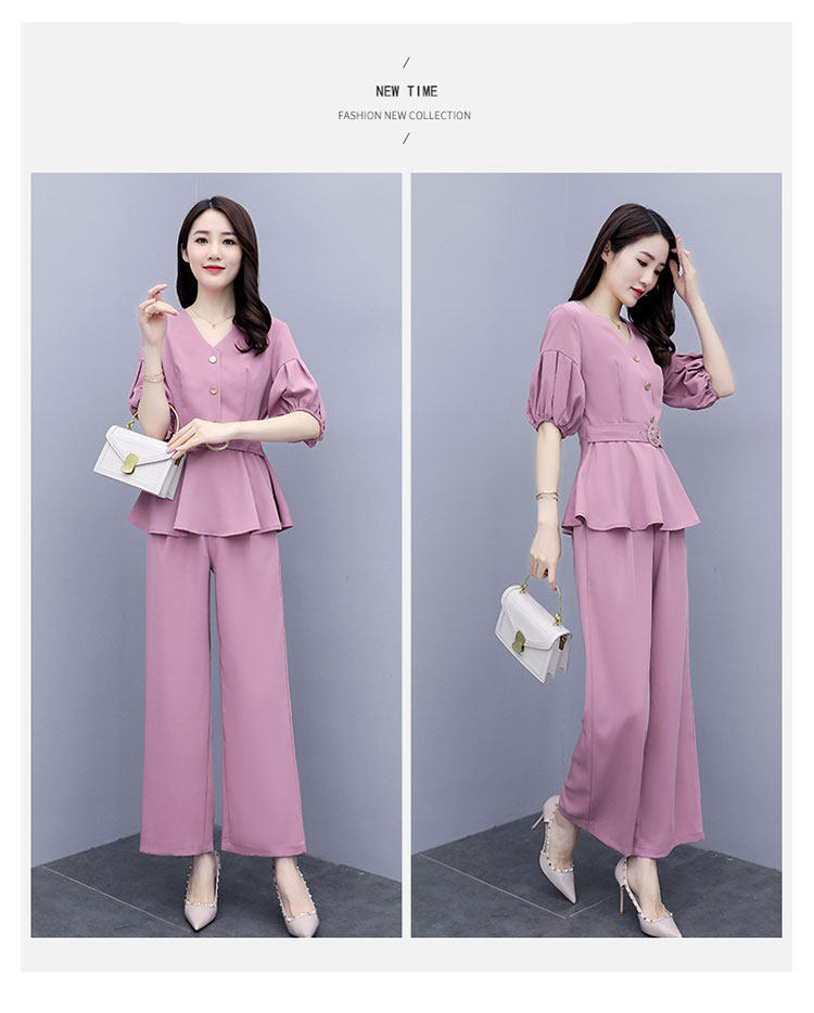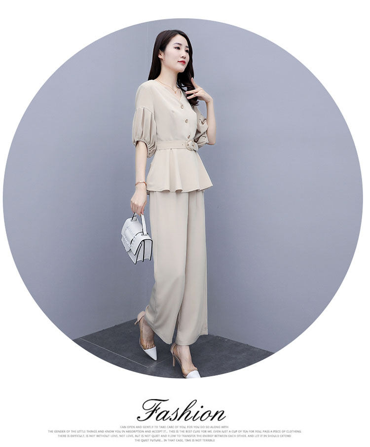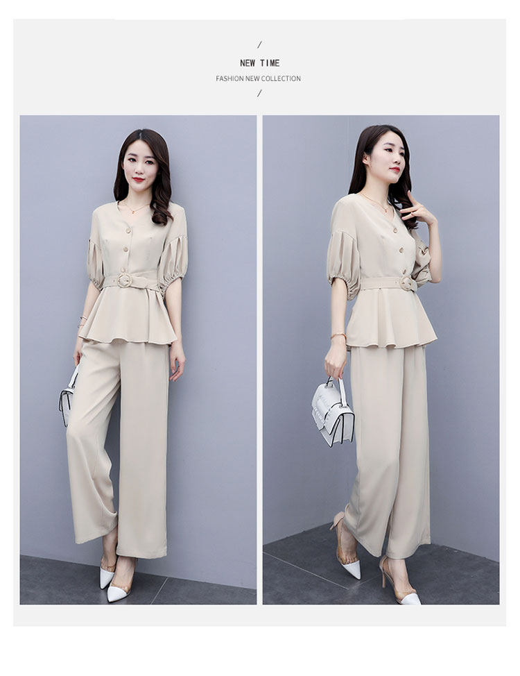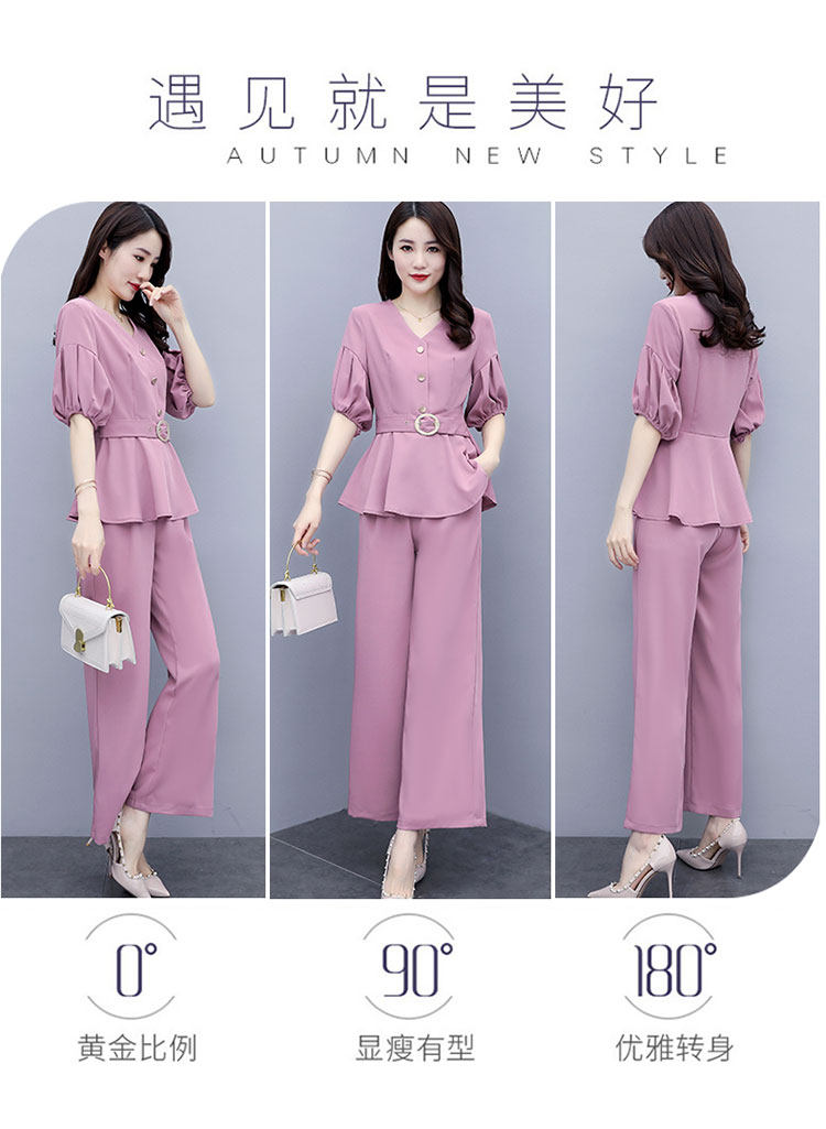 WZNH-HYGG8212新款气质小香风显瘦洋气时尚阔腿裤两件套