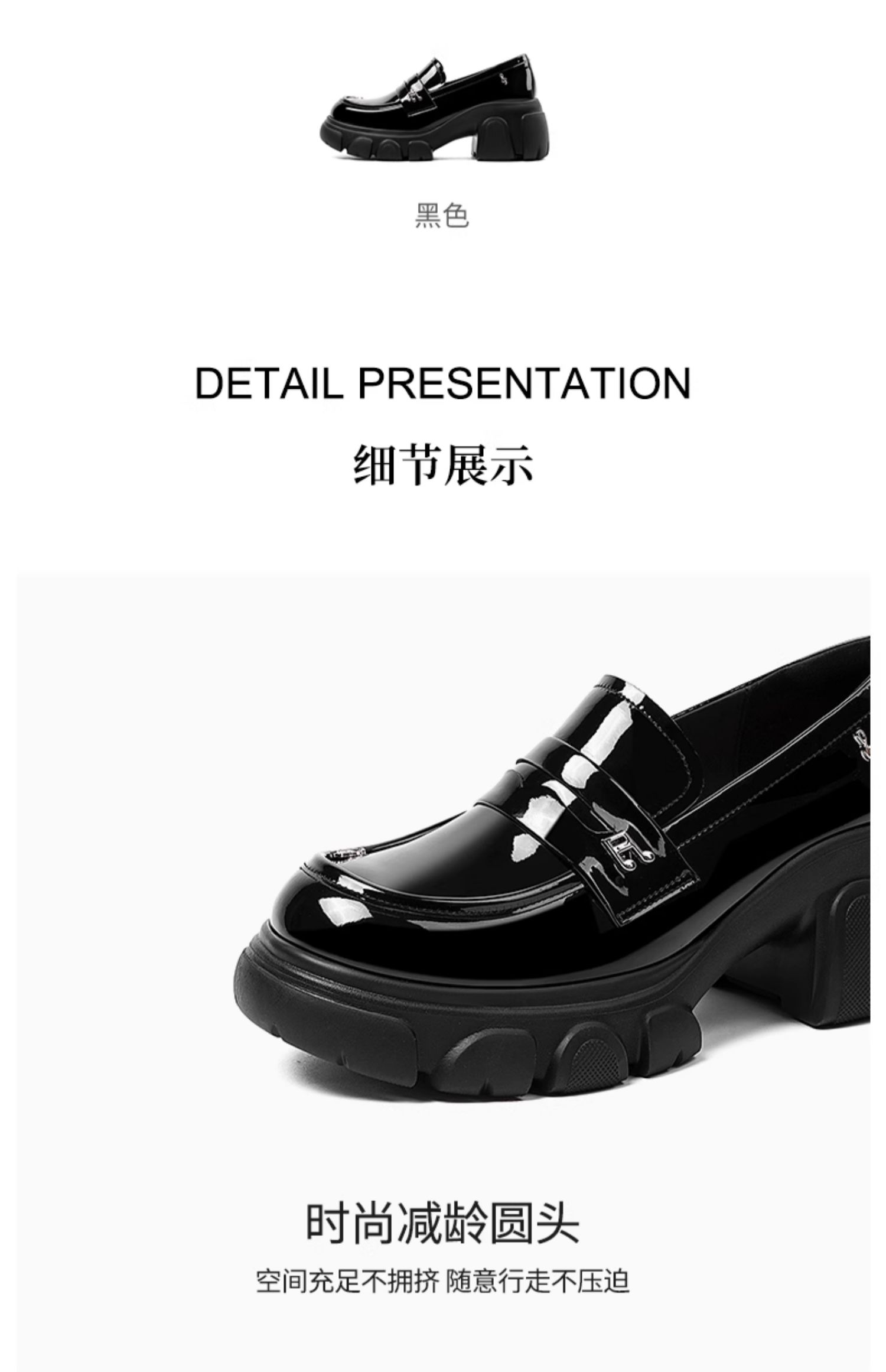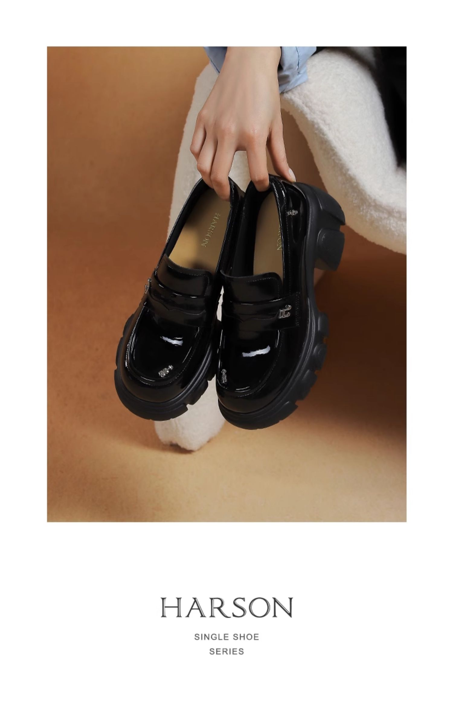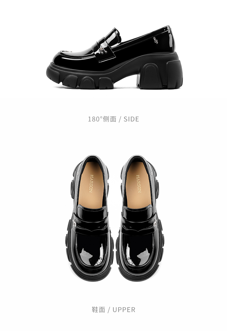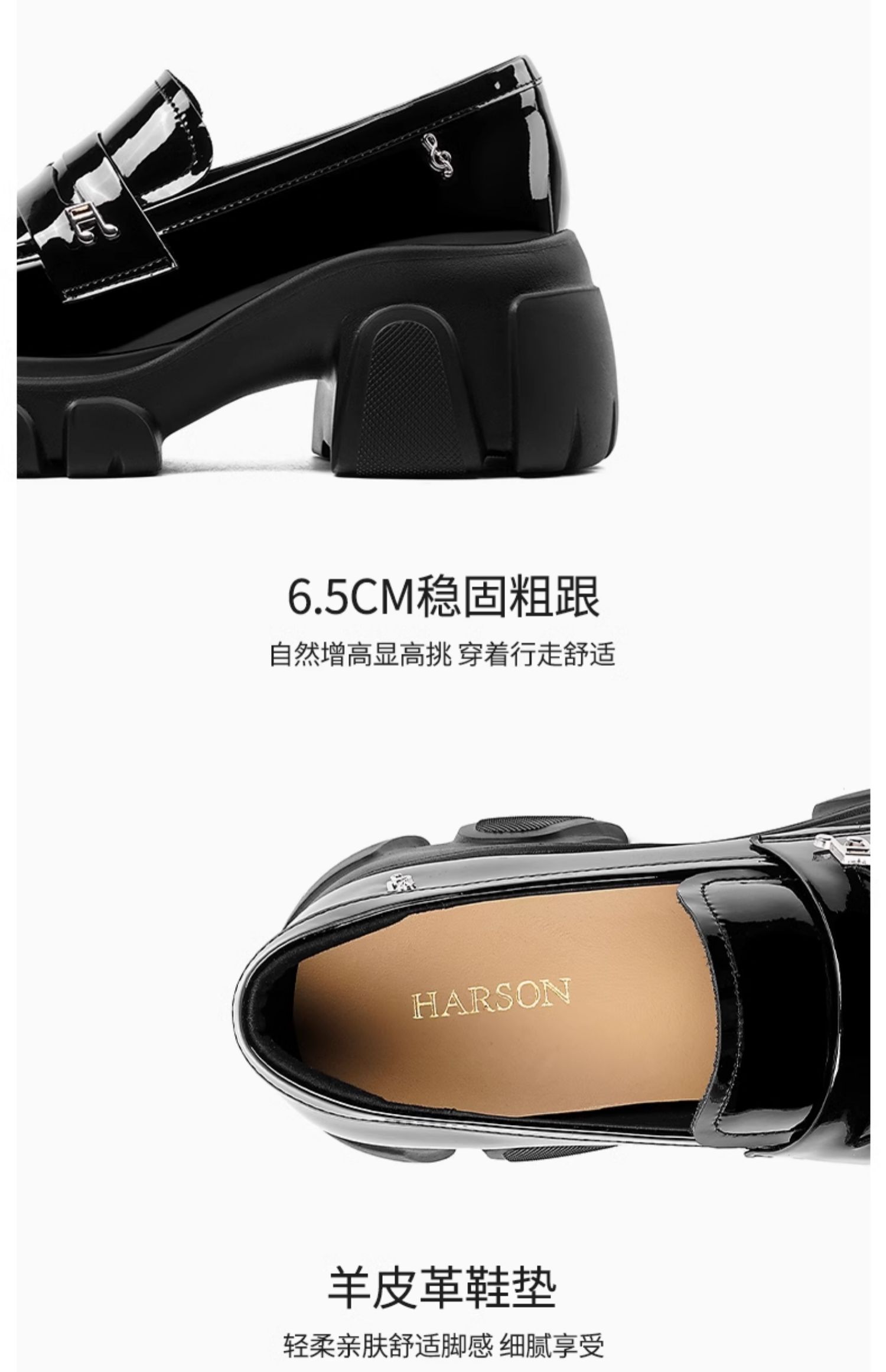 哈森厚底高跟乐福鞋女2025春季新款黑色漆皮亮面深口单鞋HS252505
