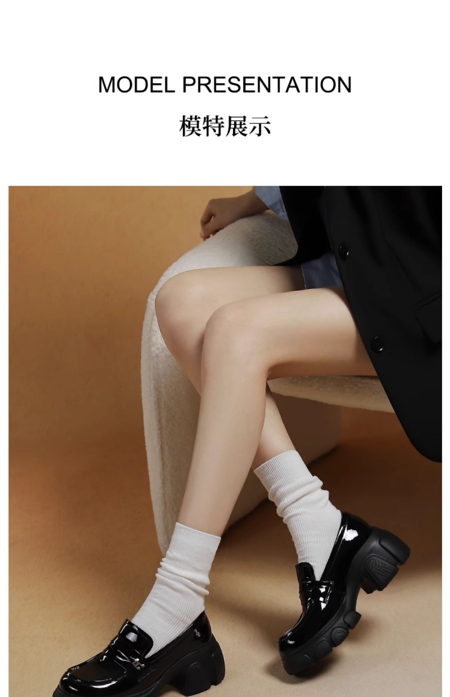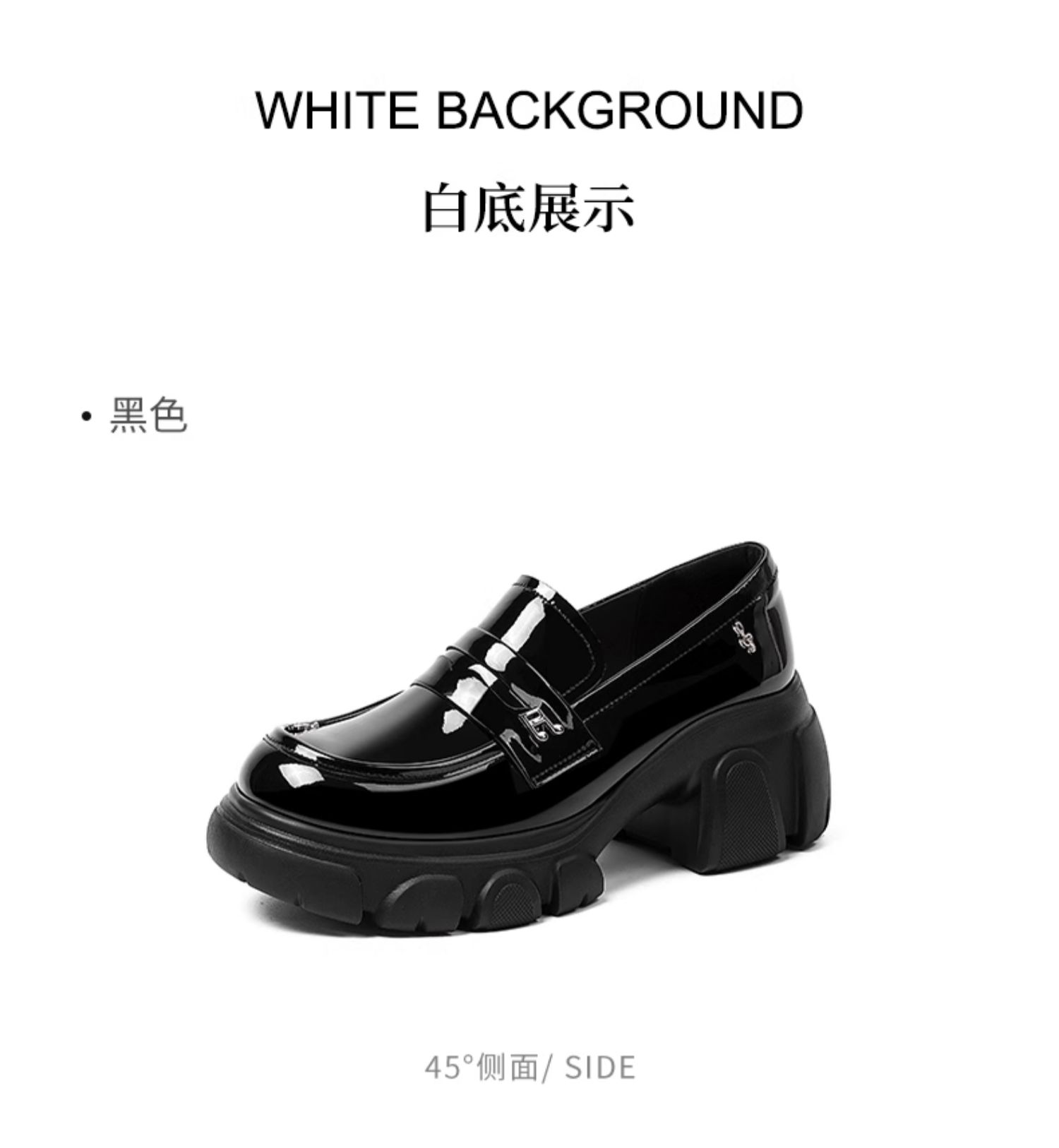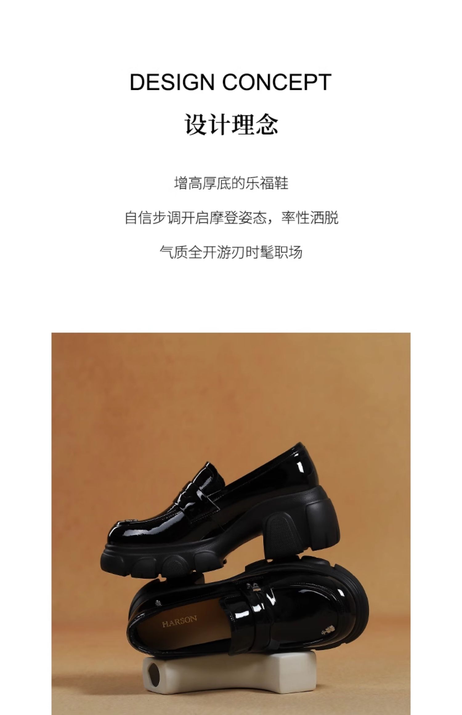哈森厚底高跟乐福鞋女2025春季新款黑色漆皮亮面深口单鞋HS252505