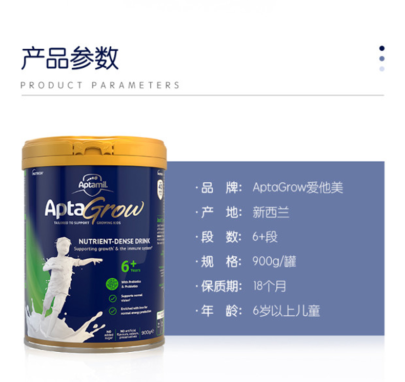 新西兰Aptmil爱他美儿童成长奶粉6+(6岁以上)900g