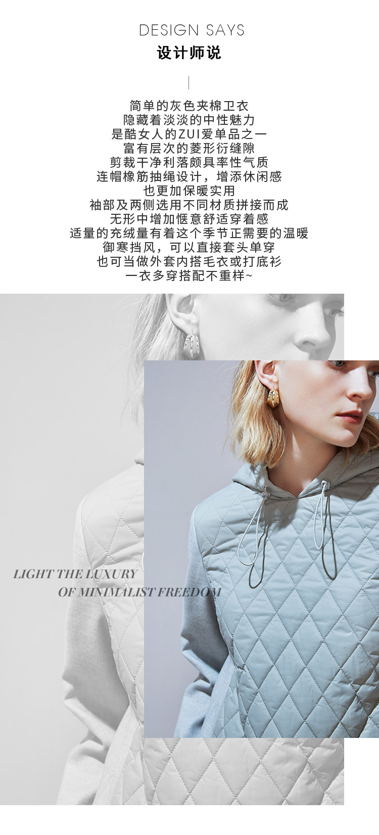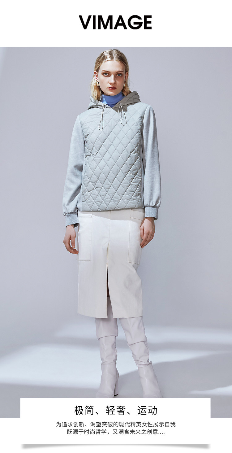 VIMAGE纬漫纪冬季新款时尚加厚保暖连帽夹棉卫衣上衣女套头V1402006
