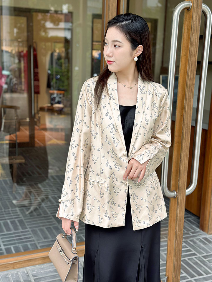 「K」洛诗琳12902国风剪影西装外套女2025新款真丝印花外套22597
