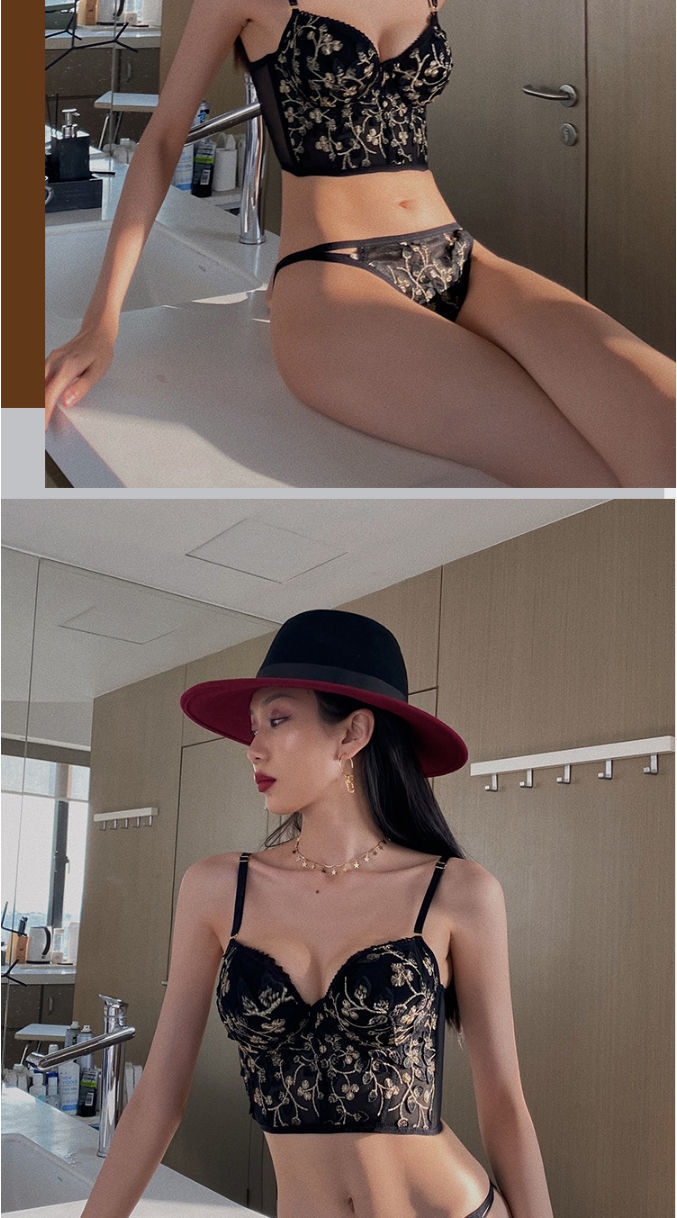 法式蕾丝性感内衣套装薄款大胸显小胸罩礼服bra少女日系聚拢文胸