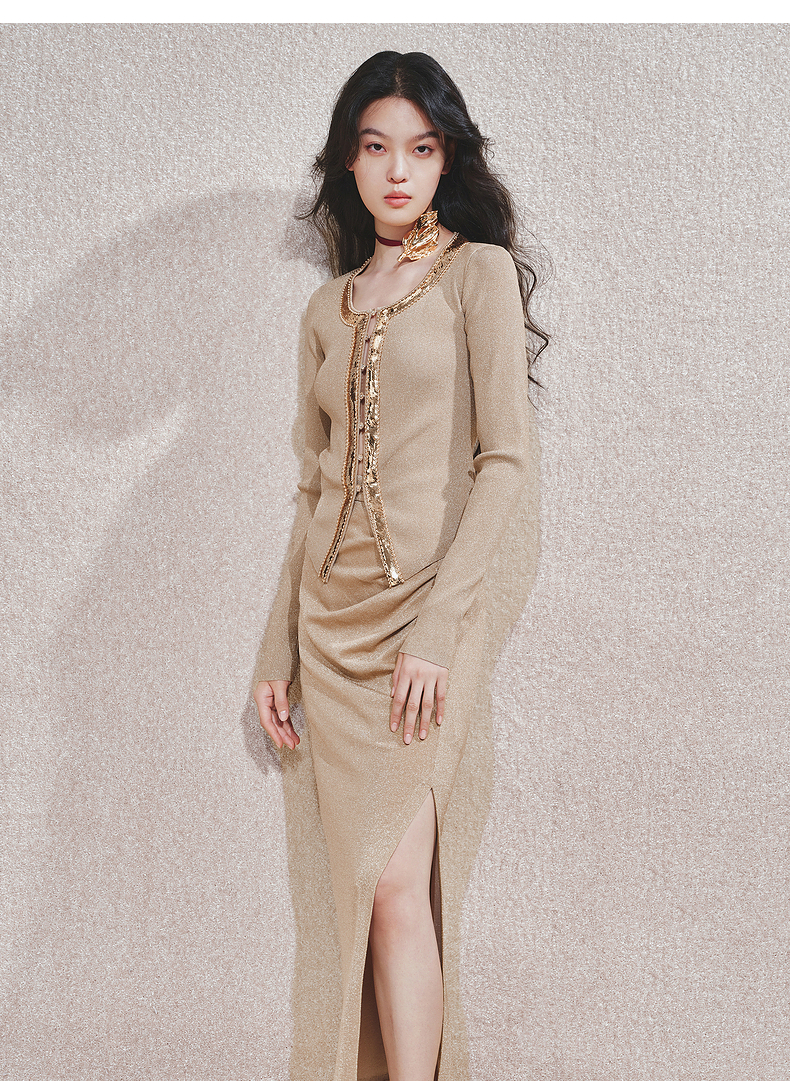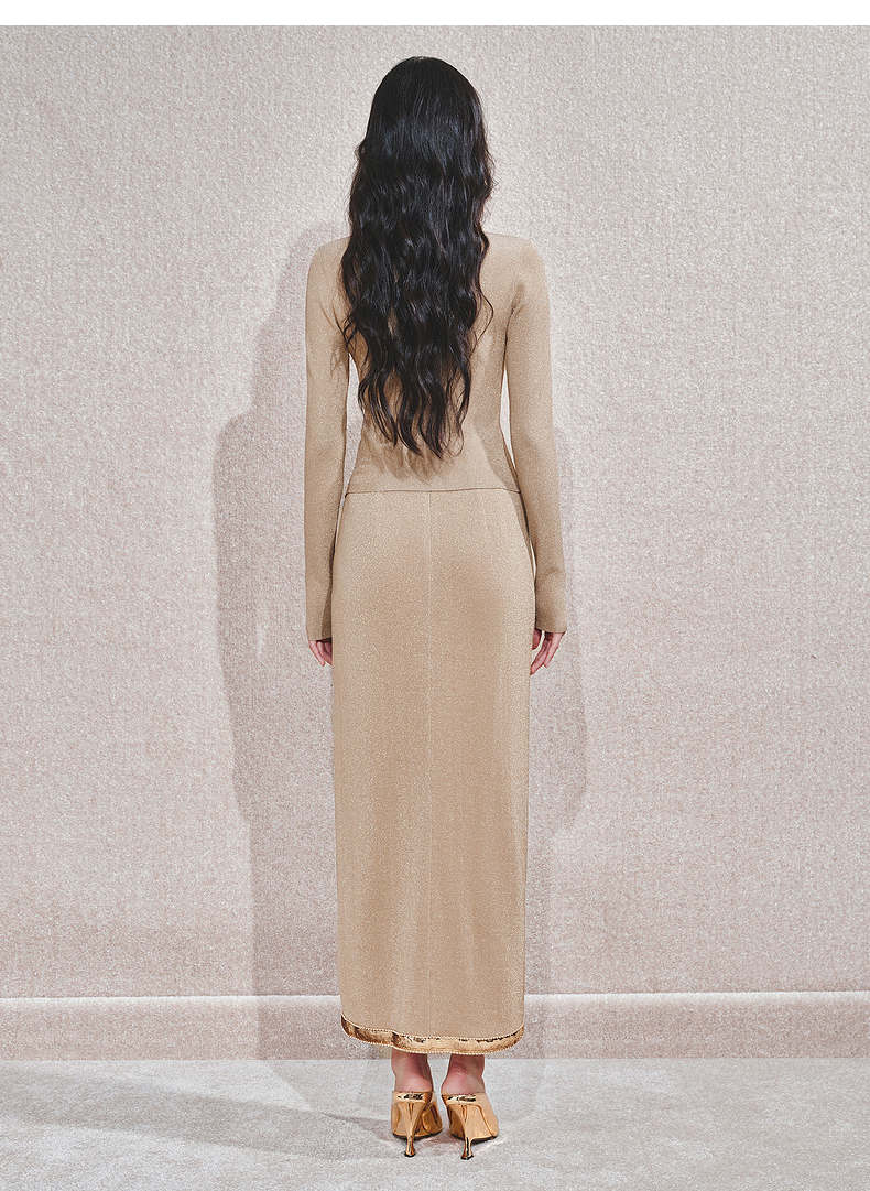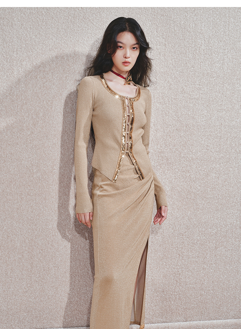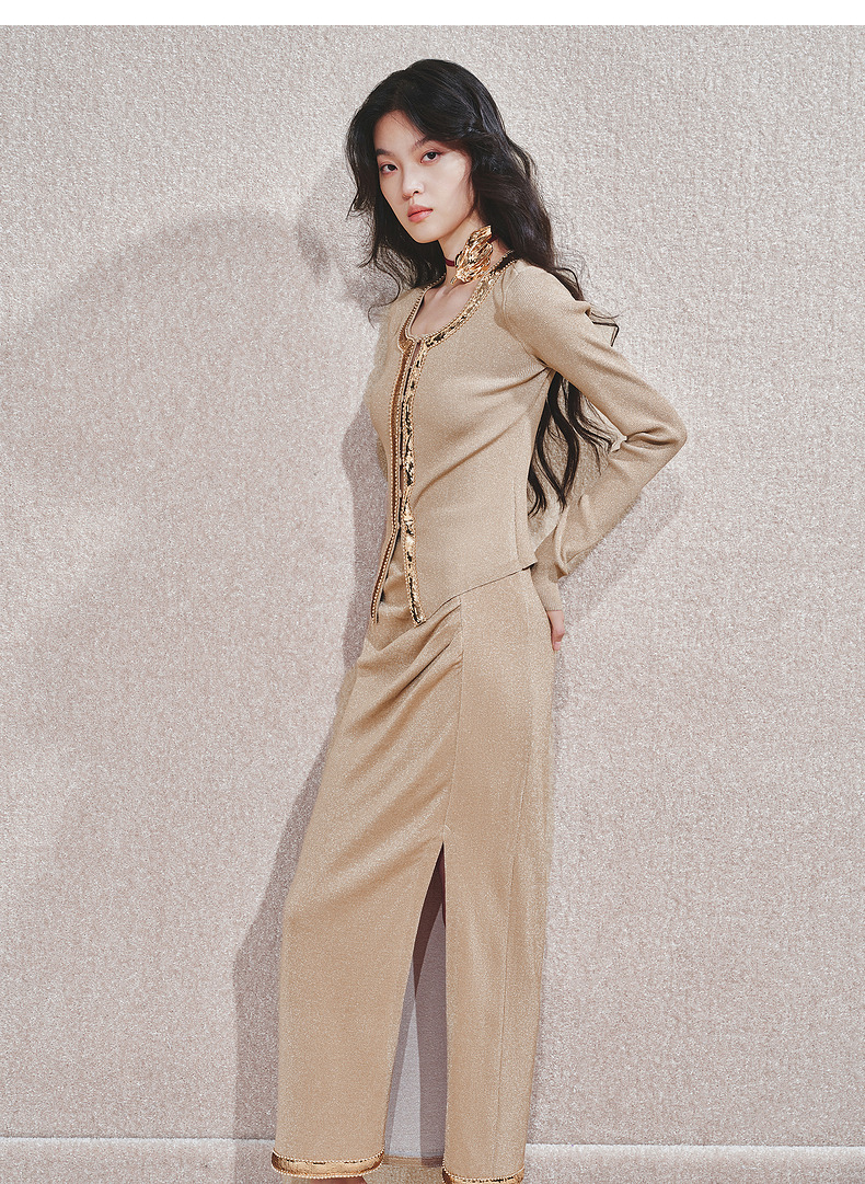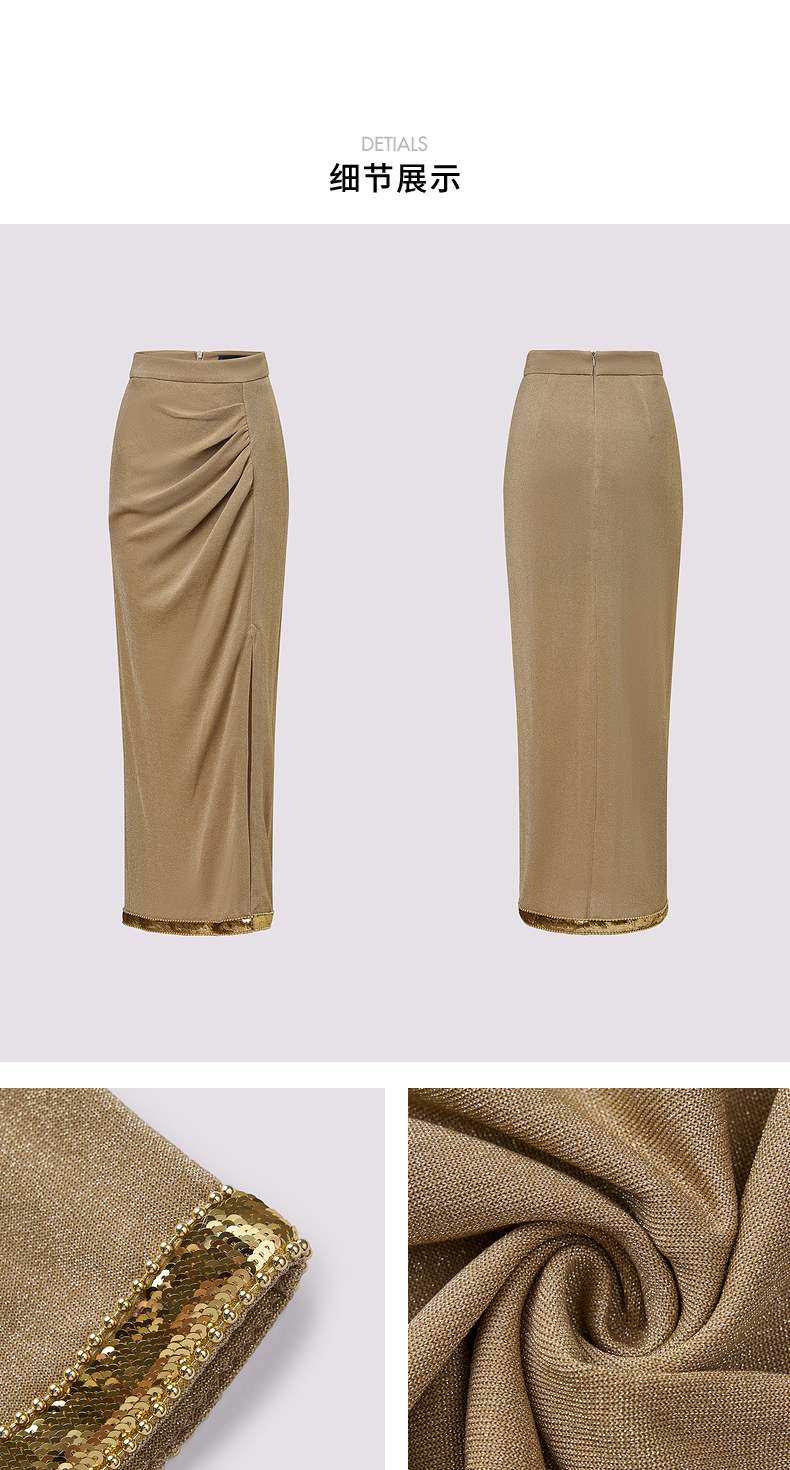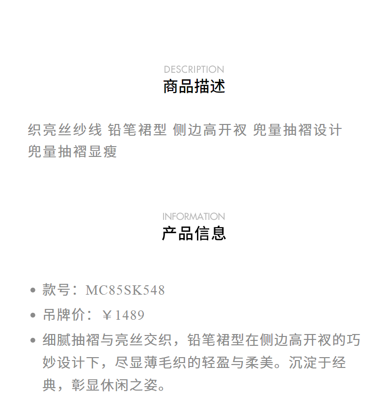 【宫廷巴洛克-商场同款】MAXRIENY精致复古铅笔抽褶开衩半裙24秋(货号:MC85SK548)
