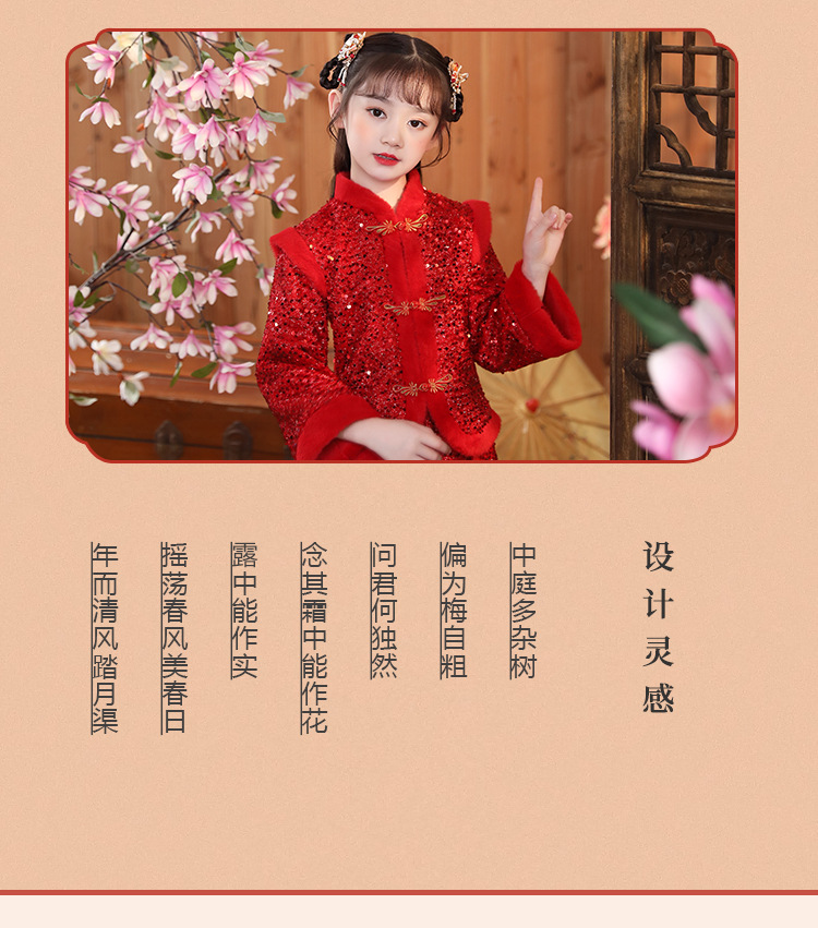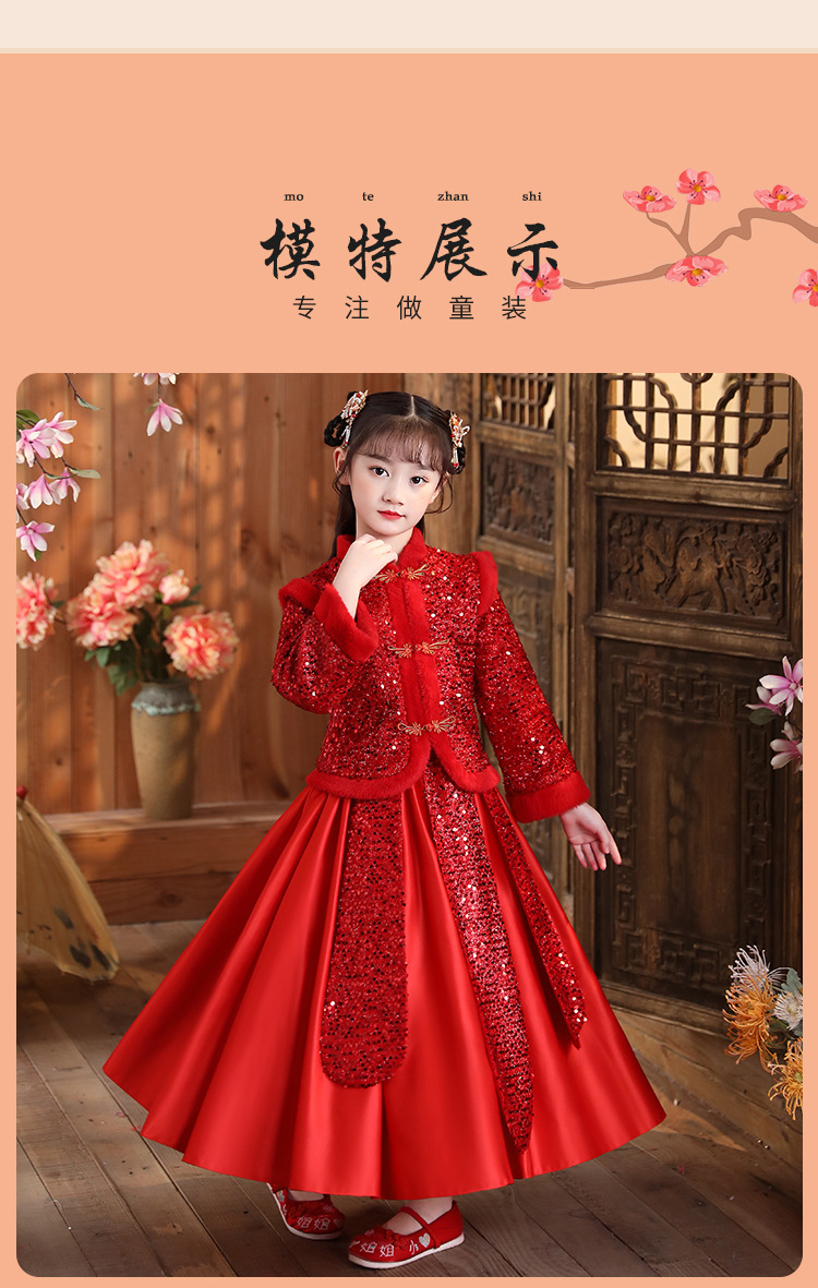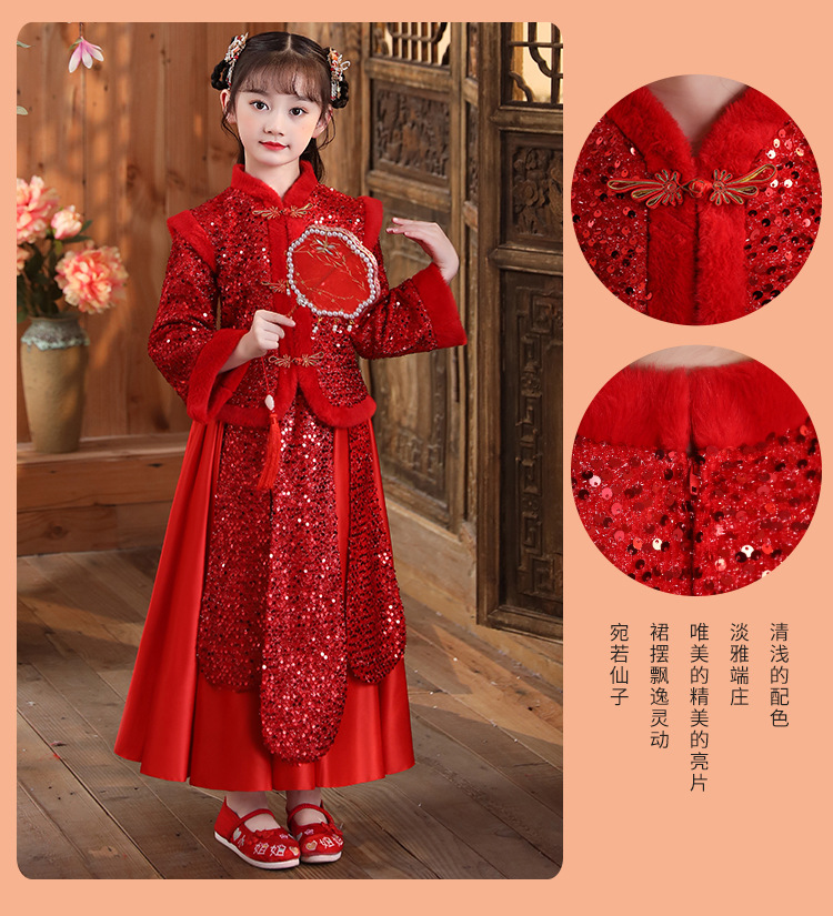 加绒女童中国风唐装古装旗袍裙两件套DY9959-1