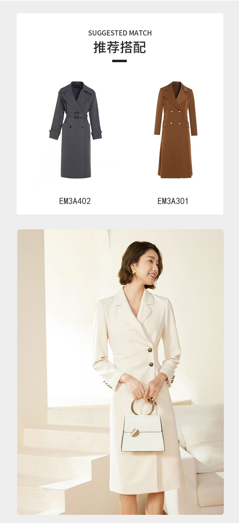 乔万尼法式气质连衣裙新款白色收腰风衣裙EM3E459