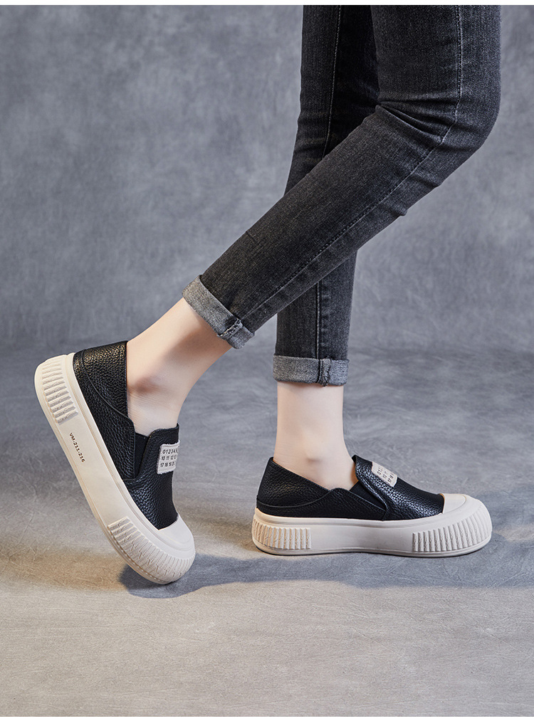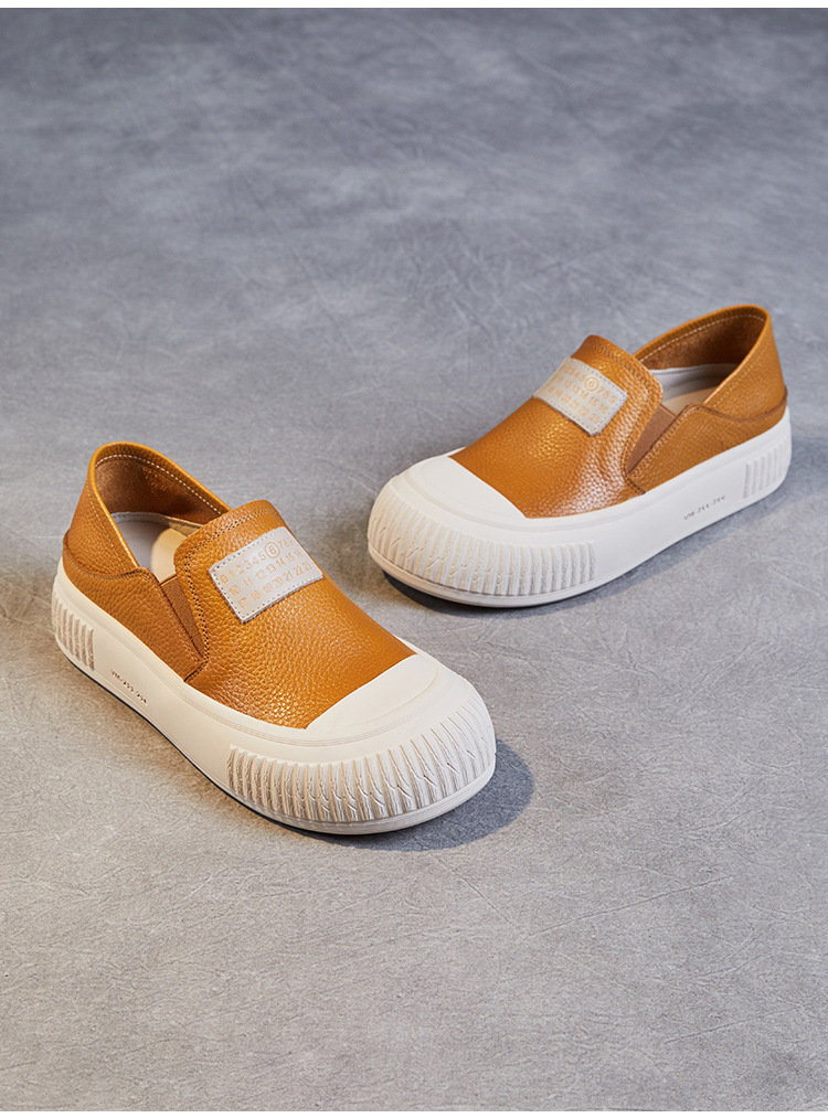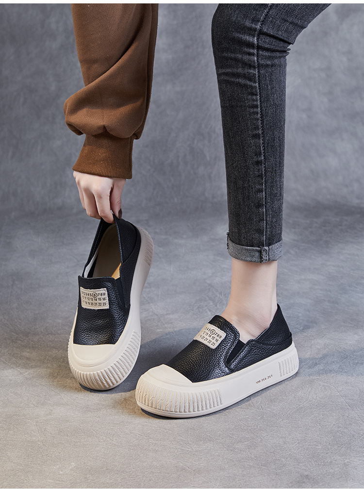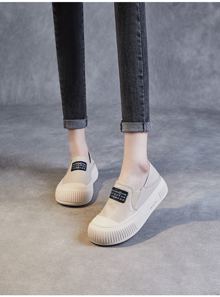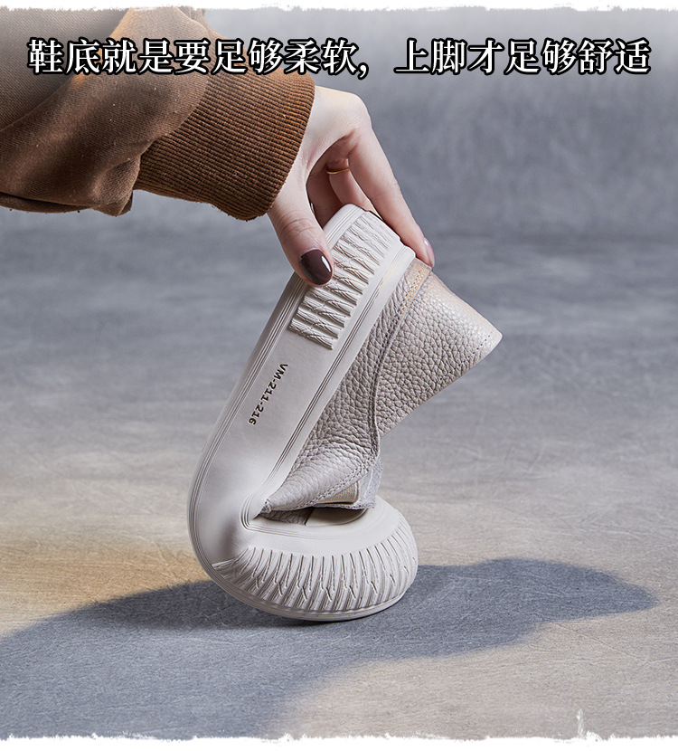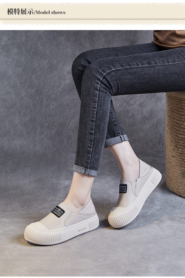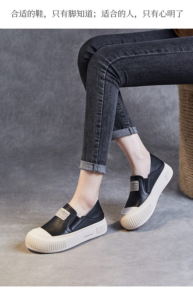 头层牛皮厚底饼干鞋,休闲松糕一脚蹬懒人单鞋真皮乐福鞋 ZM24A638