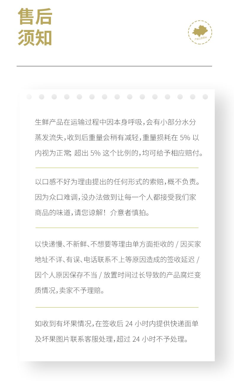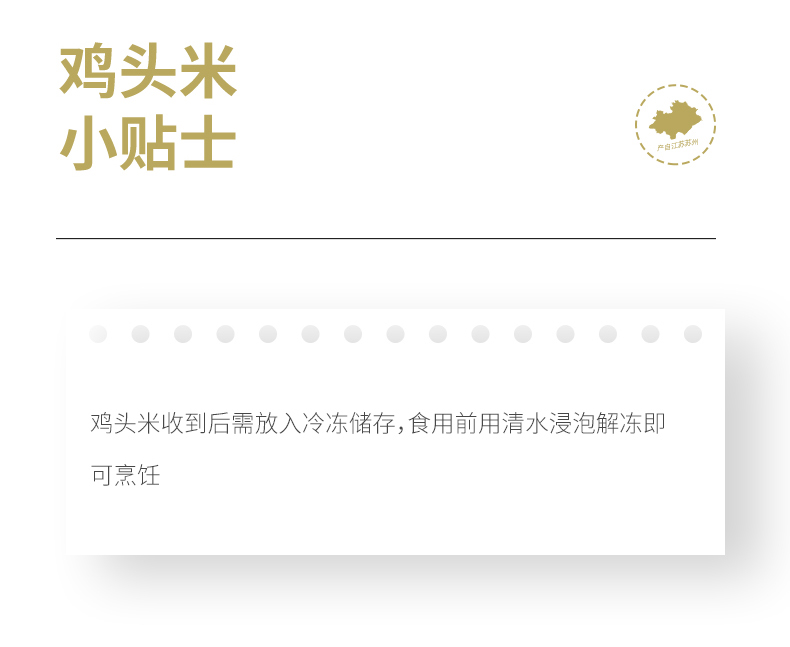 品名:苏州鸡头米 规格1:100g/袋*5袋(中颗粒约7mm) 规格2:100g/袋*5袋(大颗粒约9mm) 规格3:100g/袋*5袋(超大颗粒约11mm) 规格4:100g/袋*10袋(中颗粒约7mm) 规格5:100g/袋*10袋(大颗粒约9mm) 规格6:100g/袋*10袋(超大颗粒约11mm)任意下单赠送1组(1桂花+1冰糖);拍几份发几个包裹,不一定能同时到达,请耐心等待 发货产地:苏州 包装方式:袋装 保质期:冷冻18个月 物流信息:默认顺丰/京东快递,不支持指定快递 发货区域:新疆、西藏、内蒙、青海、宁夏、甘肃、海南不发; 物流详情:周六、周日及节假日除外,正常48小时内发货,到货时间约为2~5天,请耐心等待 售后说明:收到货后有质量问题,在6小时内都可以拍照(坏品+快递单面箱子一起拍)上传,申请按坏品比例理赔或联系客服,生鲜食品性质特殊,不支持7天无理由退换货;因地址错误,手机号联系不上,拒收等造成的损失无法售后,请理解; |