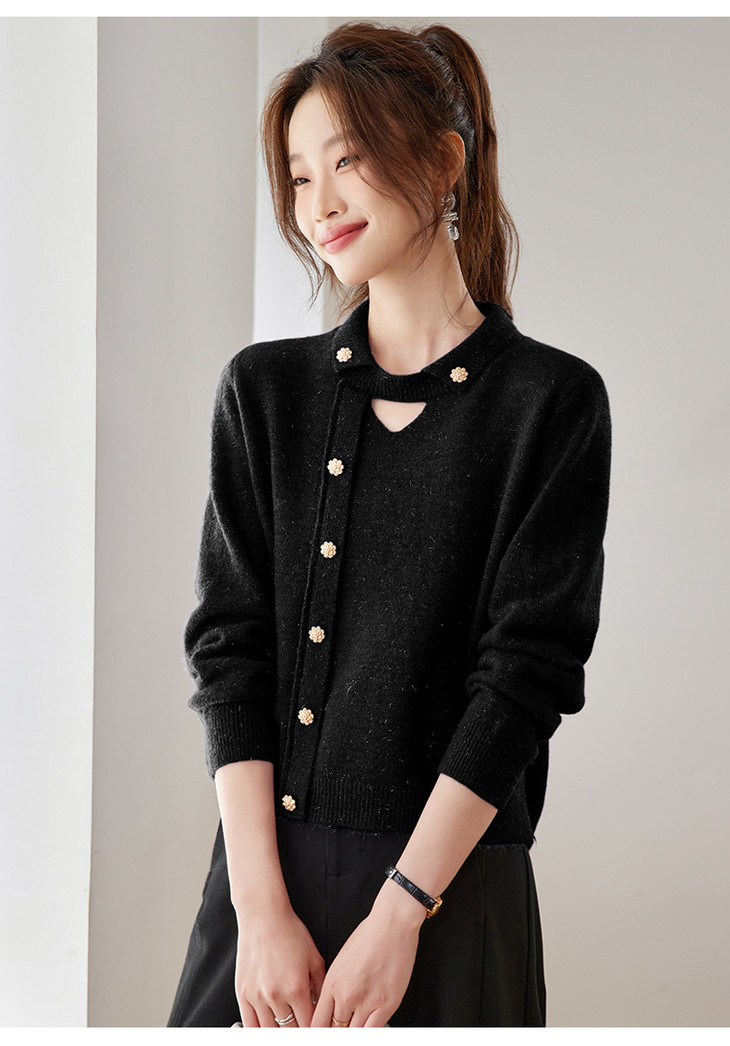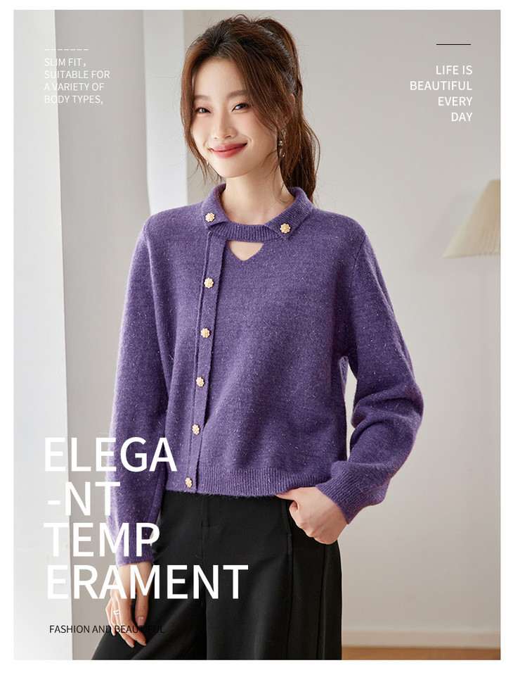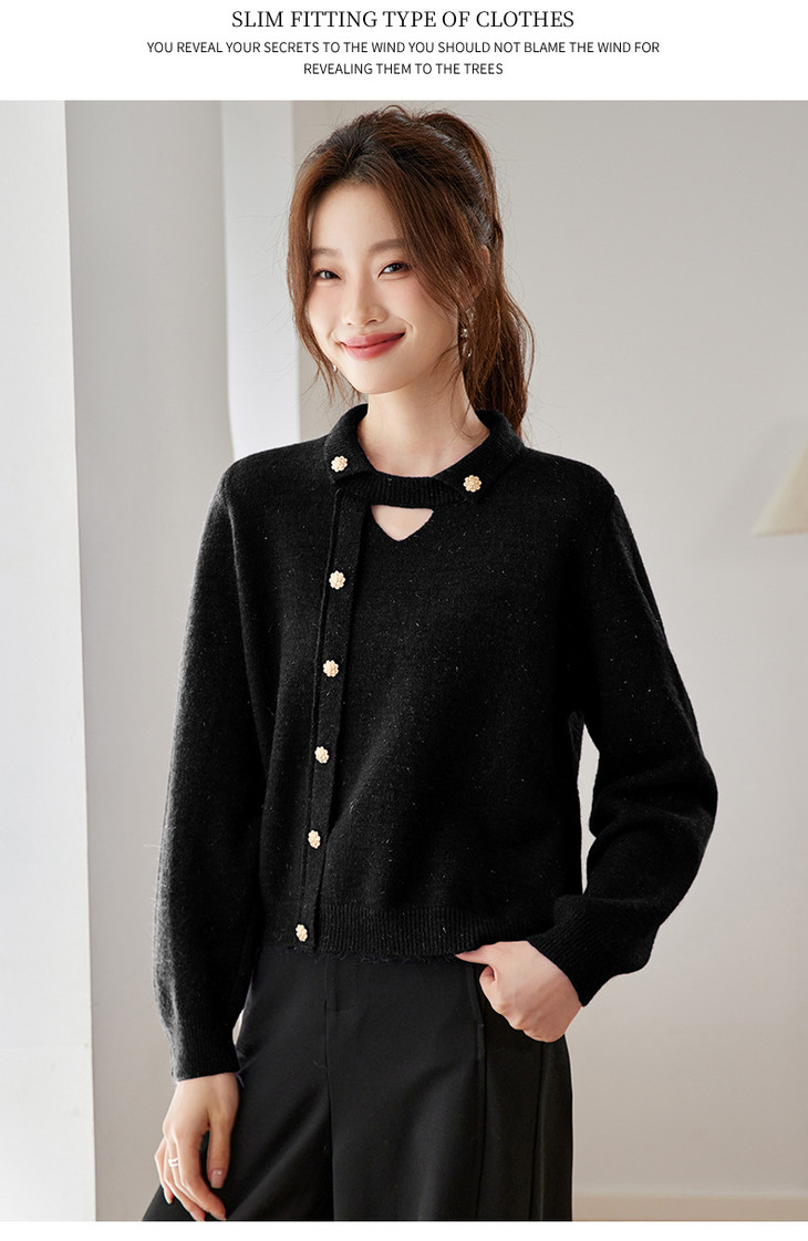 设计感V领毛衣宽松,高级感洋气减龄针织打底衫好看上衣HR-XFY-3273