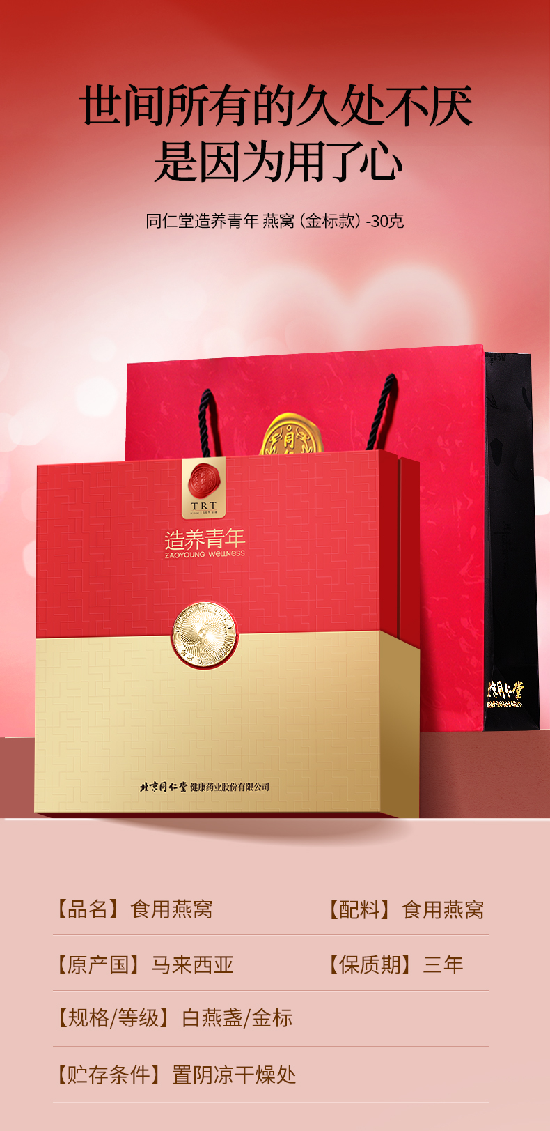 【正宗同仁堂品牌】北京同仁堂 造养青年 马来燕窝(金标款)-30克 优质金丝燕SY