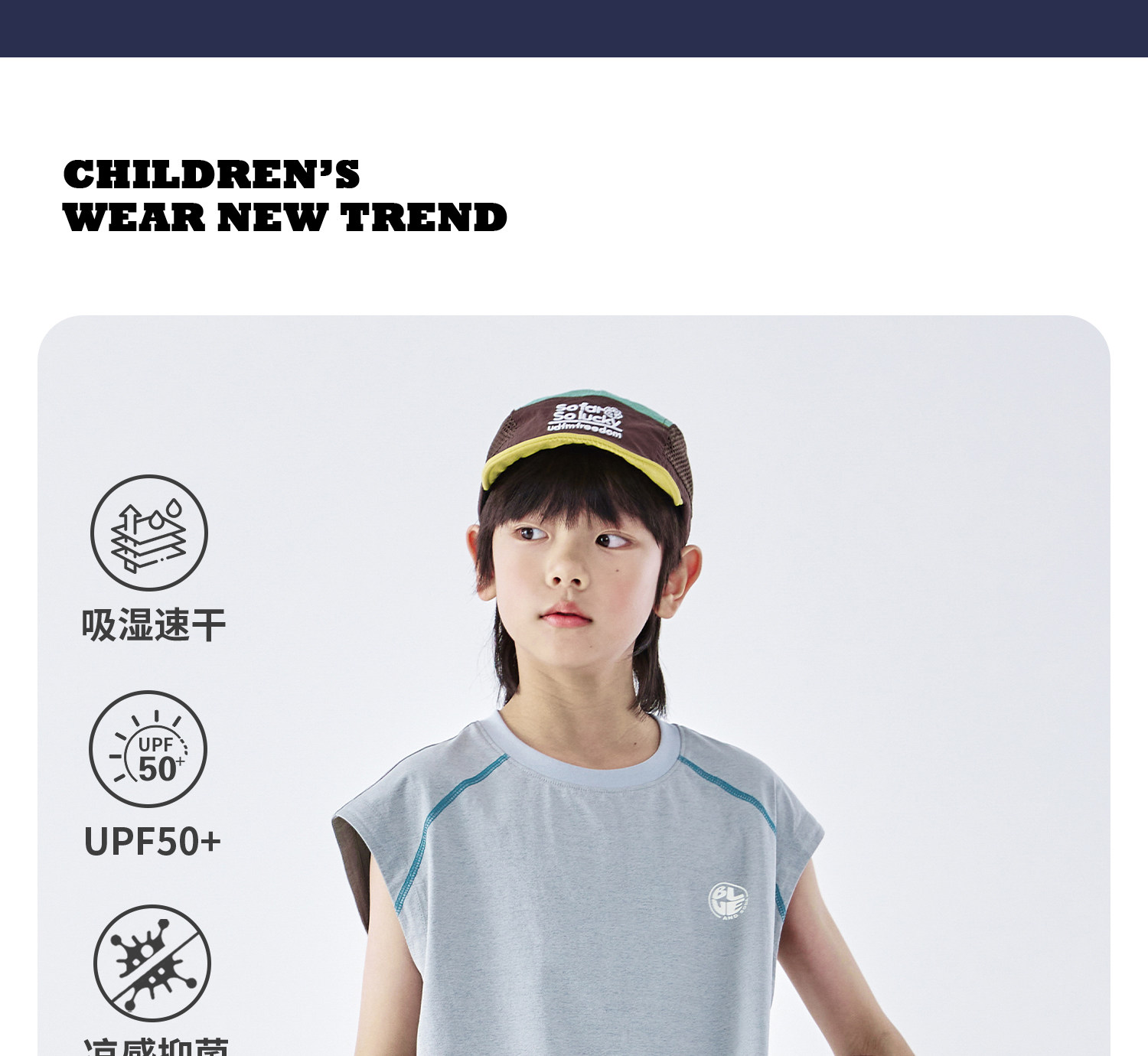 蓝汽水2026夏季新品男童吸湿速干运动UPF50+防晒抗菌干爽T恤背心