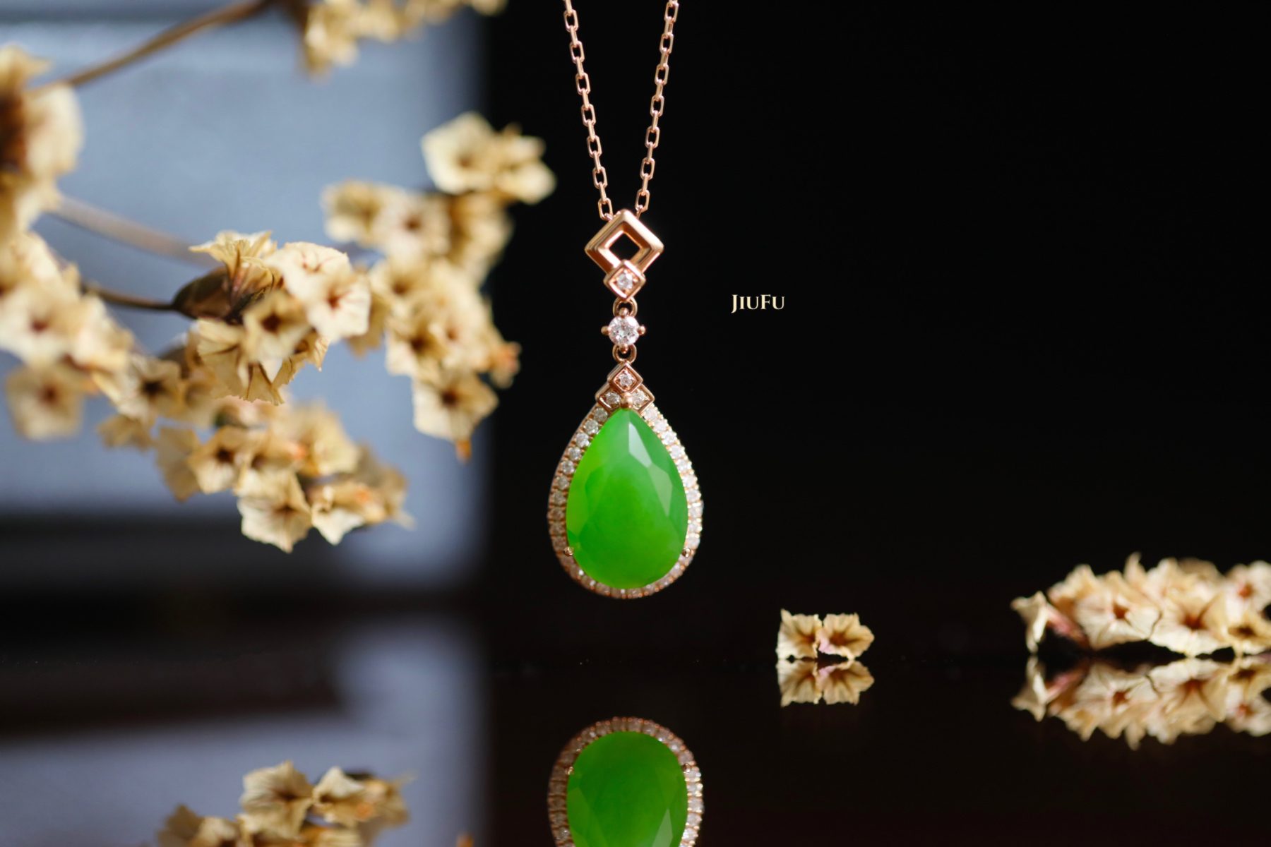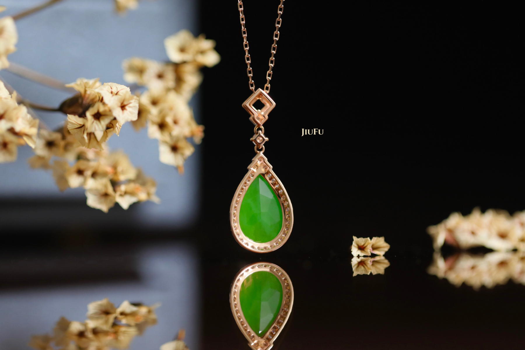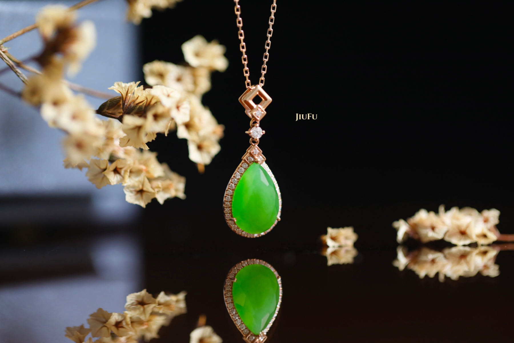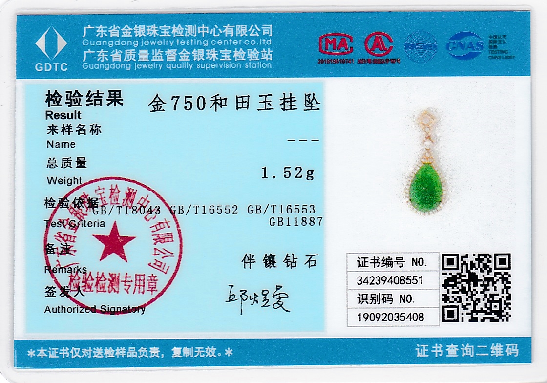 18K玫瑰金和田玉(碧玉)吊坠