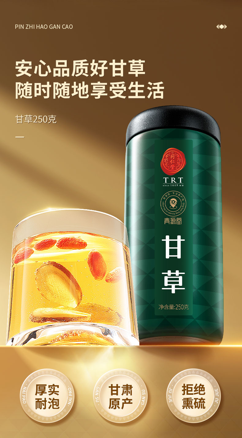 【正宗同仁堂品牌】北京同仁堂 青源堂 甘草片250克 甘肃原产地 回味甘甜 色泽自然SY