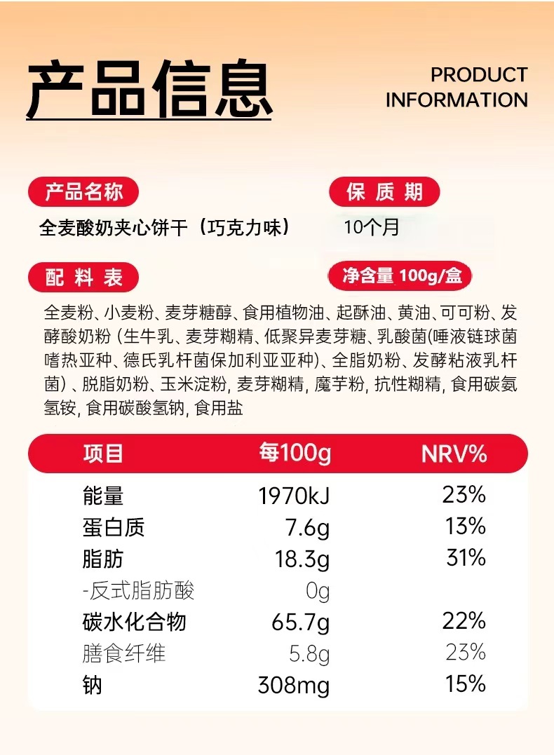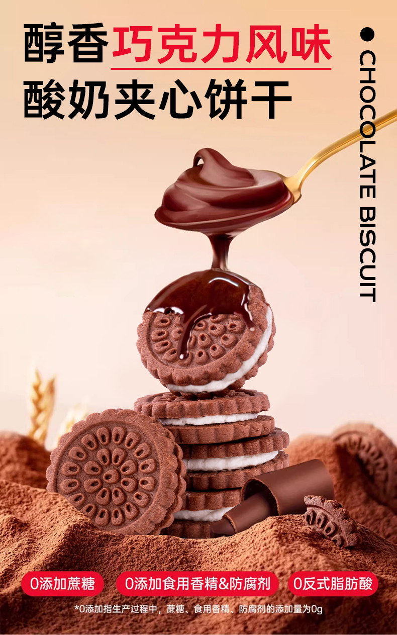 (新品代餐)七年五季全麦巧克力酸奶夹心饼干 代餐0蔗糖