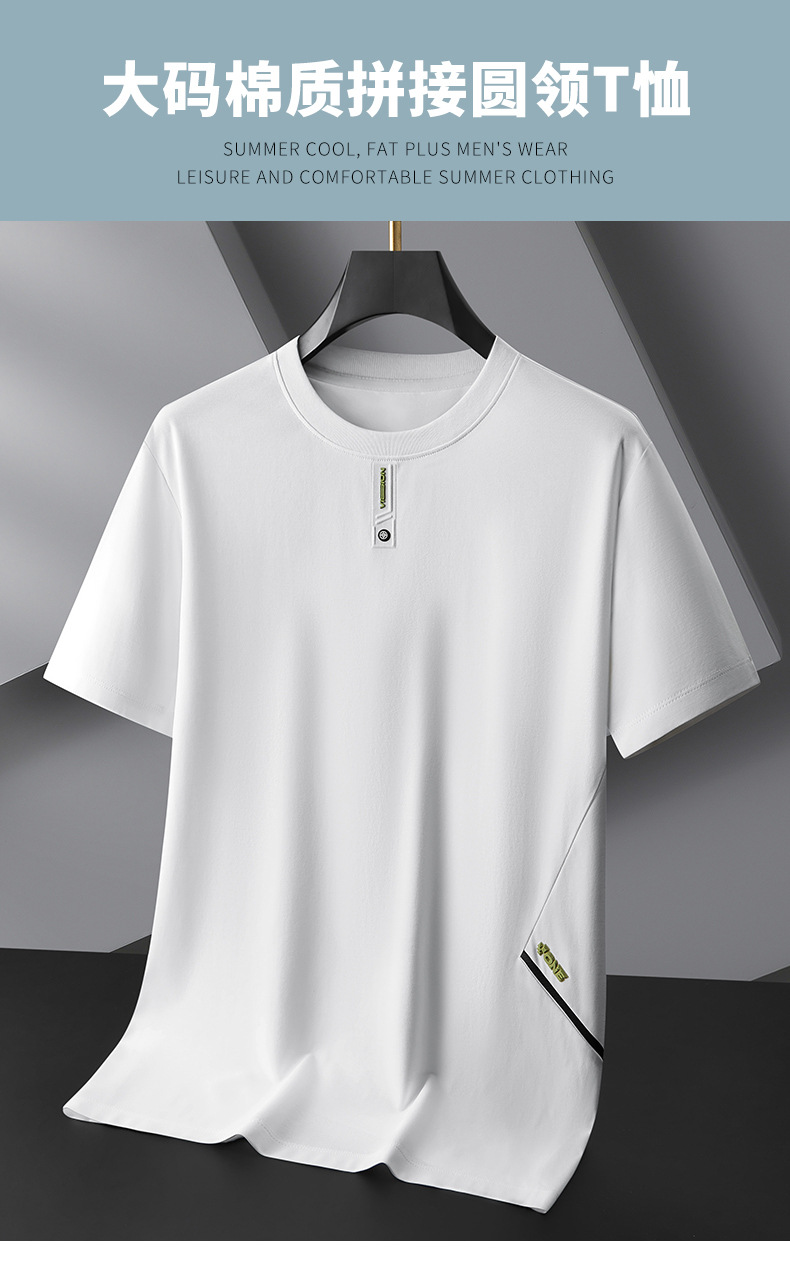 【棉质】【DPF】大依优型大码短袖T恤圆领加肥加大夏季新款上衣肥佬休闲拼接半袖男士胖子