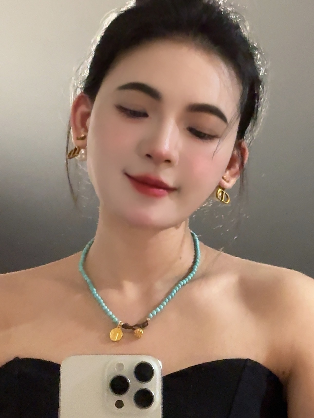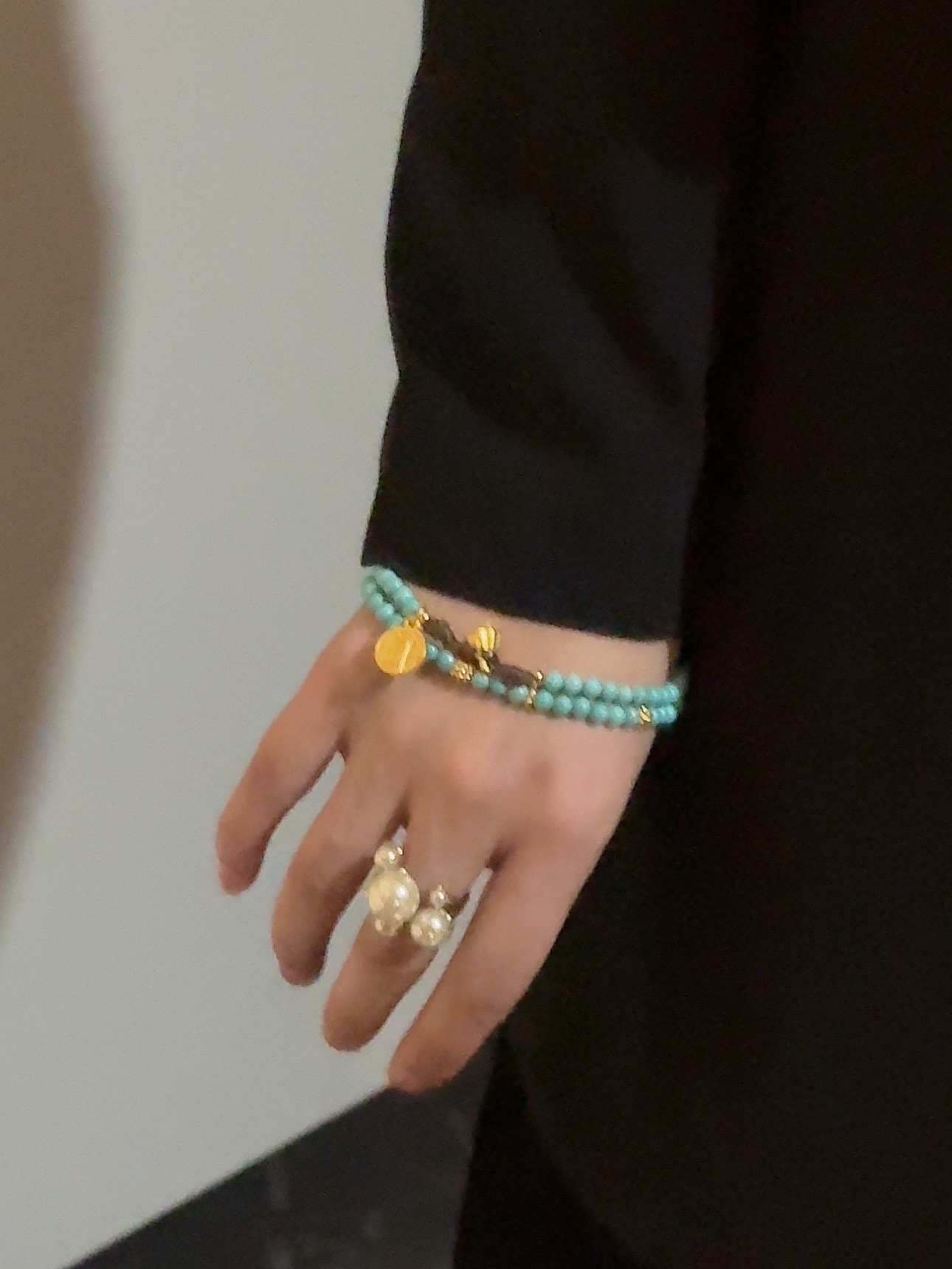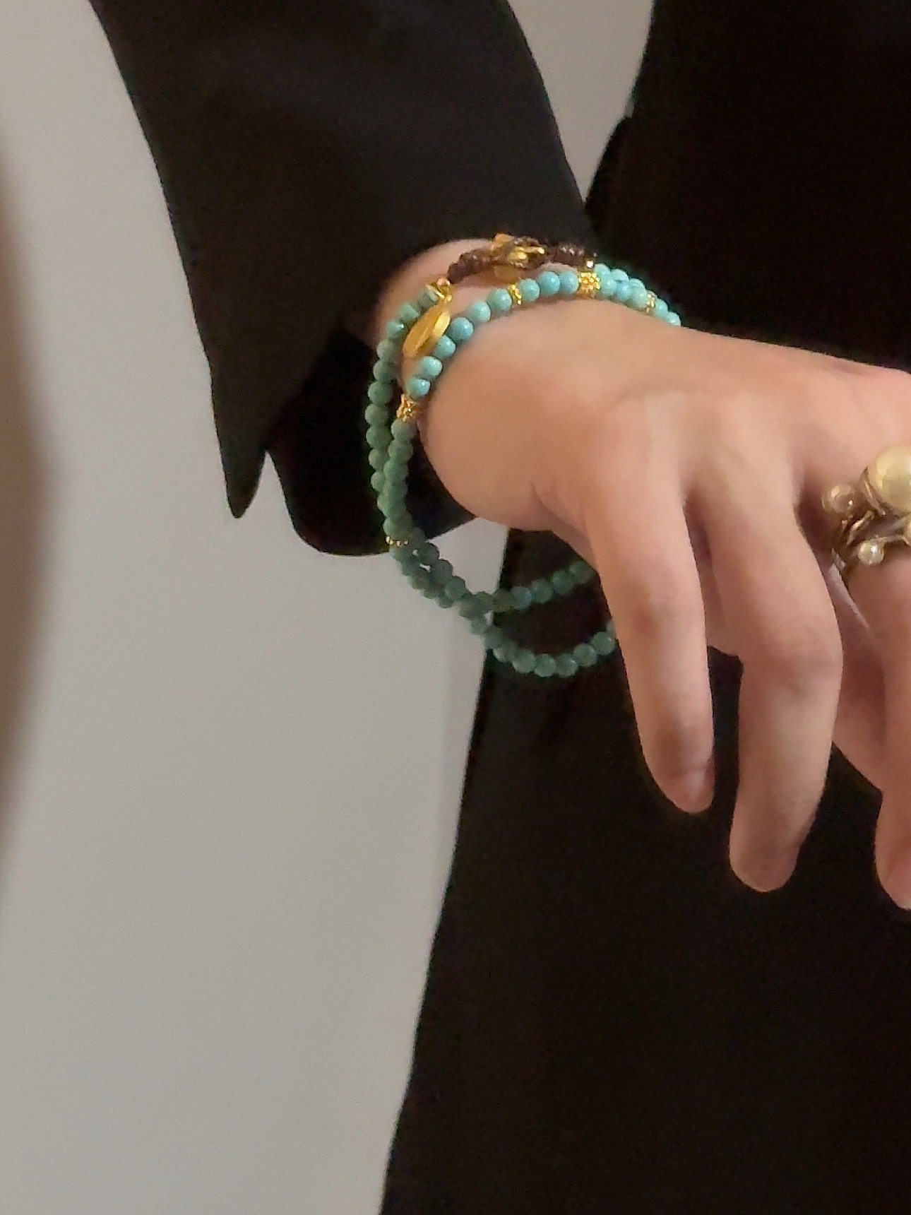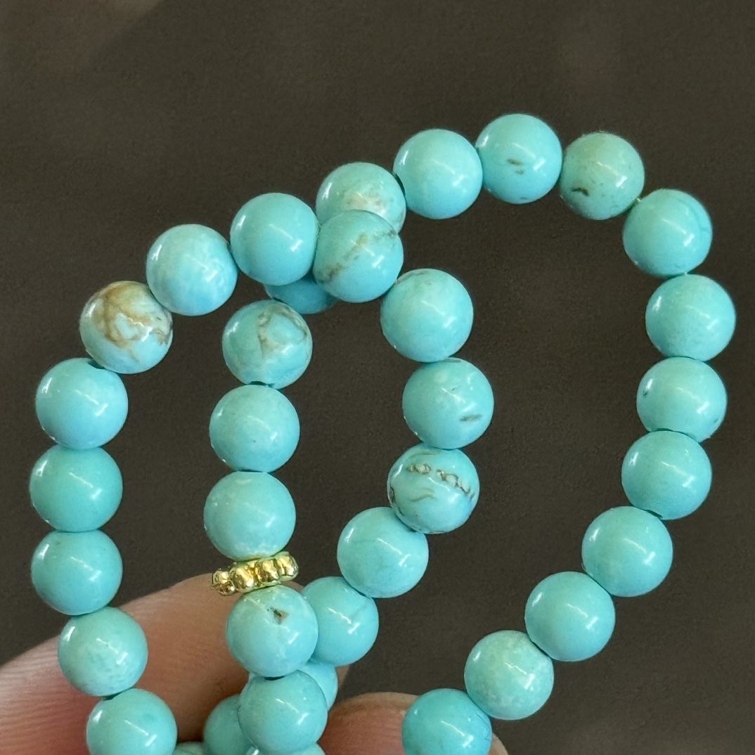 尤其适合夏天 最近不光是我身边朋友都在入手绿松石单独戴或者当作叠戴搭配珍珠黄金项链都是贼好看的存在!!你们听我的自留就行了随便搭配什么连衣裙 tee 衬衫 都不会让失望!而且可以当作手链戴一条链子两用,采用tian然绿松石3mm小米珠,也称之为优化绿松石并不是市面上那些人造绿松 我们chun天ran的!