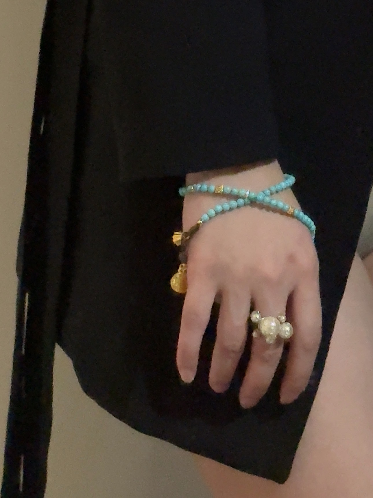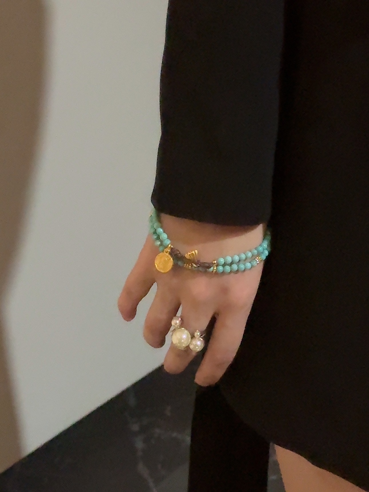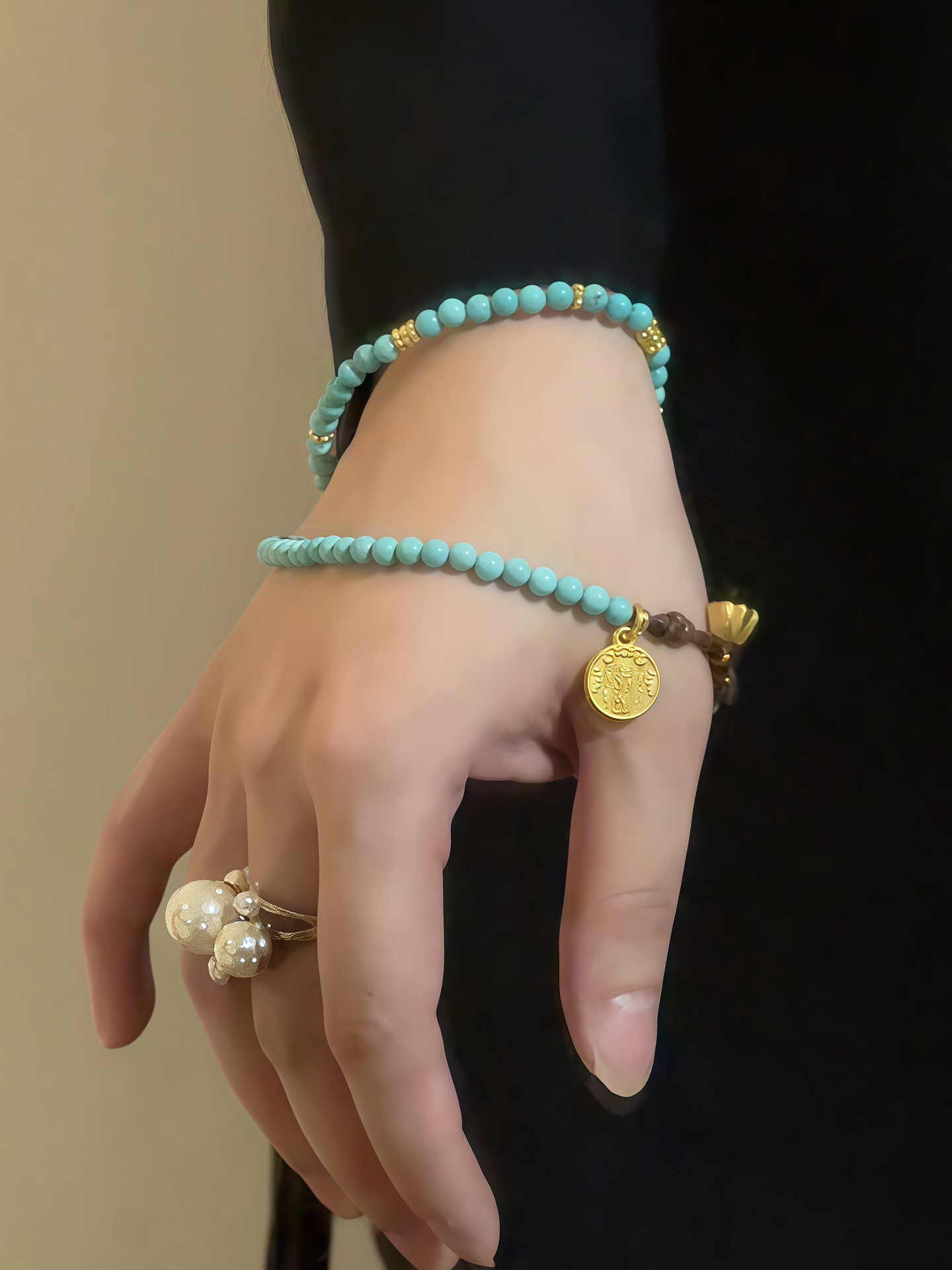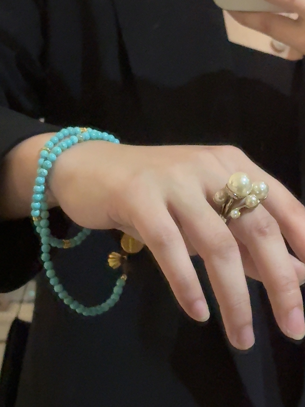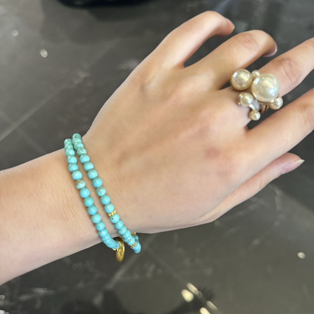 尤其适合夏天 最近不光是我身边朋友都在入手绿松石单独戴或者当作叠戴搭配珍珠黄金项链都是贼好看的存在!!你们听我的自留就行了随便搭配什么连衣裙 tee 衬衫 都不会让失望!而且可以当作手链戴一条链子两用,采用tian然绿松石3mm小米珠,也称之为优化绿松石并不是市面上那些人造绿松 我们chun天ran的!