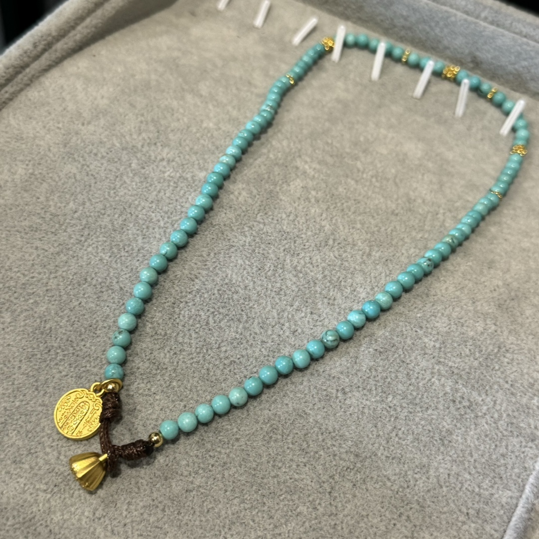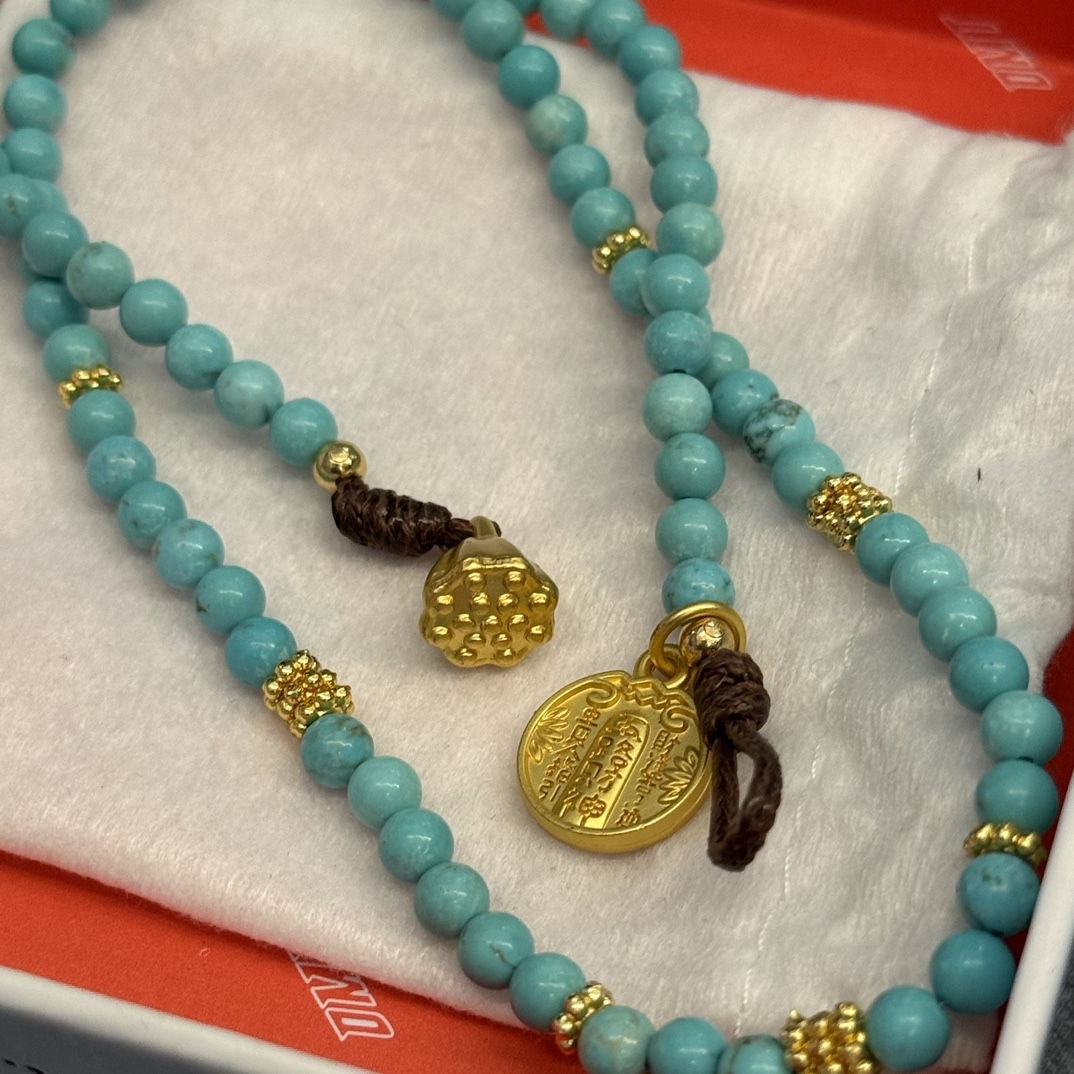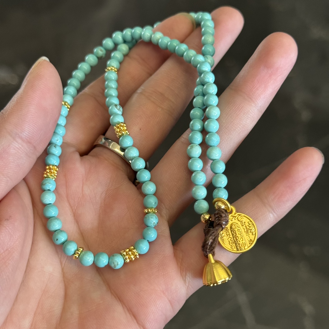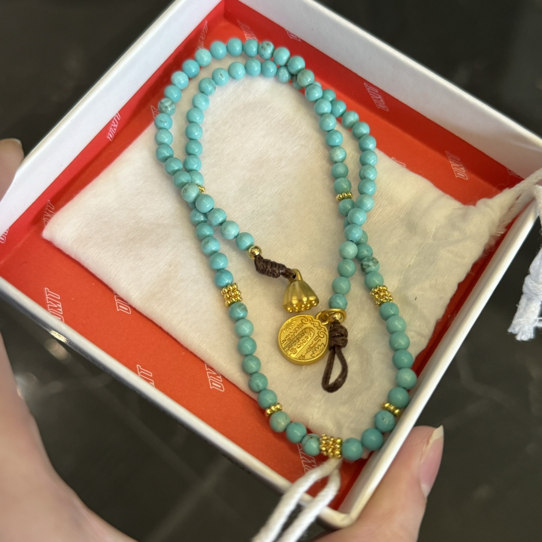 产地:中国,埃及,伊朗,美国等地,中国是绿松石主要产地之一,其中湖北郧西县,竹山县一带盛产优质绿松石。看似普通的项链,因为宝石的孔位极小,机器无法代替,所有只能靠纯手工!!无论是项链还是手链,每一条都要通过多年经验的老师傅,用超细的定制绳,纯手工一粒一粒的穿孔,单条至少多花费60分钟以上!!纯手工串珠不仅让链条更牢固耐用,更是每一条都是世界上独一无二的存在!!配件吊坠都是925银➕黄铜镀真金的 将近20个小五金自己算价格就行了~绳索编织都是手工的