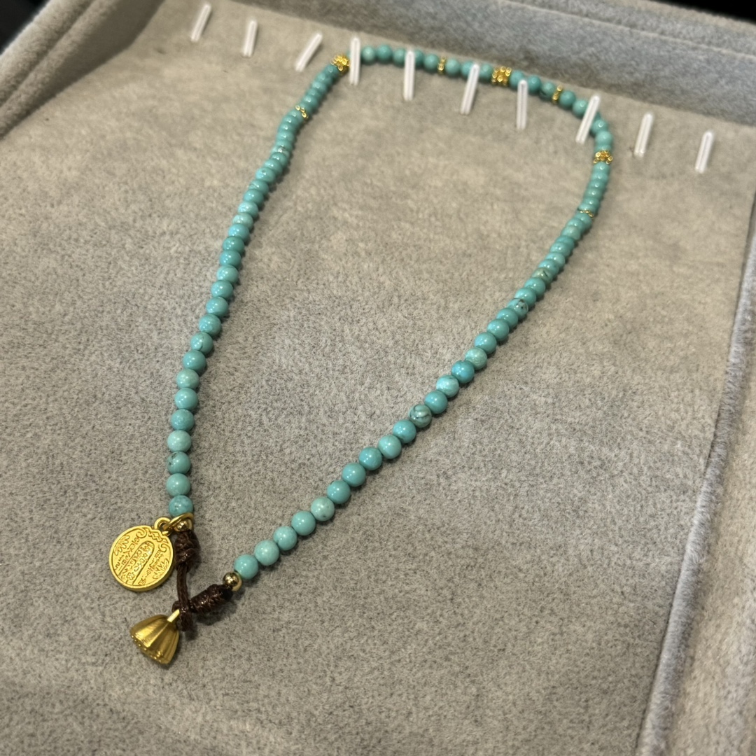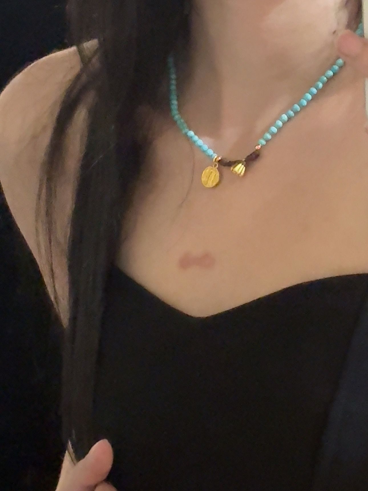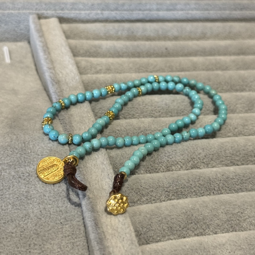 产地:中国,埃及,伊朗,美国等地,中国是绿松石主要产地之一,其中湖北郧西县,竹山县一带盛产优质绿松石。看似普通的项链,因为宝石的孔位极小,机器无法代替,所有只能靠纯手工!!无论是项链还是手链,每一条都要通过多年经验的老师傅,用超细的定制绳,纯手工一粒一粒的穿孔,单条至少多花费60分钟以上!!纯手工串珠不仅让链条更牢固耐用,更是每一条都是世界上独一无二的存在!!配件吊坠都是925银➕黄铜镀真金的 将近20个小五金自己算价格就行了~绳索编织都是手工的