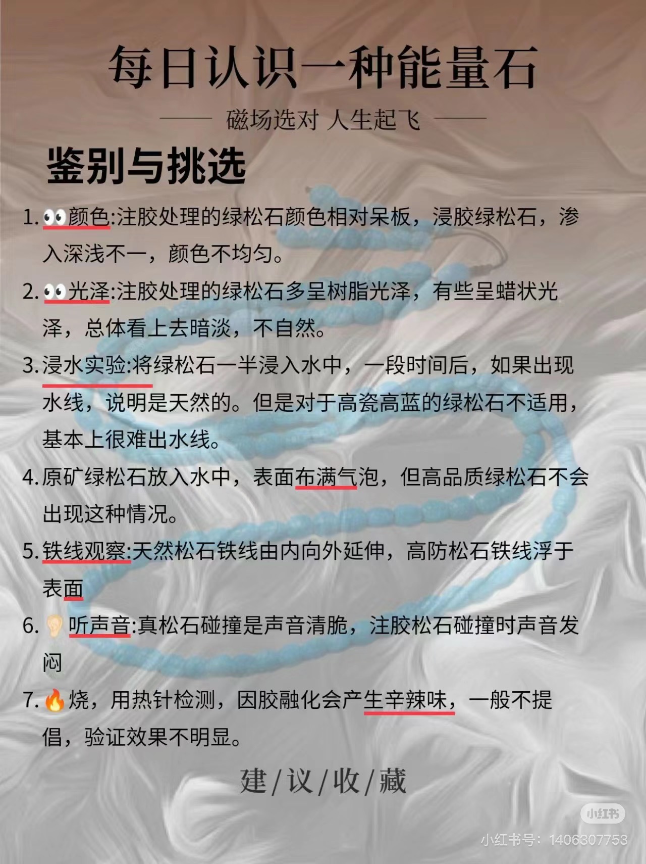 绿松石,它的清新色泽不仅令人赏心悦目,还能带给人平静与自信。每一颗石头都是从矿石里提炼打磨出来了的,不是市场上的各种胶啊树脂啊,我们是真正的宝石,全部由老师傅纯手工切割、抛光、执膜、再到串珠,再到一件件成品!每一个工艺都不简单。绿松石,因其“形似松球,色近松绿”而得名,是土耳其的国石 因内含物不同,颜色不同,氧化物中含铜呈蓝色,含铁呈绿色质地分类: 瓷度,硬松,面松泡松