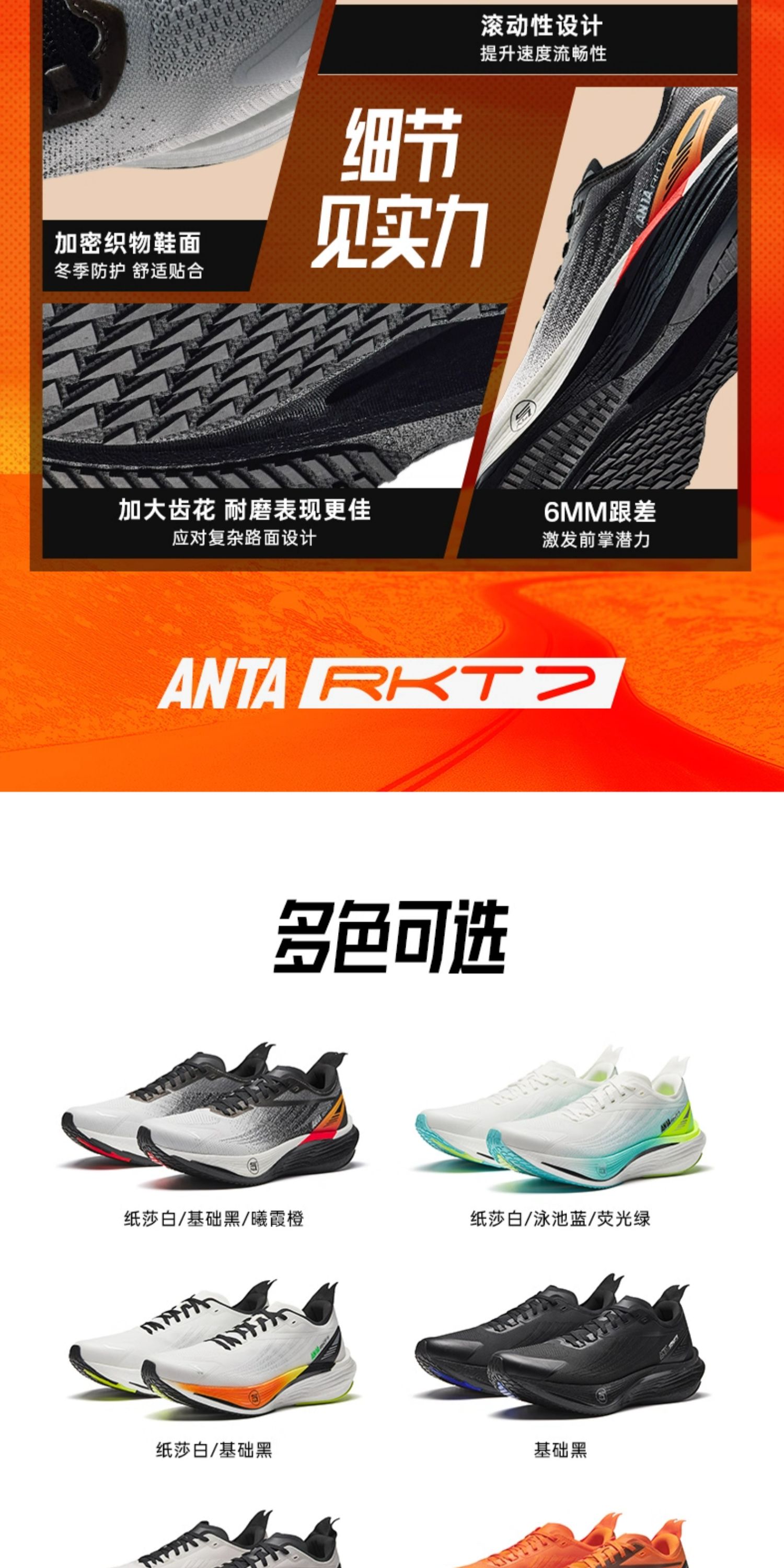 安踏火箭7代PRO | 氮科技缓震跑鞋耐磨竞速训练运动鞋男112545580