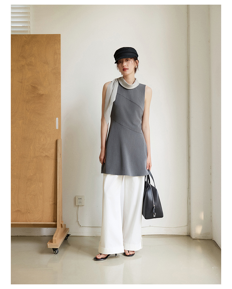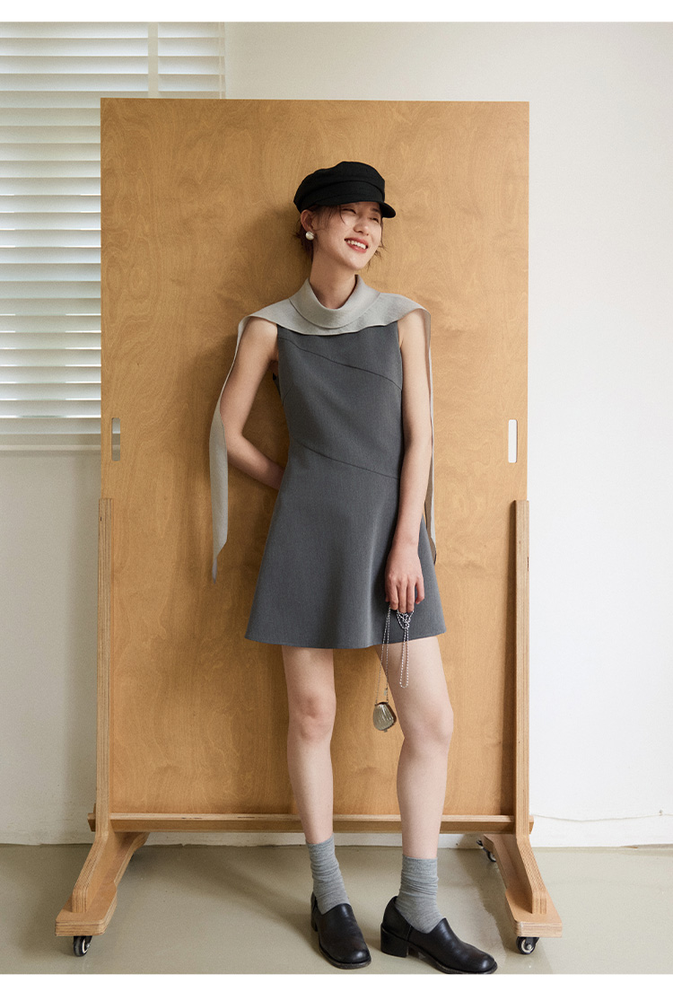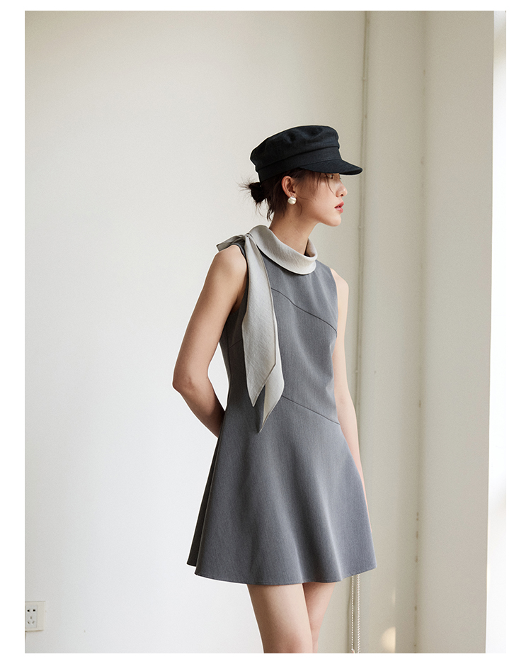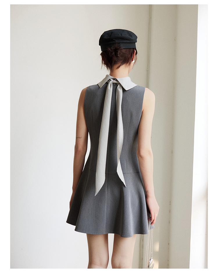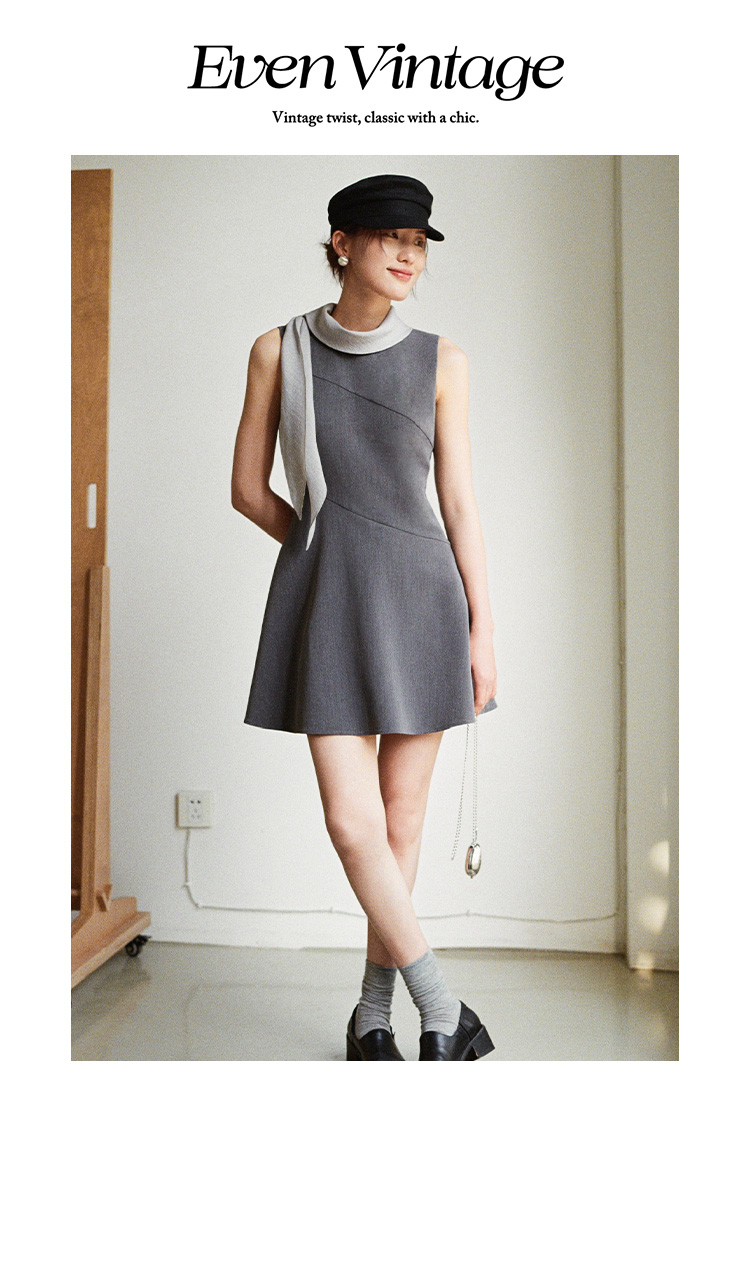 Even Vintage|时髦分子 复古文艺春夏新品无袖飘带纯色连衣裙