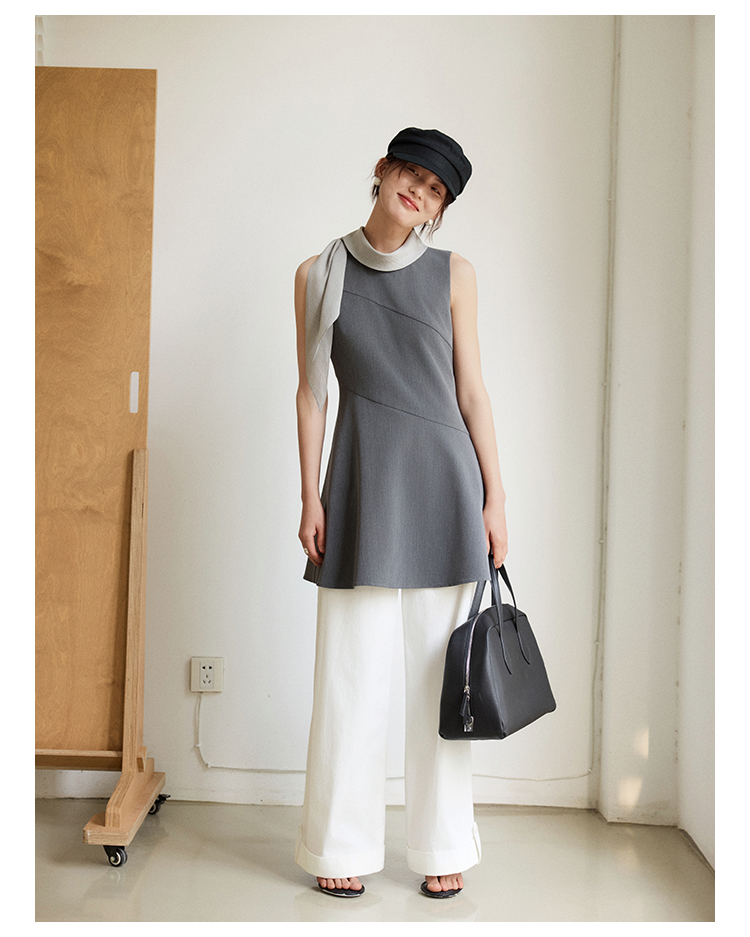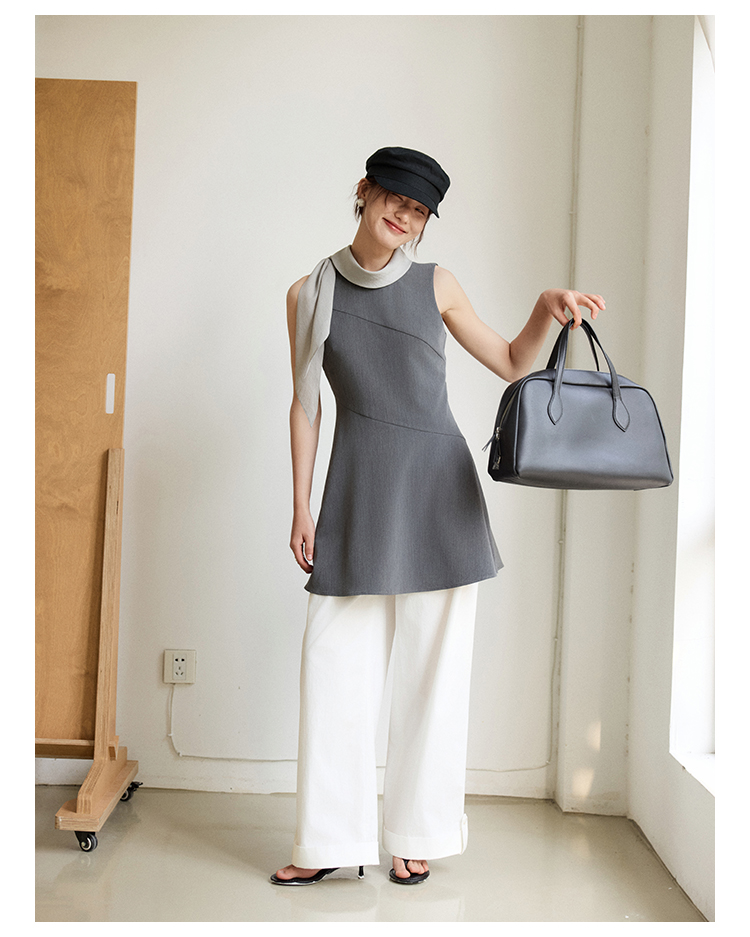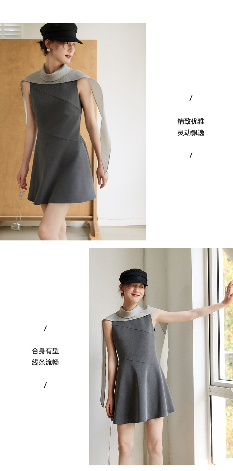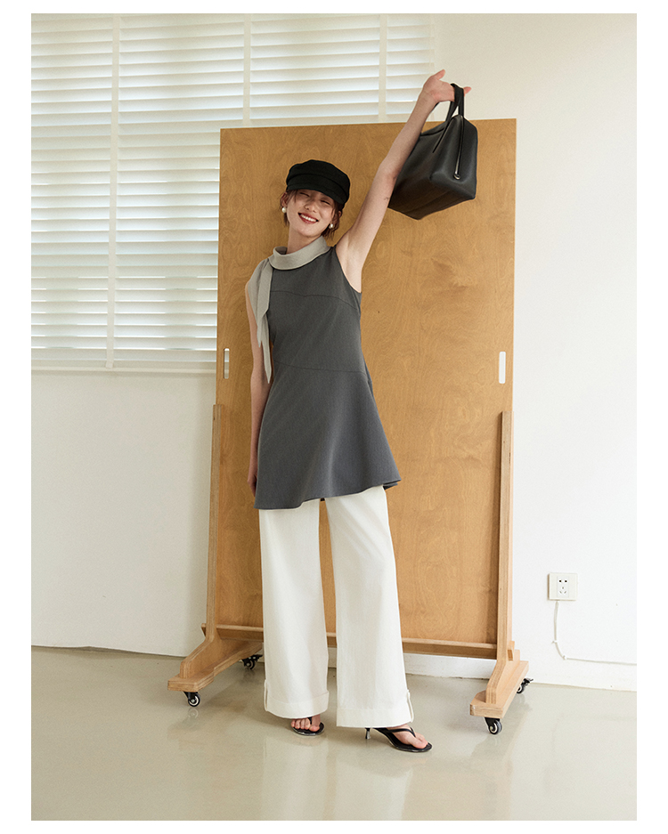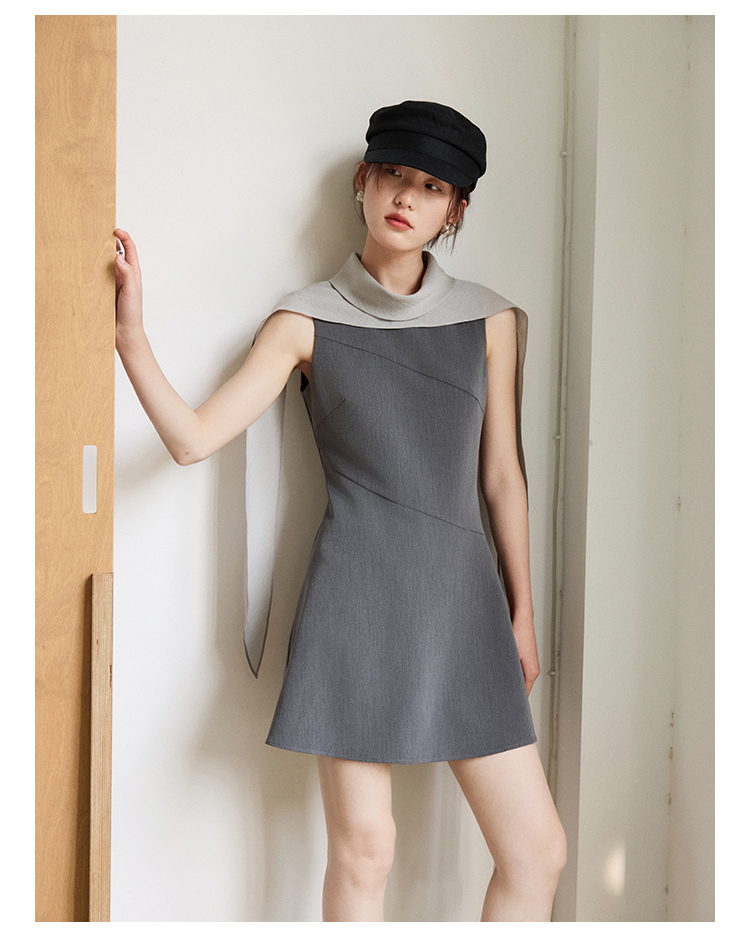 Even Vintage|时髦分子 复古文艺春夏新品无袖飘带纯色连衣裙